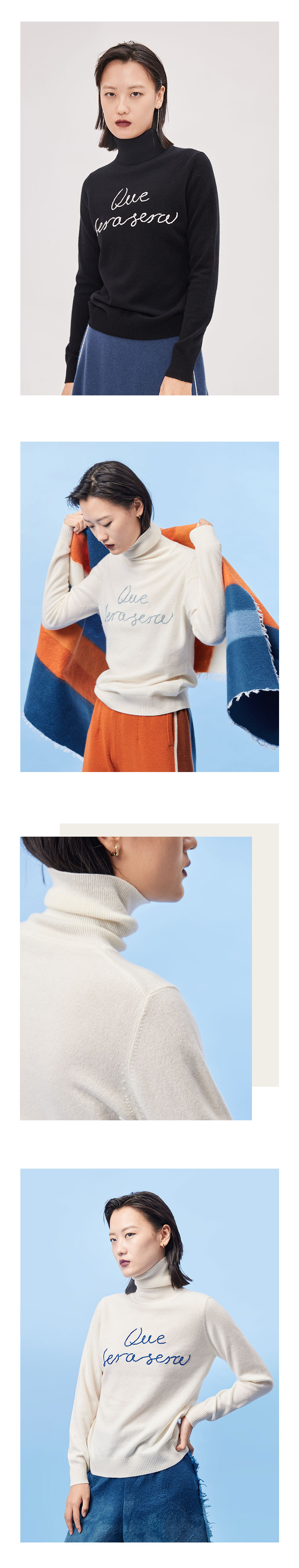 双翻领手工绣花羊绒女套衫 SJF93W419N