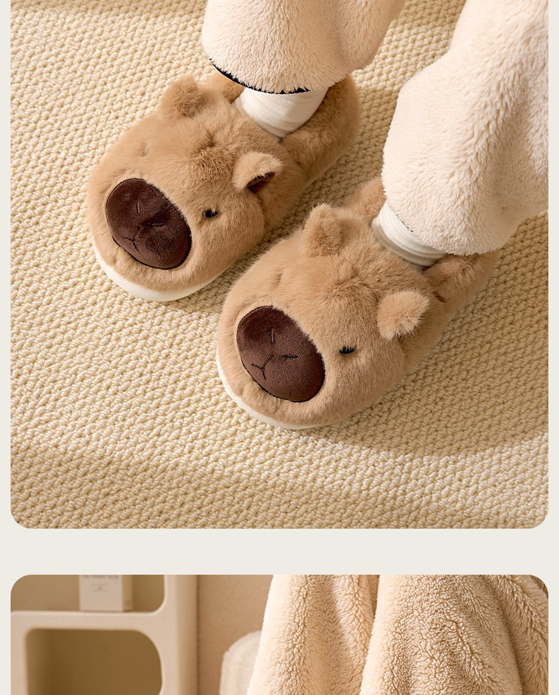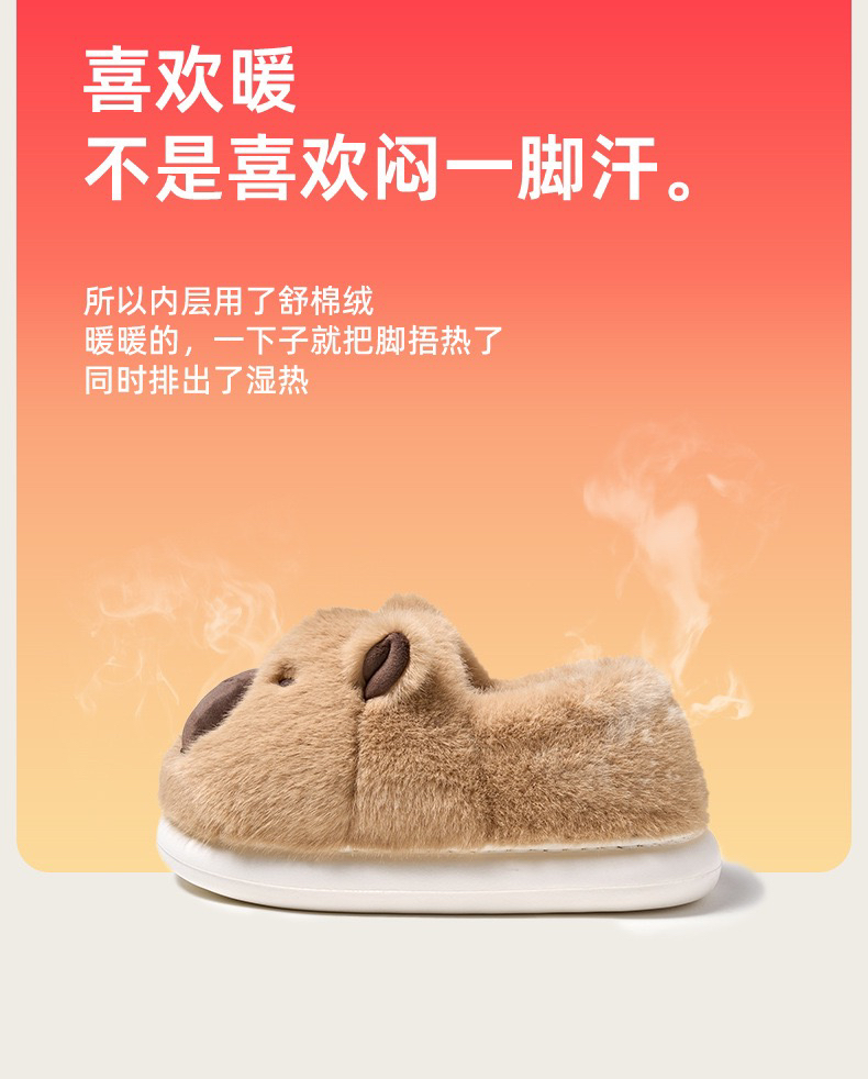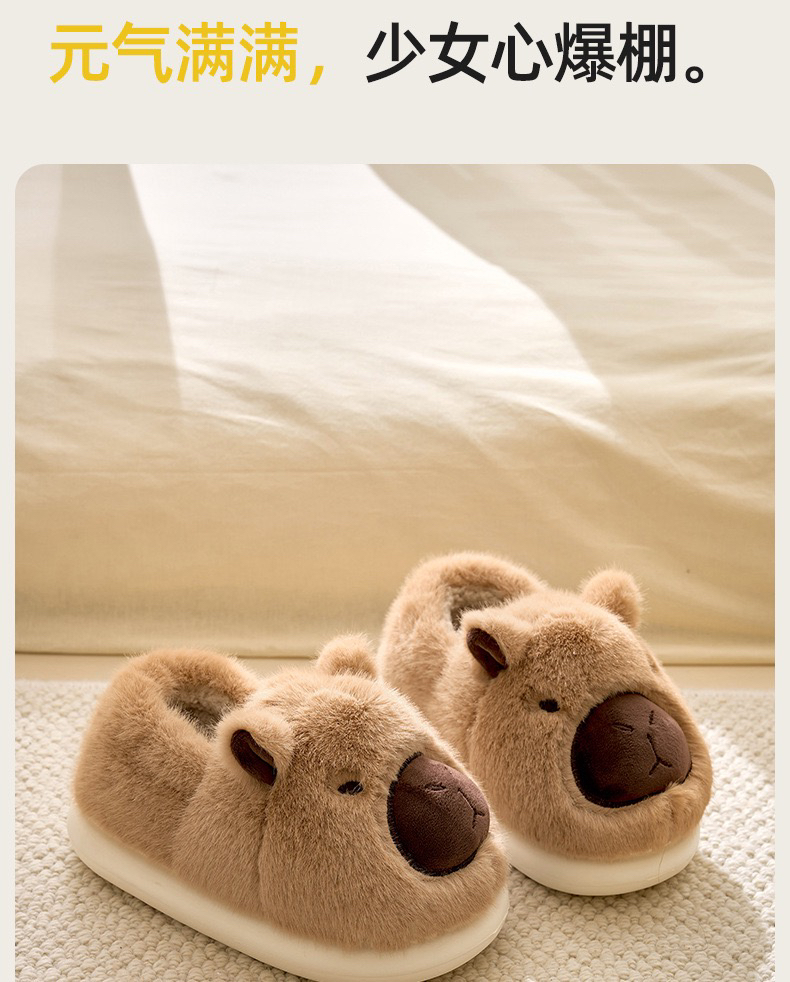 【团购】毛毛鞋 卡皮巴拉包根棉鞋 拖鞋 冬天家用居家防滑保暖 家居鞋 丑萌半拖棉鞋