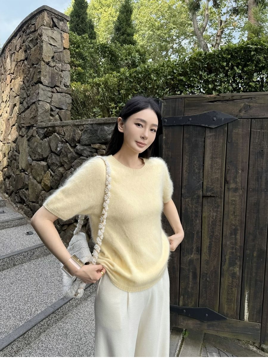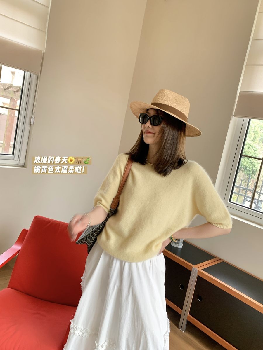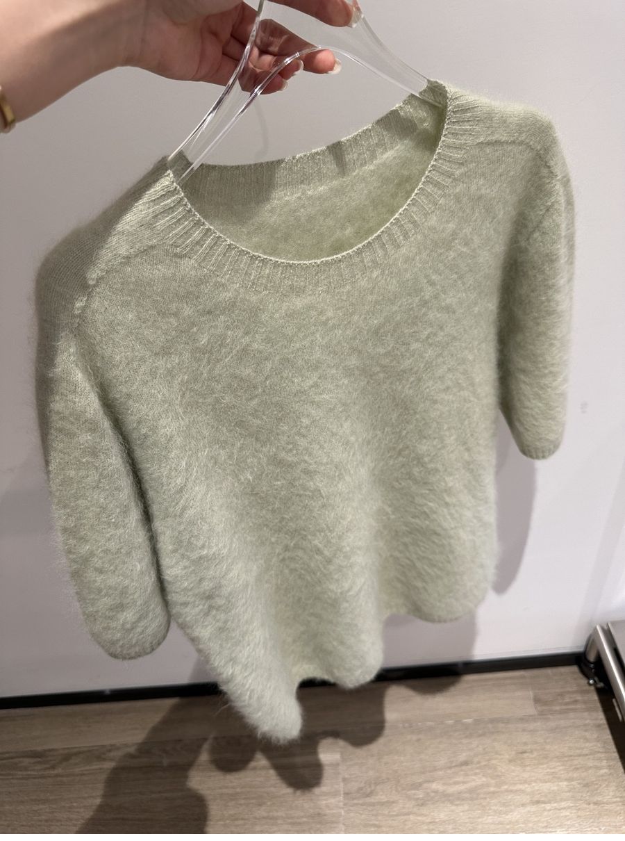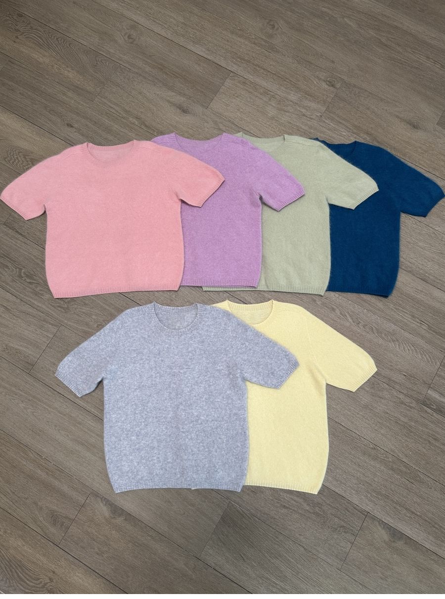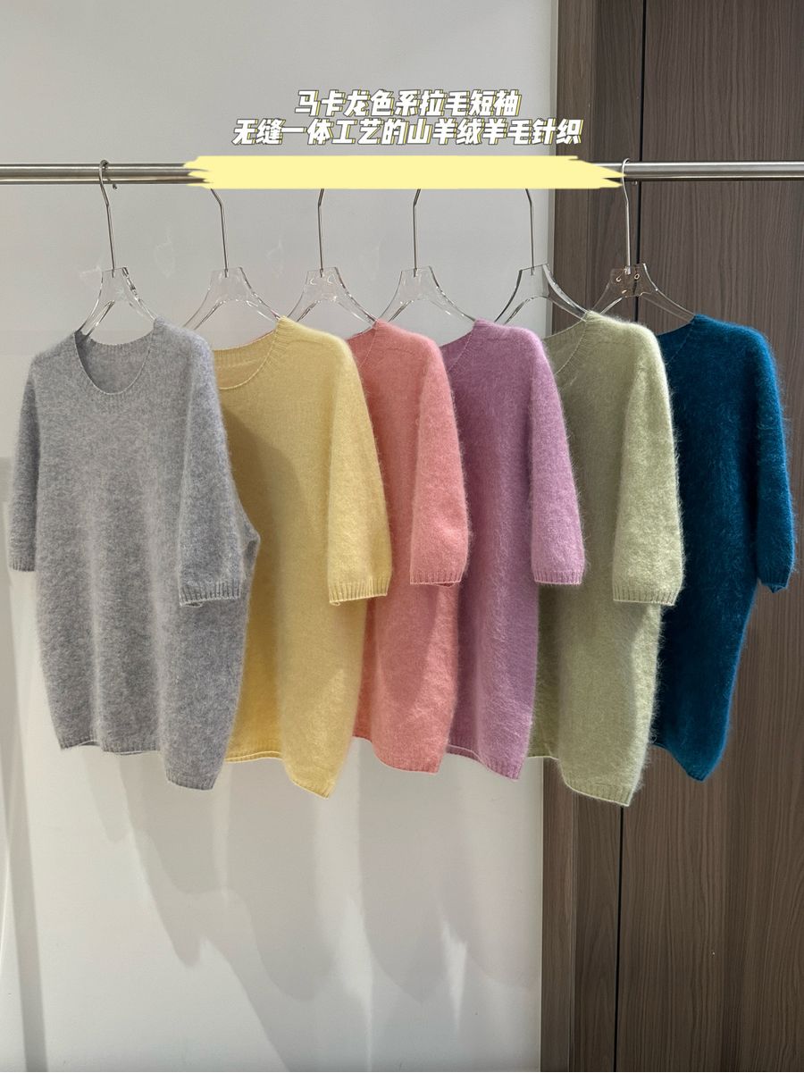 早春款马卡龙色系拉毛短袖来喽!无缝一体工艺的山羊绒羊毛针织,云朵般温柔暴击~