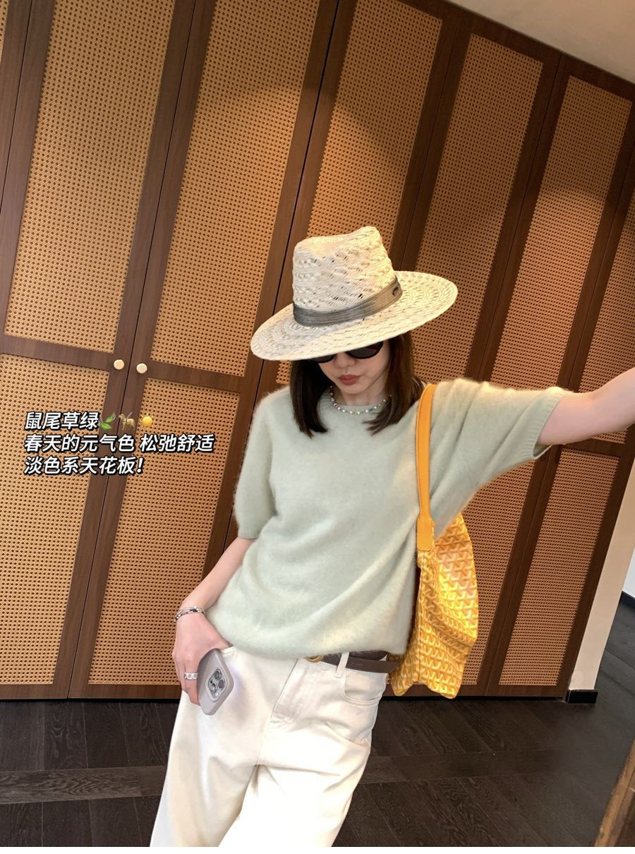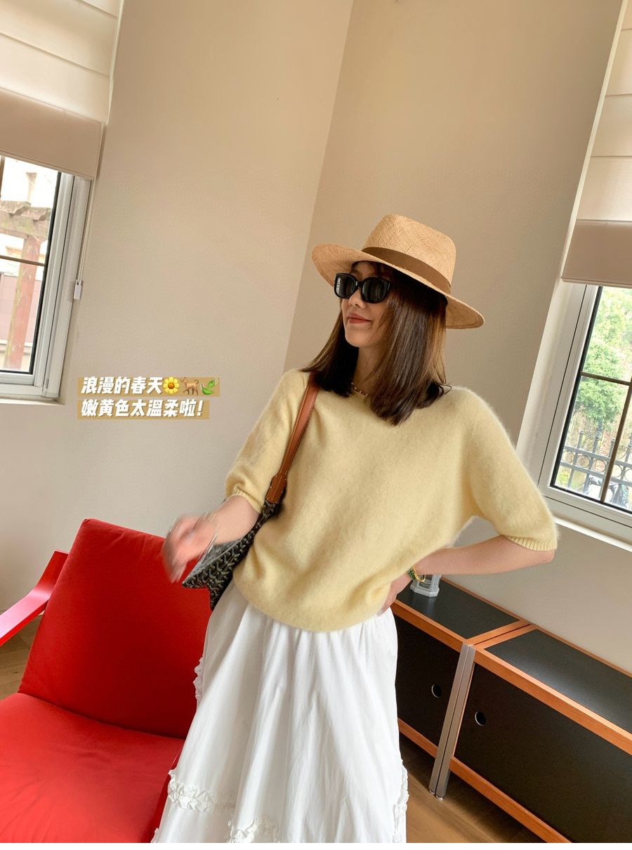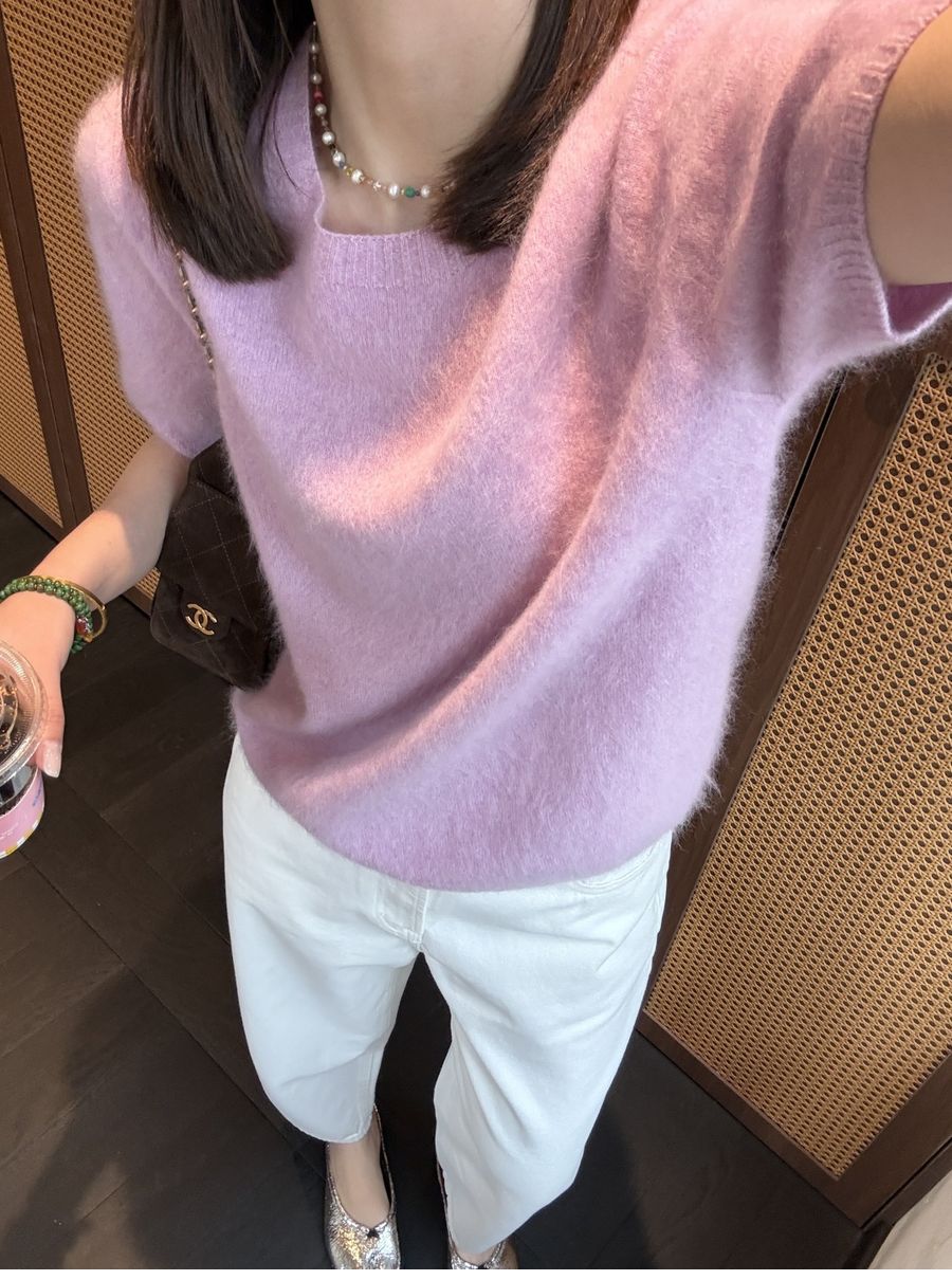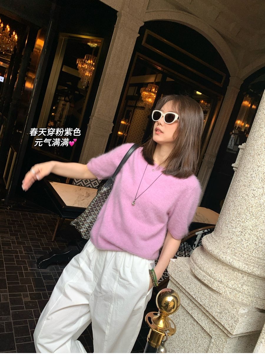 早春款马卡龙色系拉毛短袖来喽!无缝一体工艺的山羊绒羊毛针织,云朵般温柔暴击~