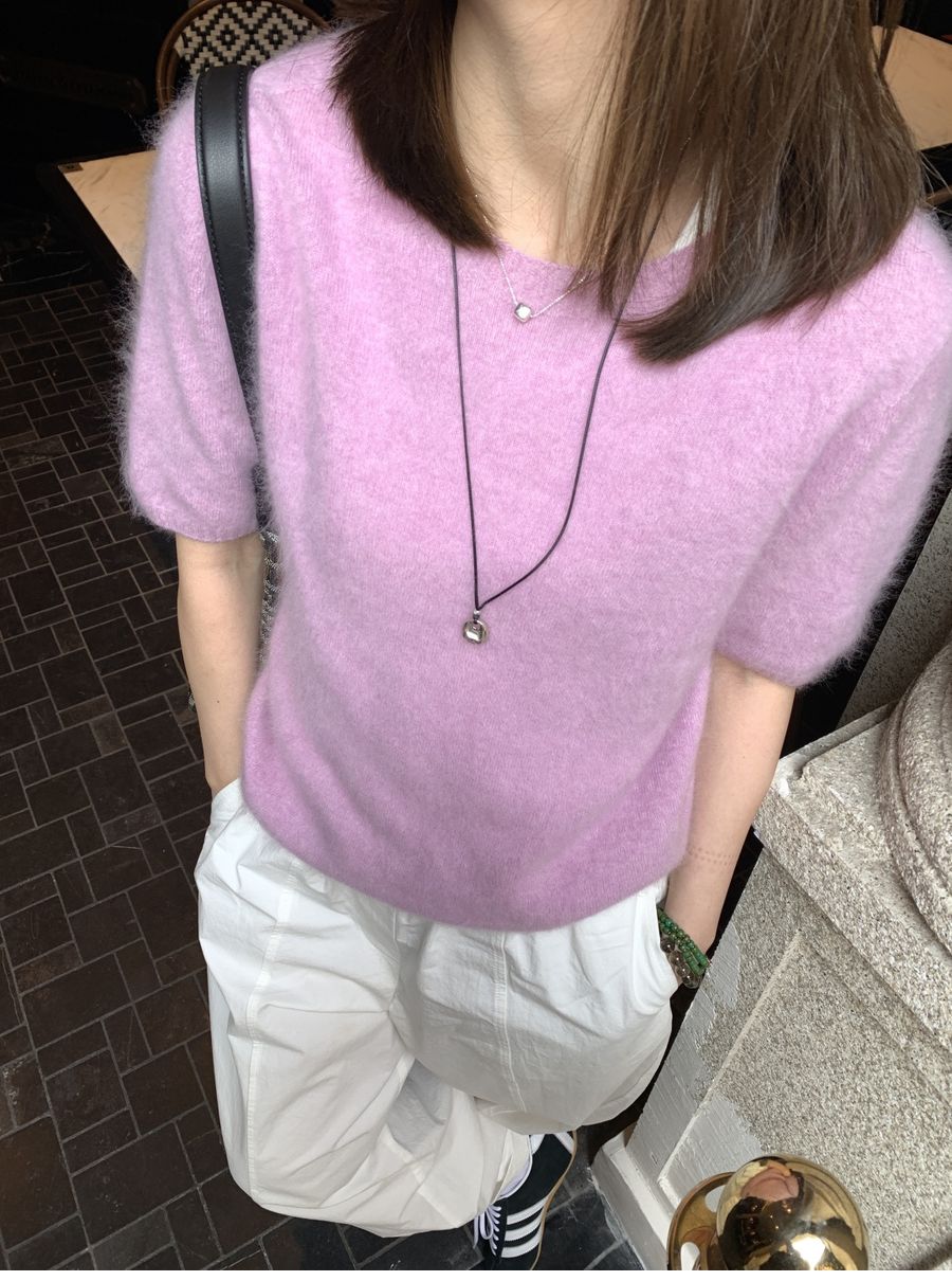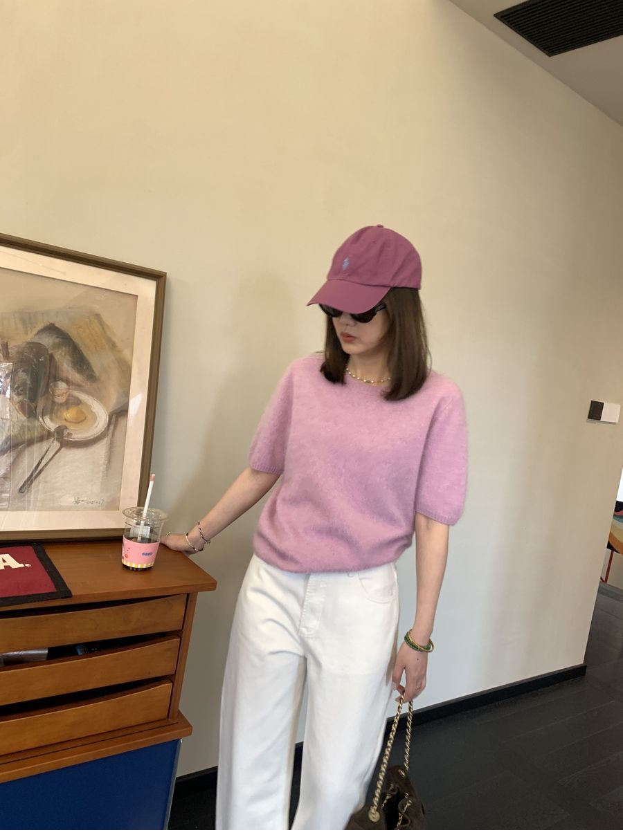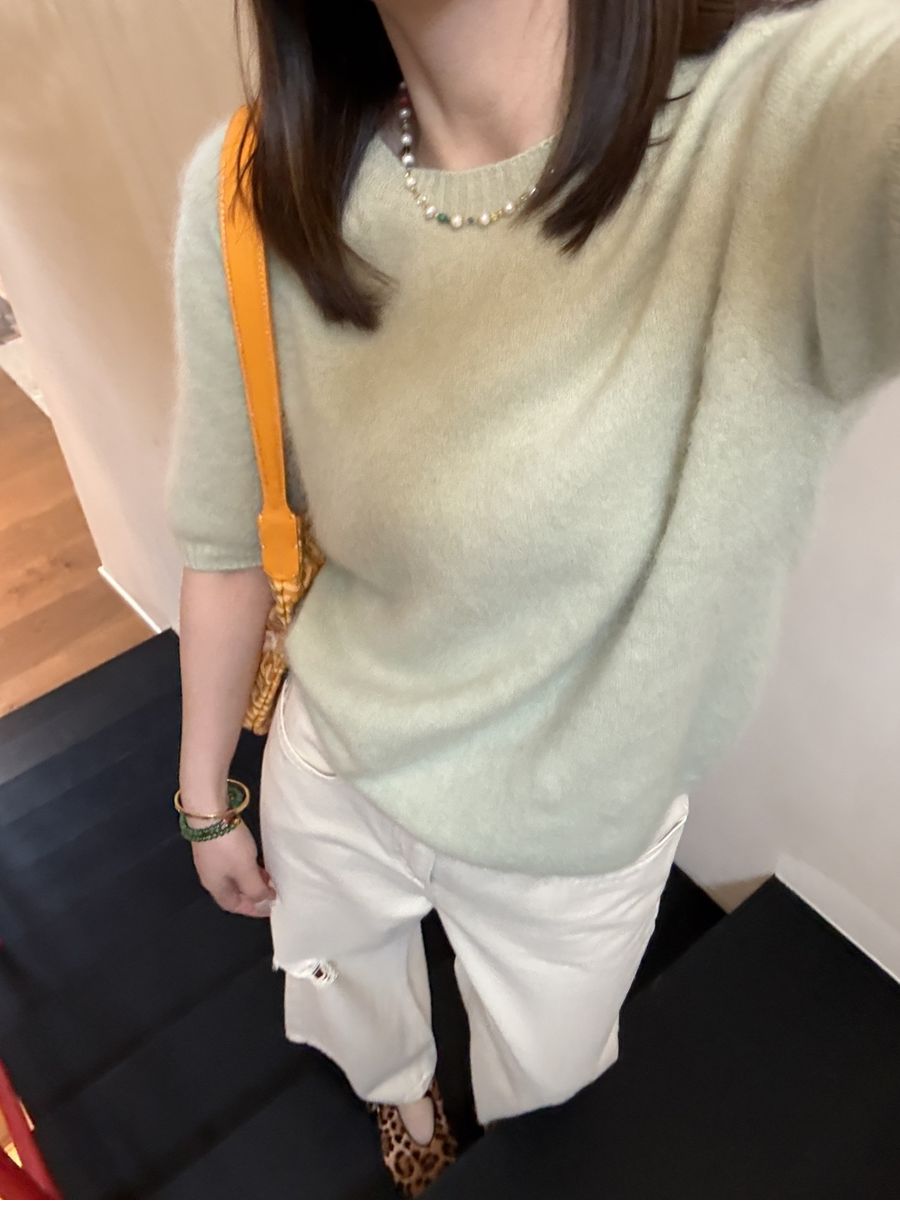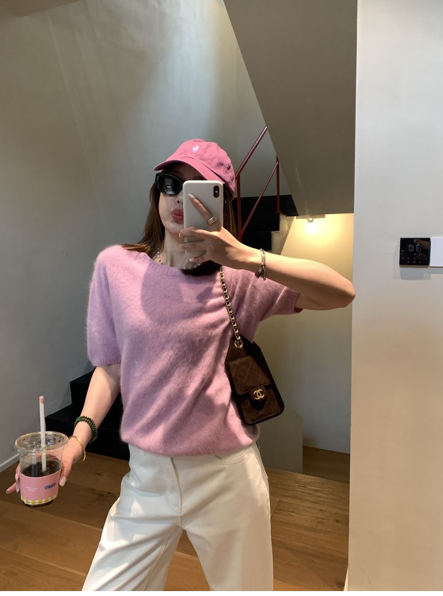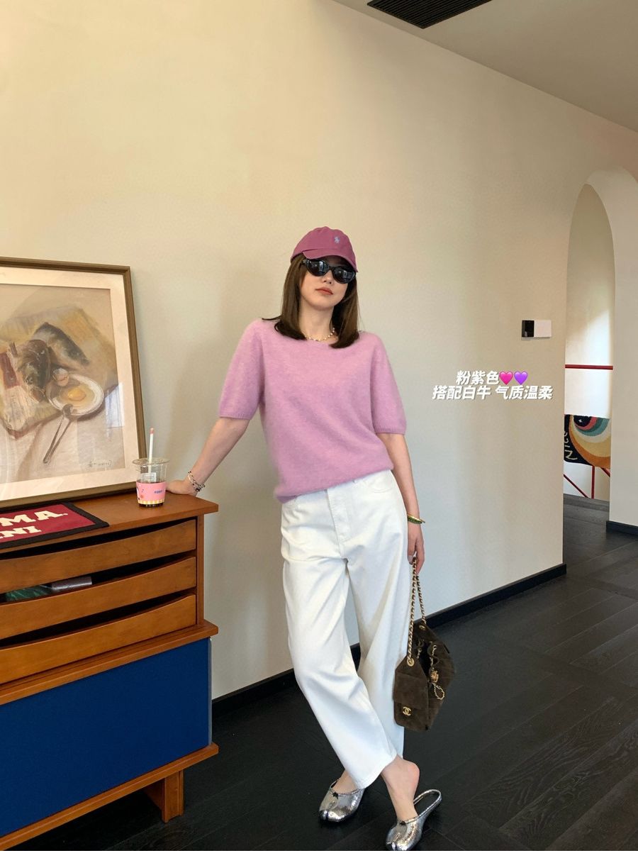 早春款马卡龙色系拉毛短袖来喽!无缝一体工艺的山羊绒羊毛针织,云朵般温柔暴击~