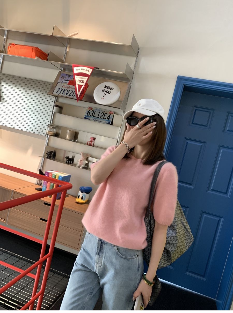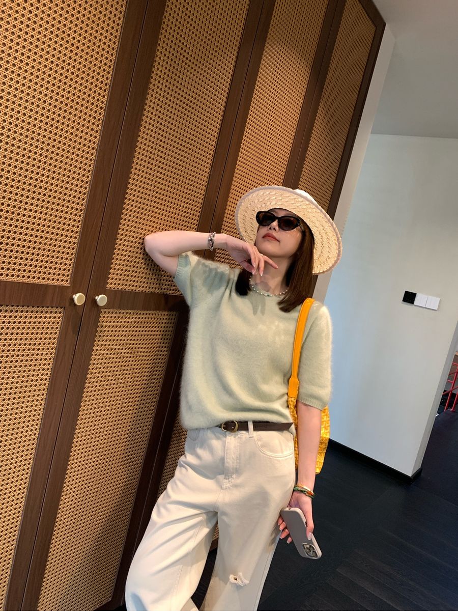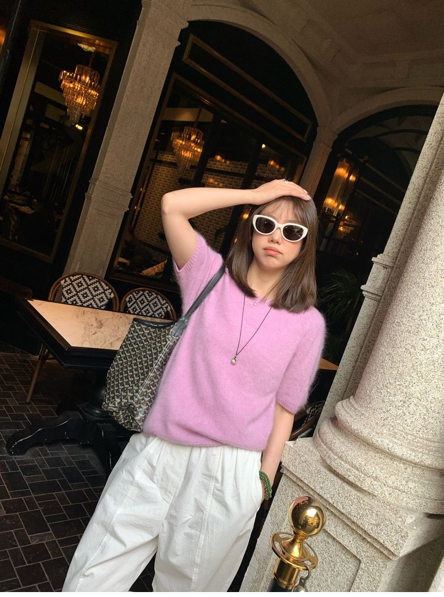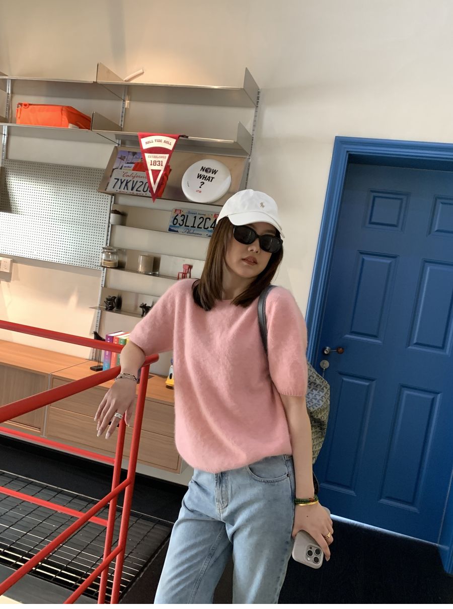 早春款马卡龙色系拉毛短袖来喽!无缝一体工艺的山羊绒羊毛针织,云朵般温柔暴击~