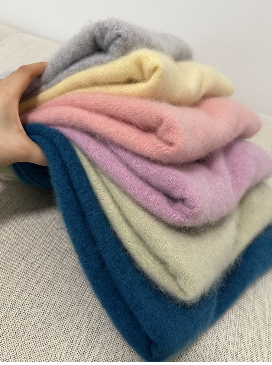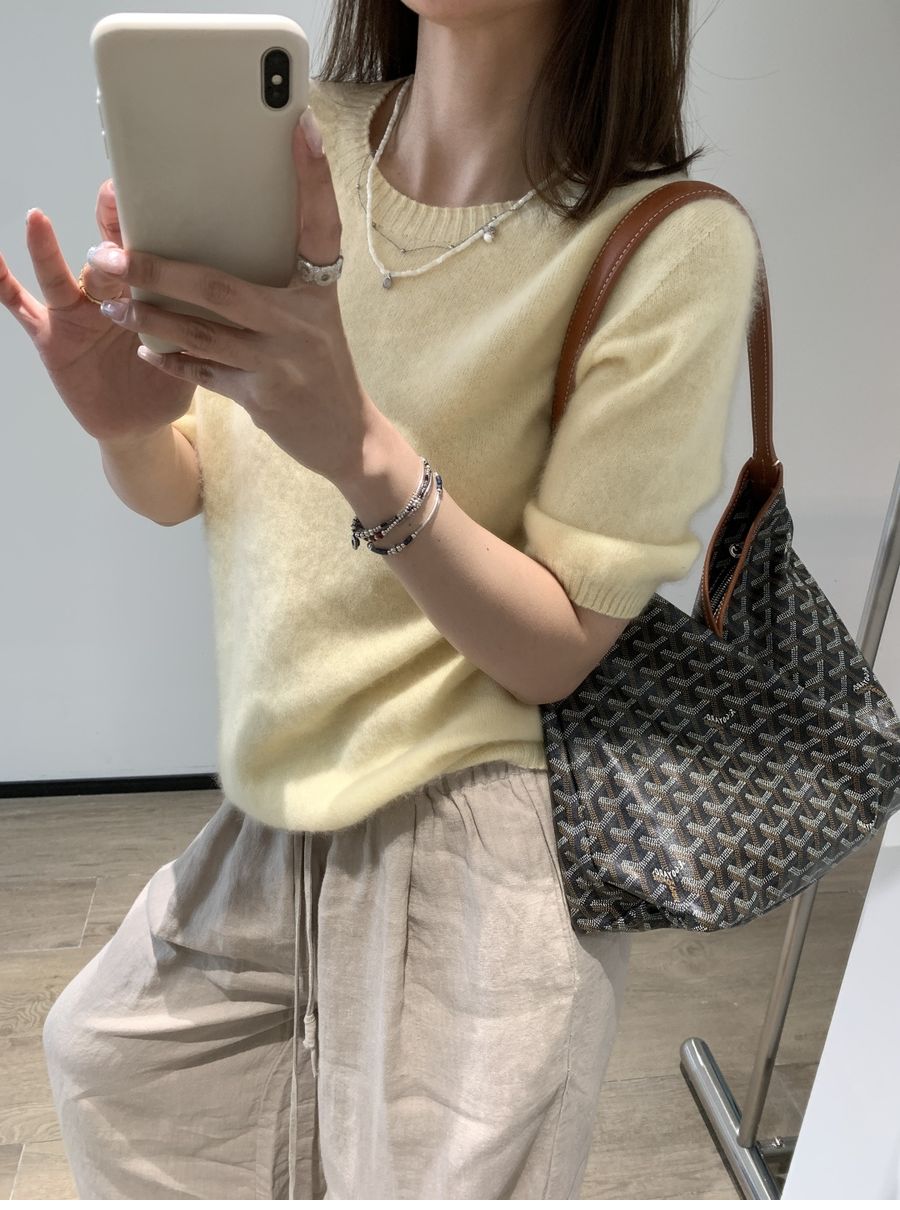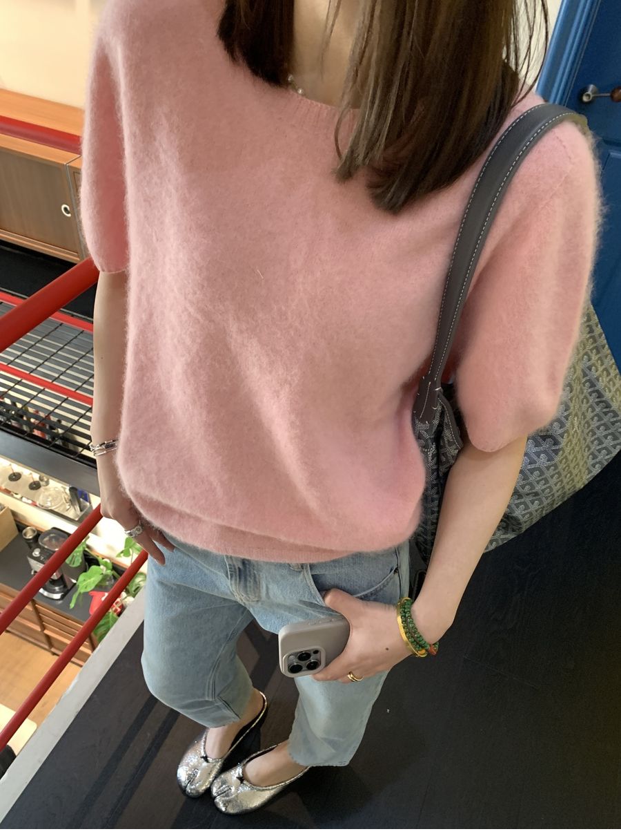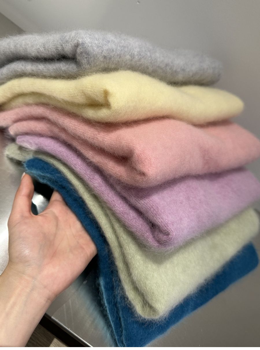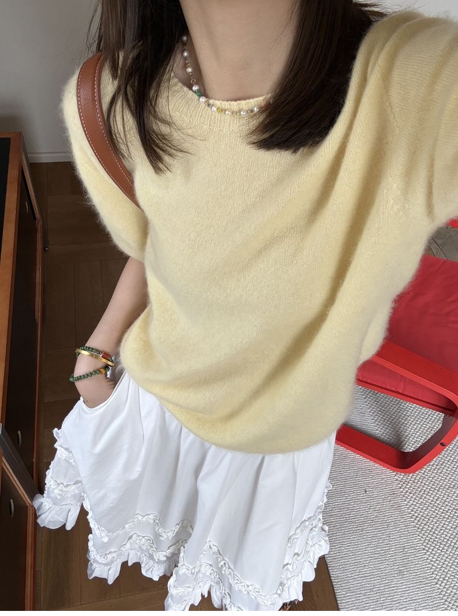 早春款马卡龙色系拉毛短袖来喽!无缝一体工艺的山羊绒羊毛针织,云朵般温柔暴击~