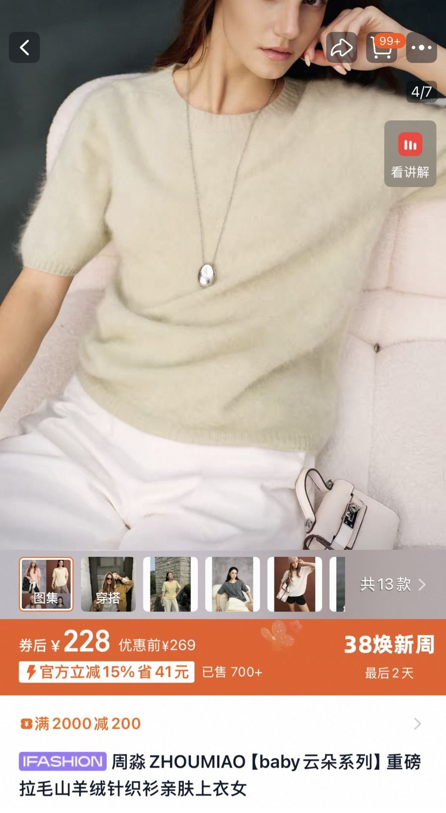 老粉来!去年的爆款拉毛,早春给你们安排的短袖版啊!依旧的高品质山羊绒羊毛!