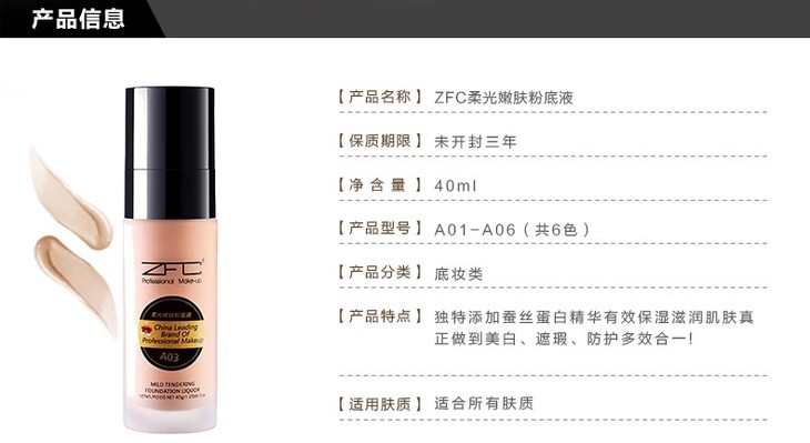 【彩妆】*ZFC粉底液 保湿遮瑕 柔光嫩肤粉底液