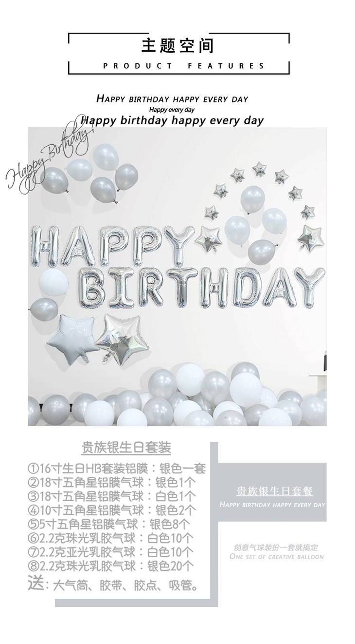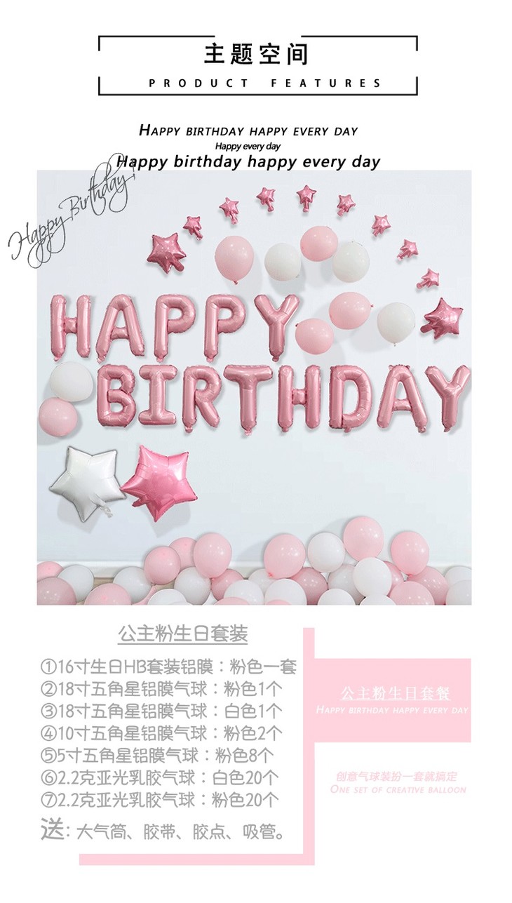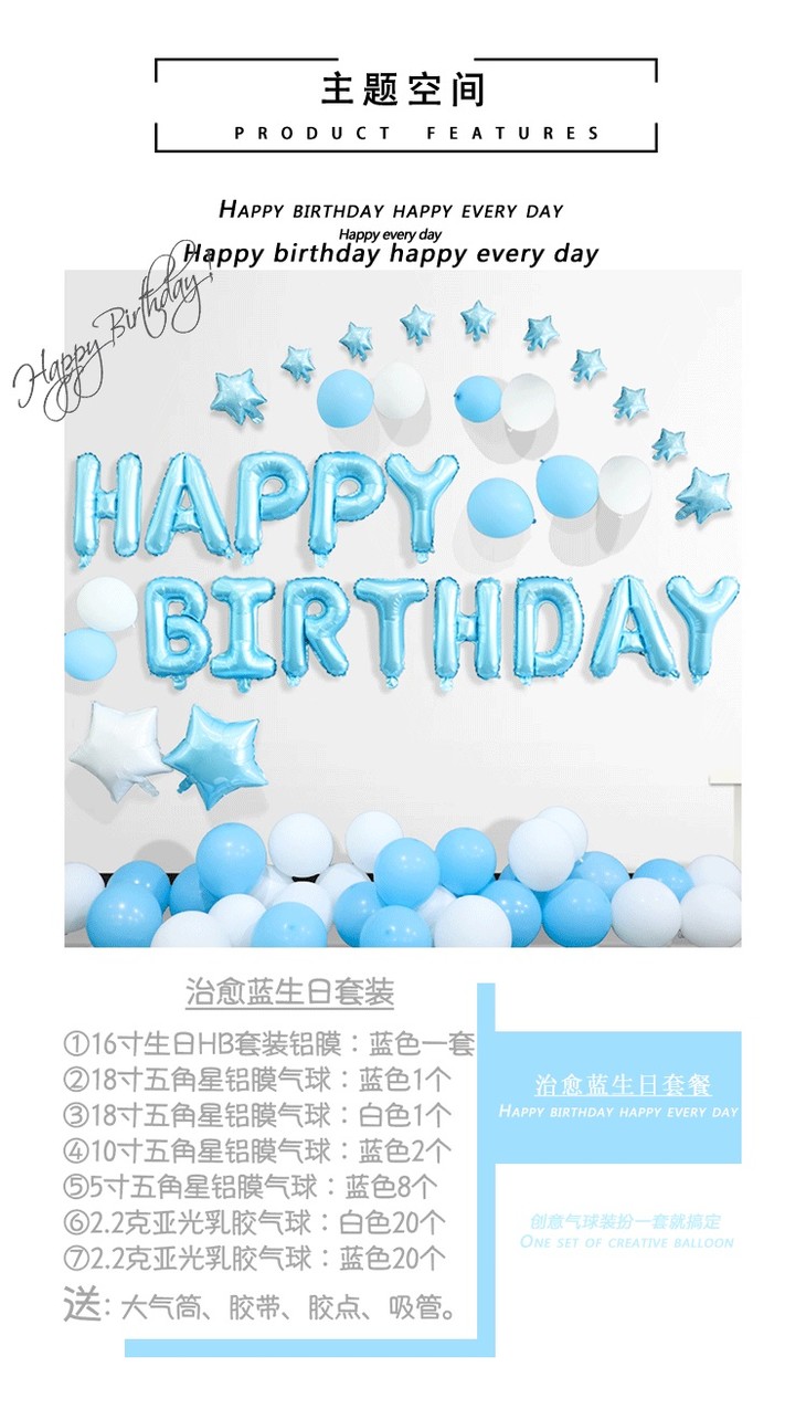 生日派对|成人生日装饰字母铝膜气球派对布置用品浪漫气球装饰套餐