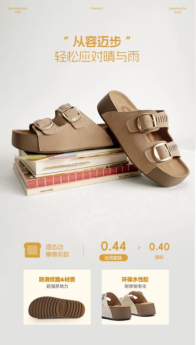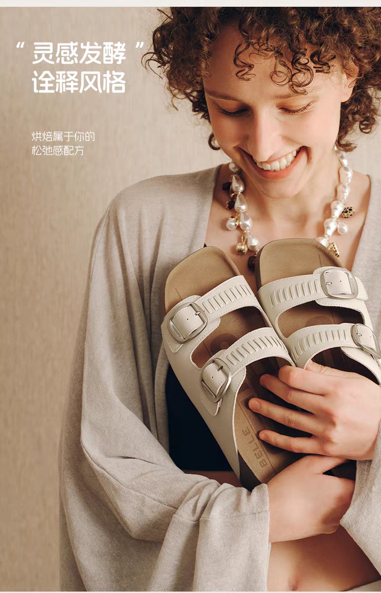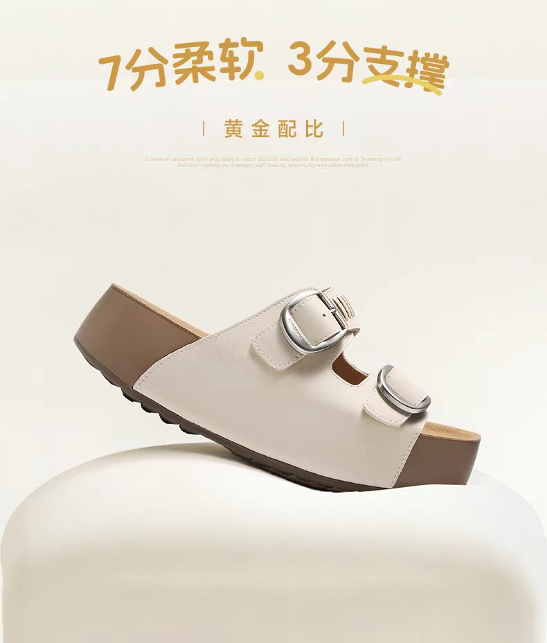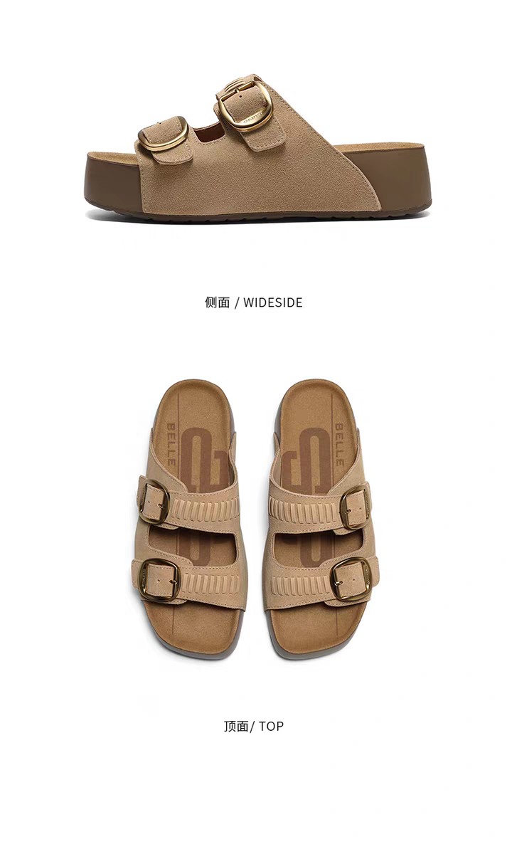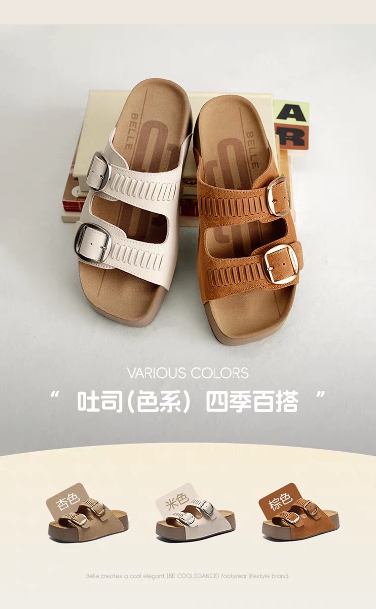 BF楼周雨彤同款百丽麦穗吐司鞋2代厚底勃肯鞋夏季新款外穿拖鞋F5Y1DBT