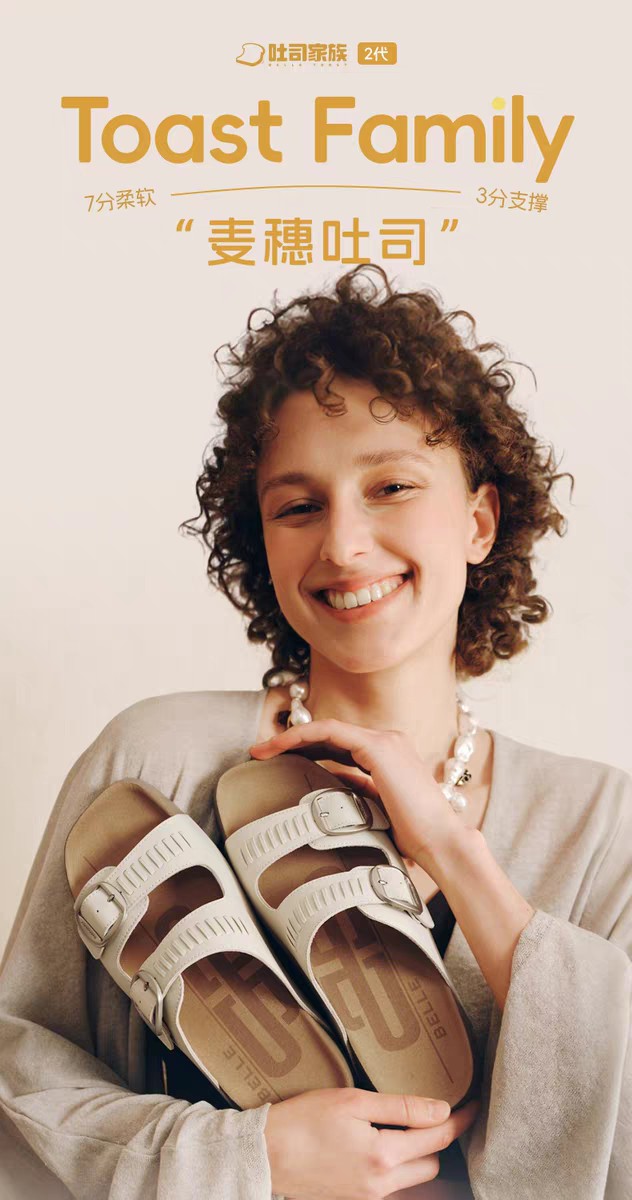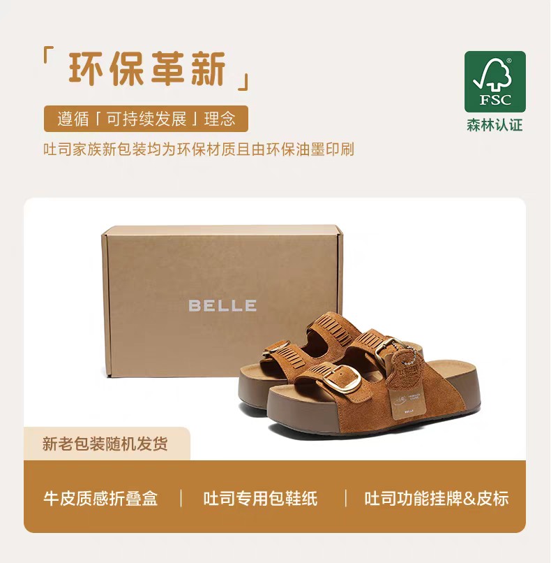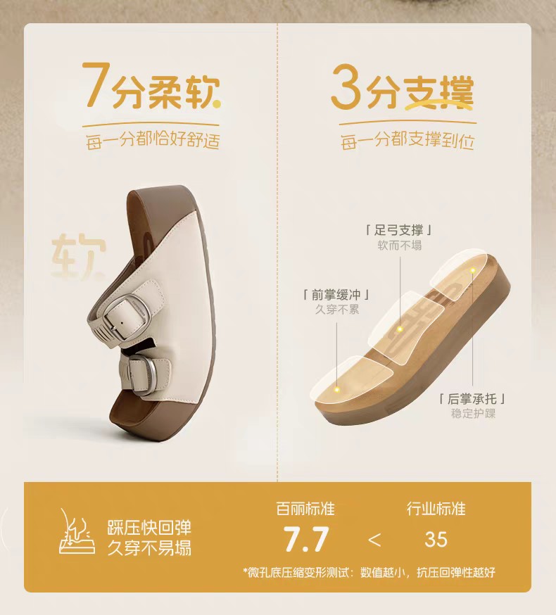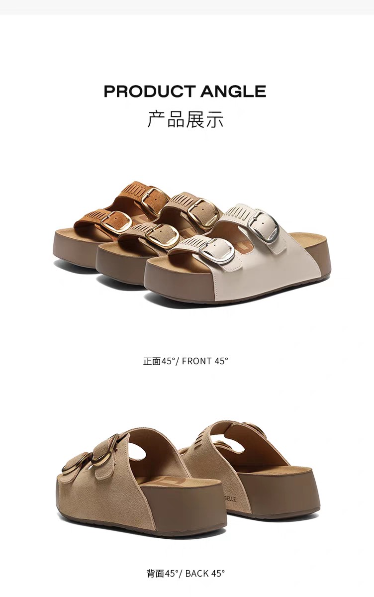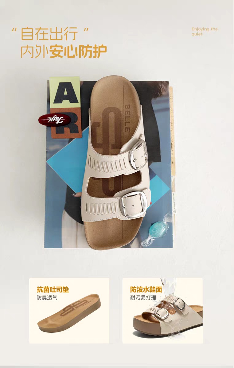 BF楼周雨彤同款百丽麦穗吐司鞋2代厚底勃肯鞋夏季新款外穿拖鞋F5Y1DBT