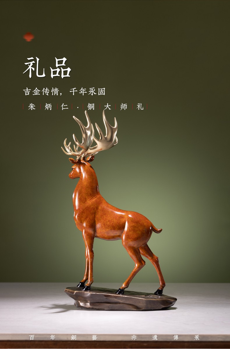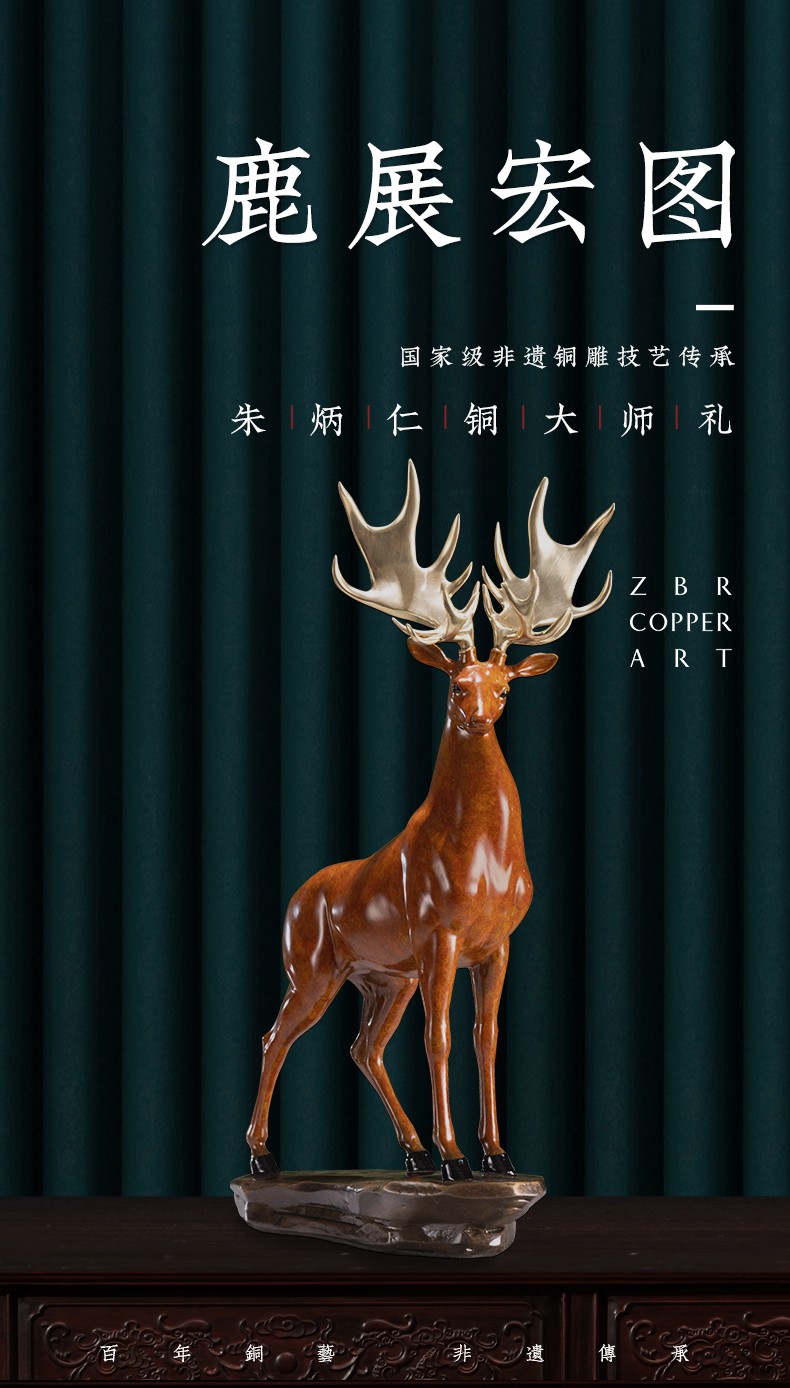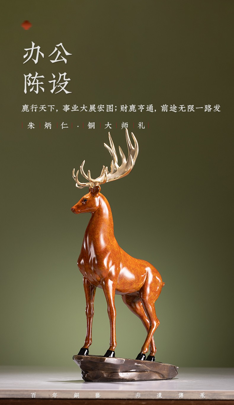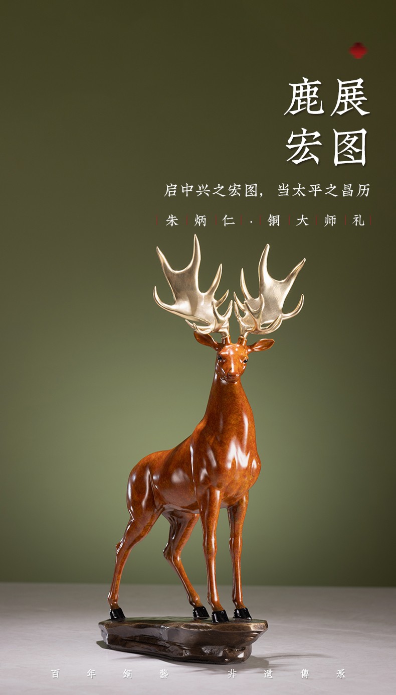 【6F】朱炳仁铜 鹿展宏图 全铜吉祥鹿客厅玄关摆件工艺品家居装饰品办公室摆设开业礼品 鹿展宏图