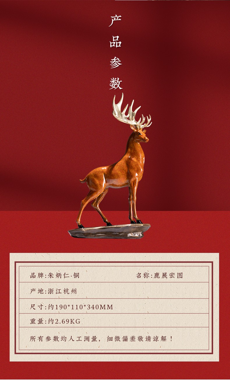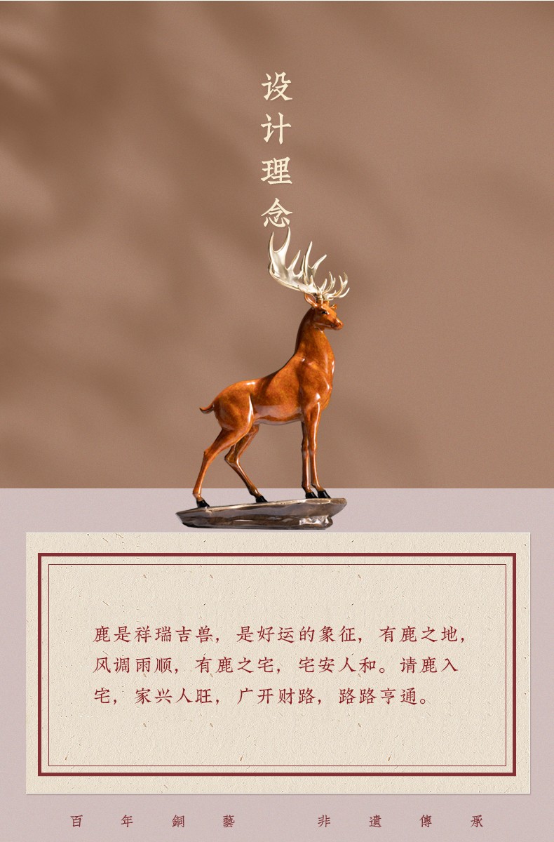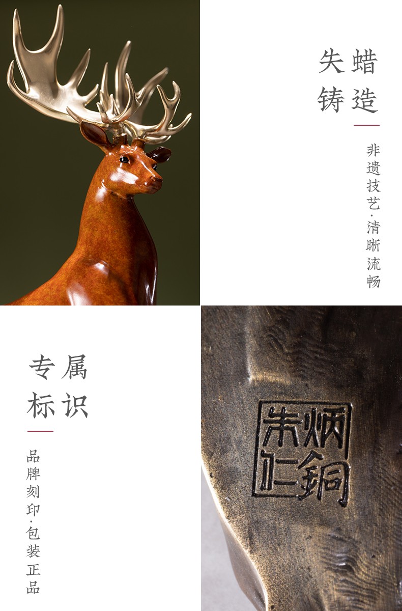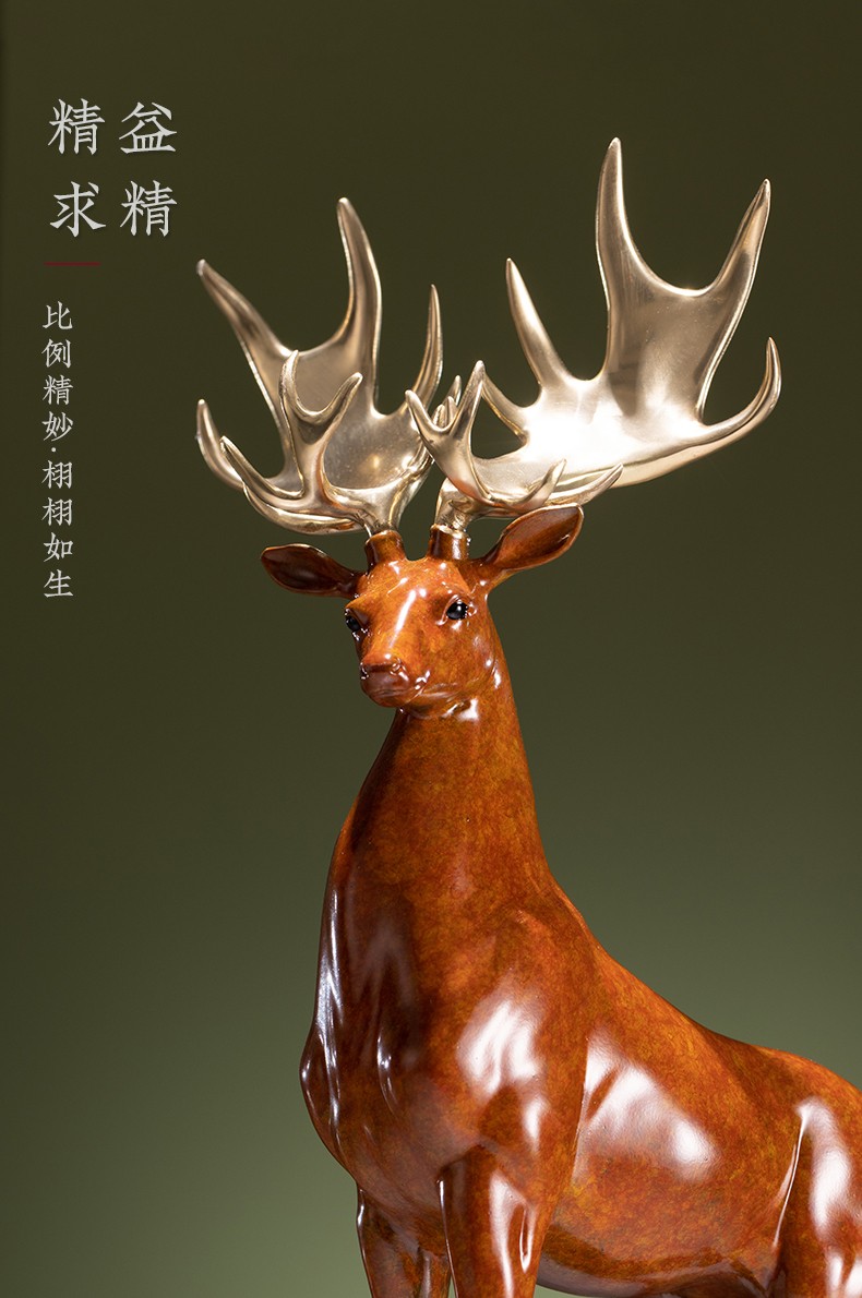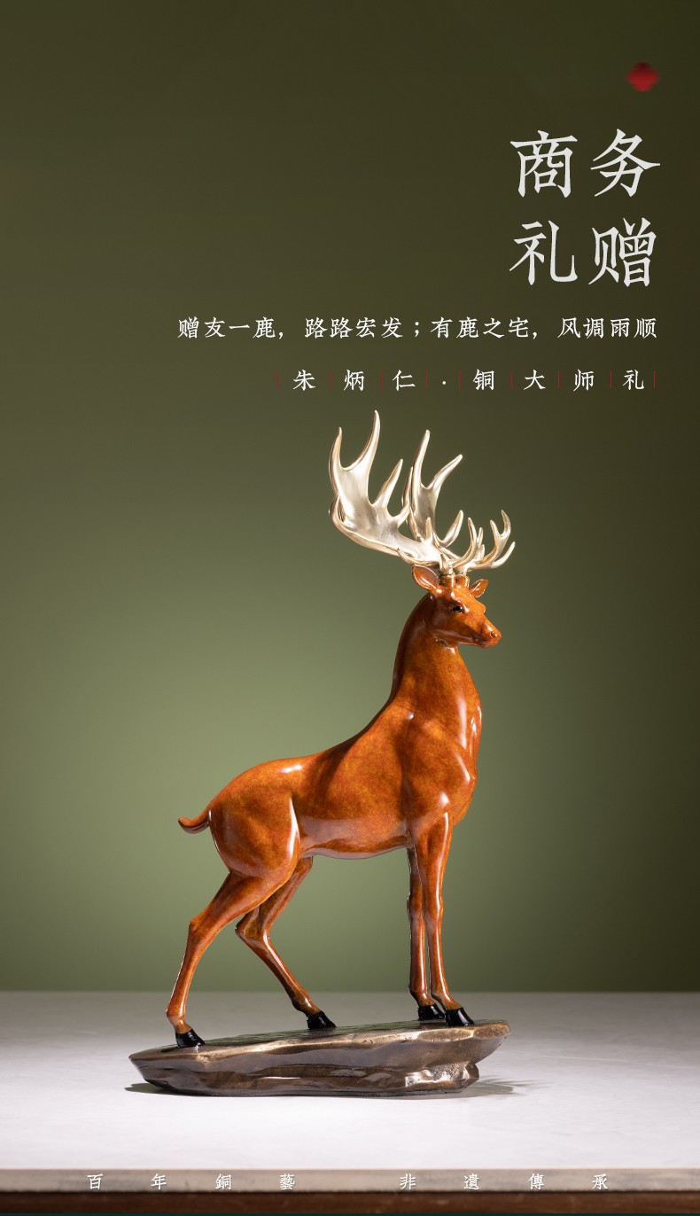 【6F】朱炳仁铜 鹿展宏图 全铜吉祥鹿客厅玄关摆件工艺品家居装饰品办公室摆设开业礼品 鹿展宏图