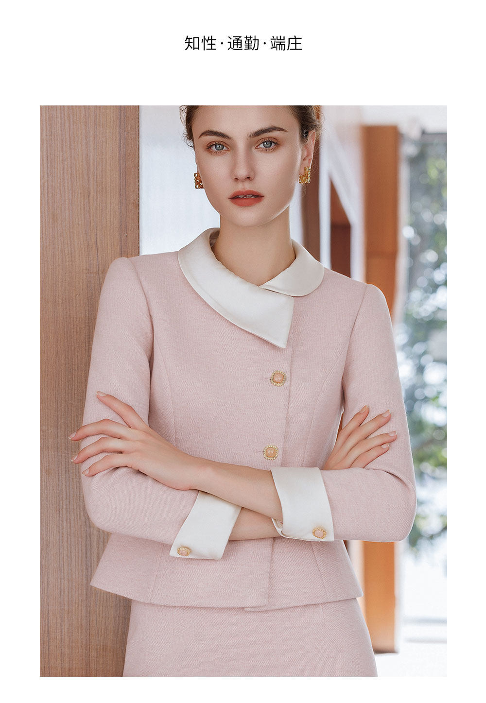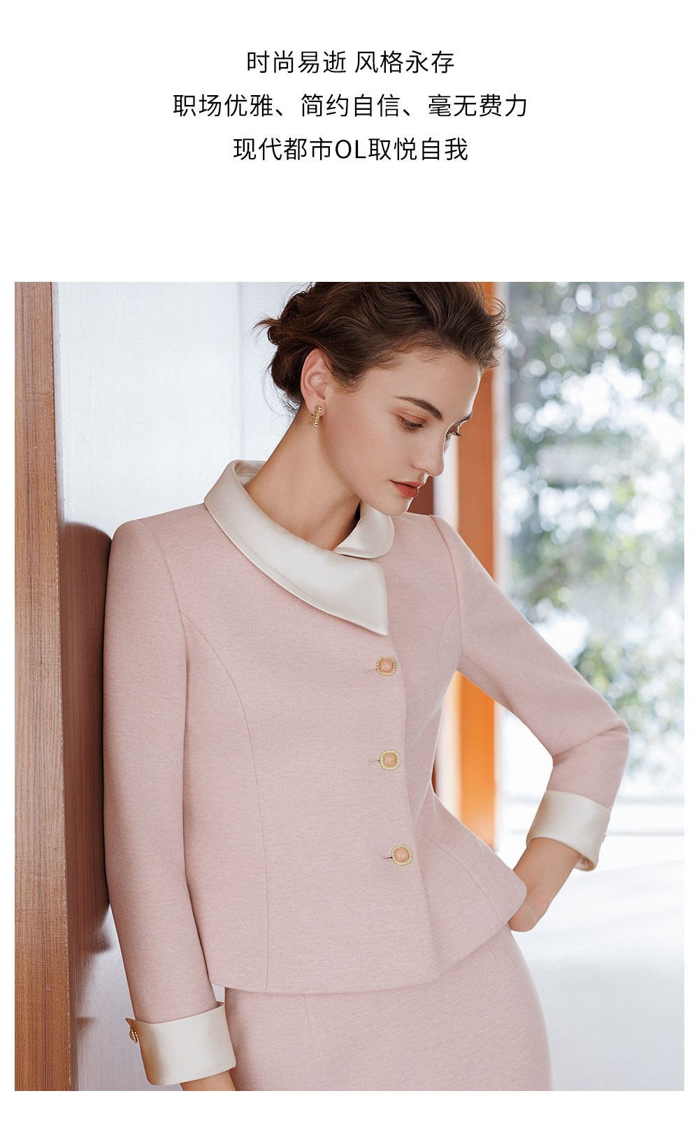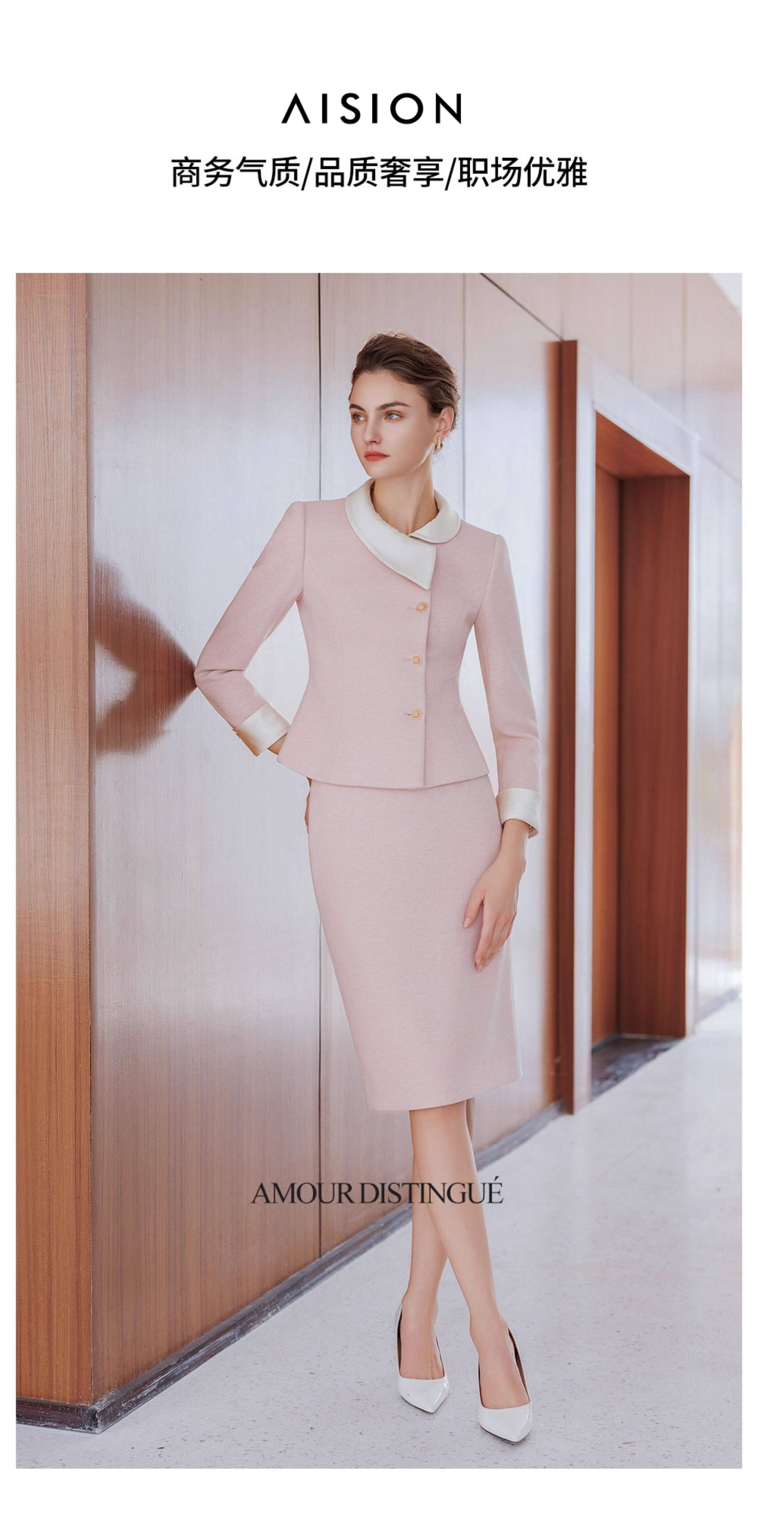 艾尚臣粉色西装套装女高级感撞色领西服小香风两件套气质职业套装