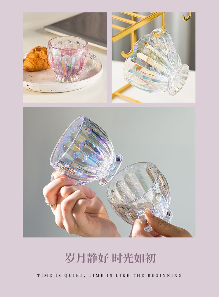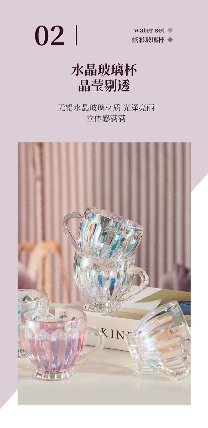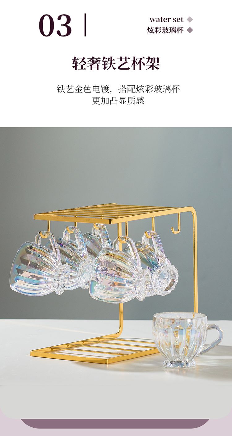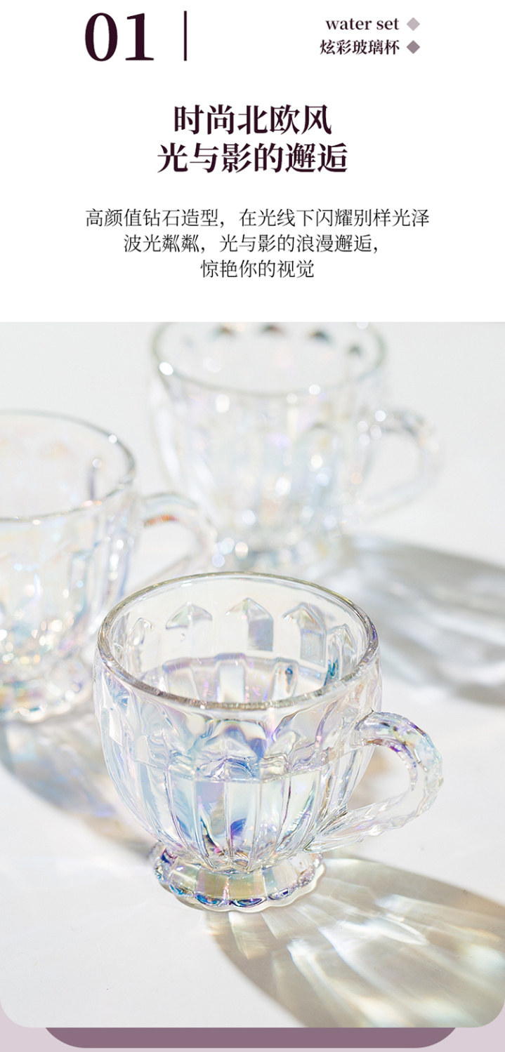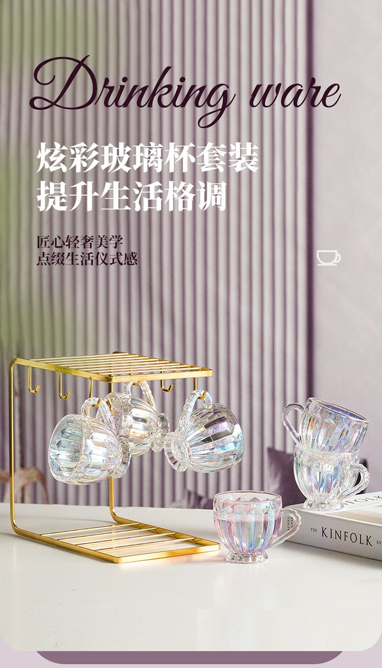 彩色轻奢玻璃杯网红创意家用套装牛奶奶茶咖啡果汁杯架高颜值杯子