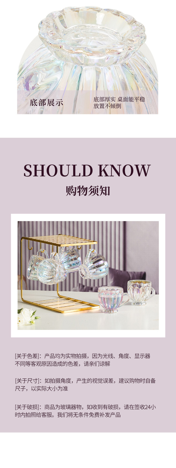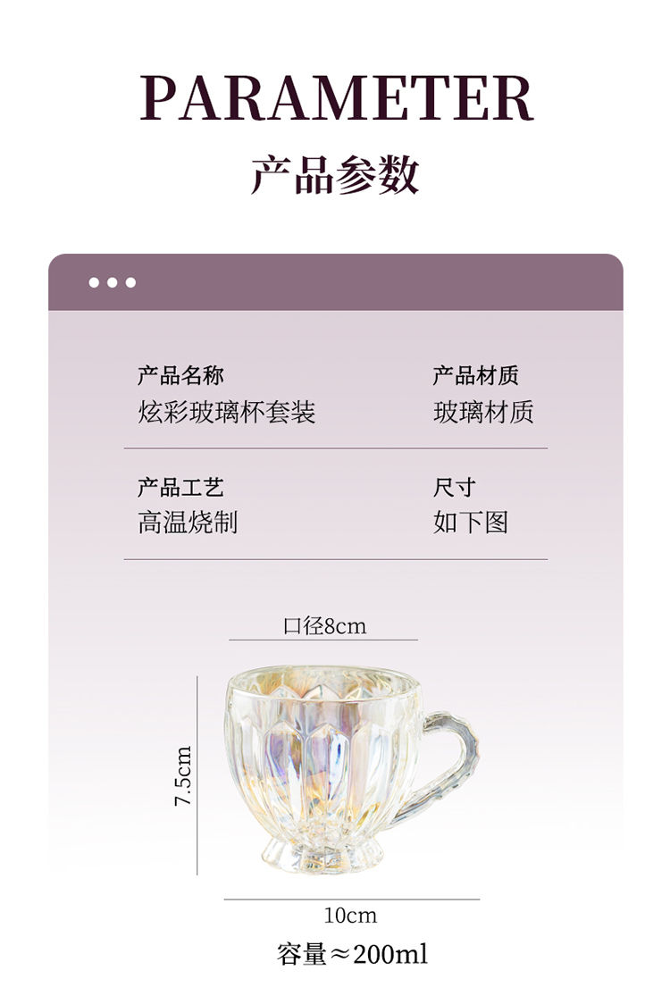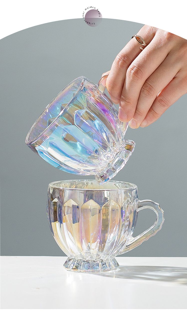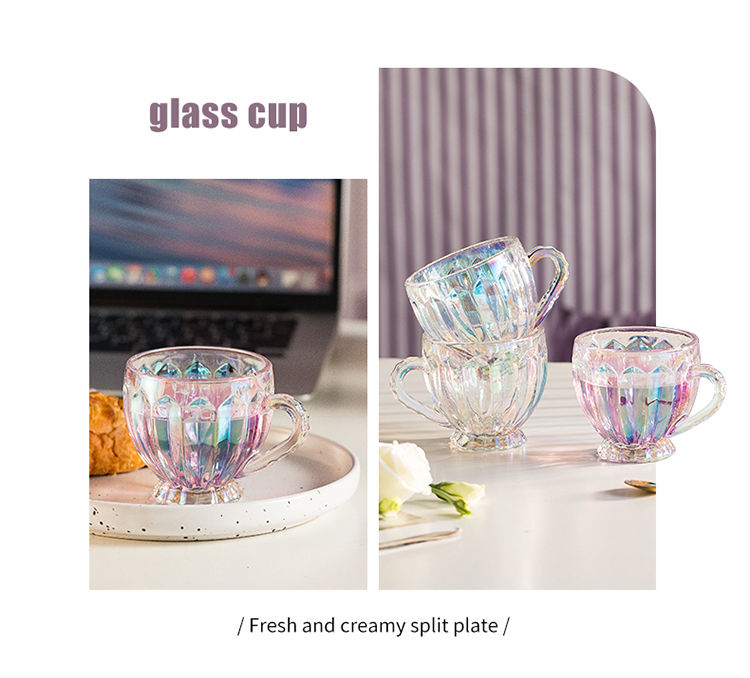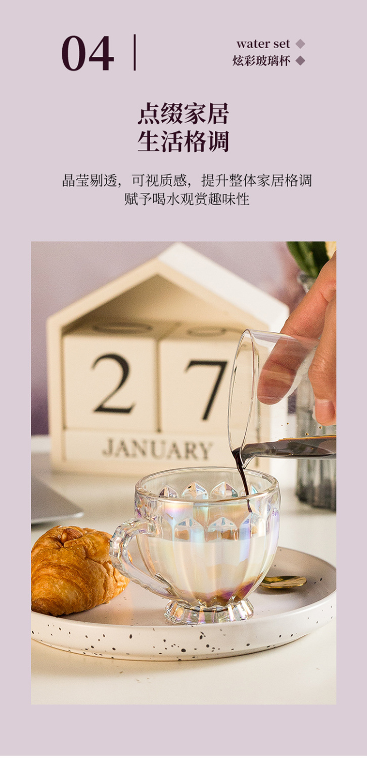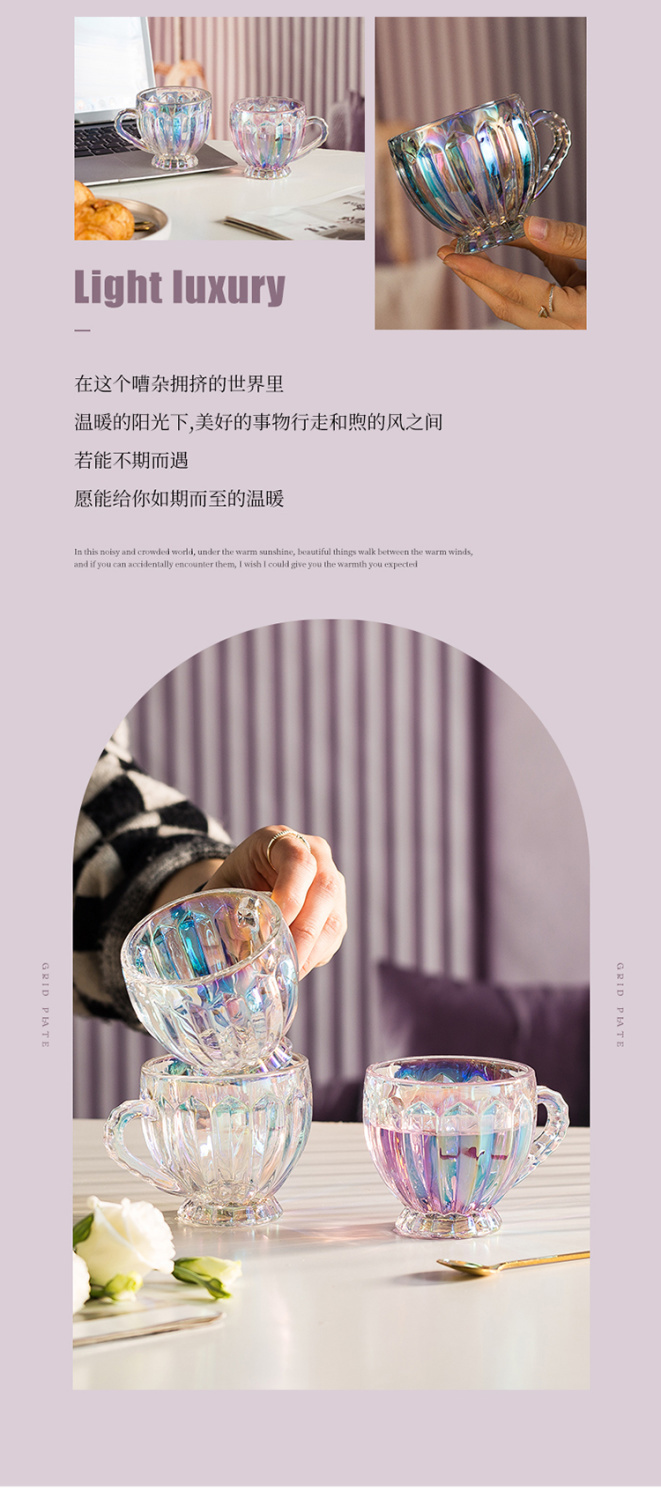 彩色轻奢玻璃杯网红创意家用套装牛奶奶茶咖啡果汁杯架高颜值杯子