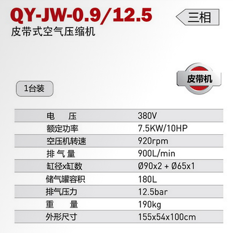 皮带式活塞空压机 QY-JW-0.9/12.5 家