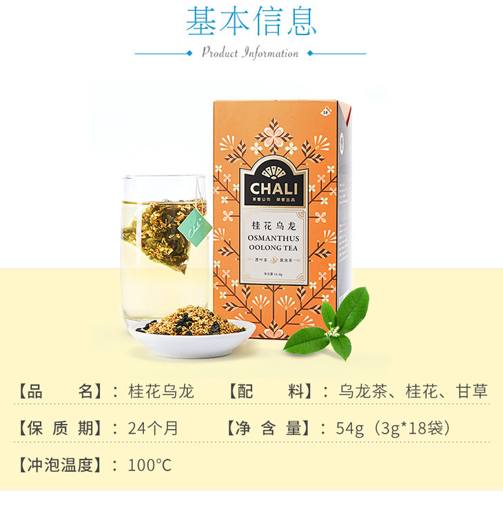 【2件82折】CHALI茶里桂花乌龙茶 袋泡茶54g(18包/盒)