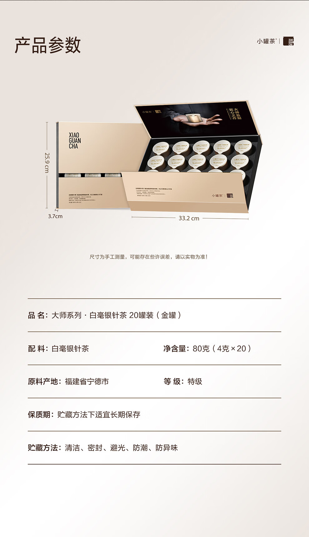 小罐茶 金罐20罐装白毫银针茶(20x4g)【HSZQ10.0】