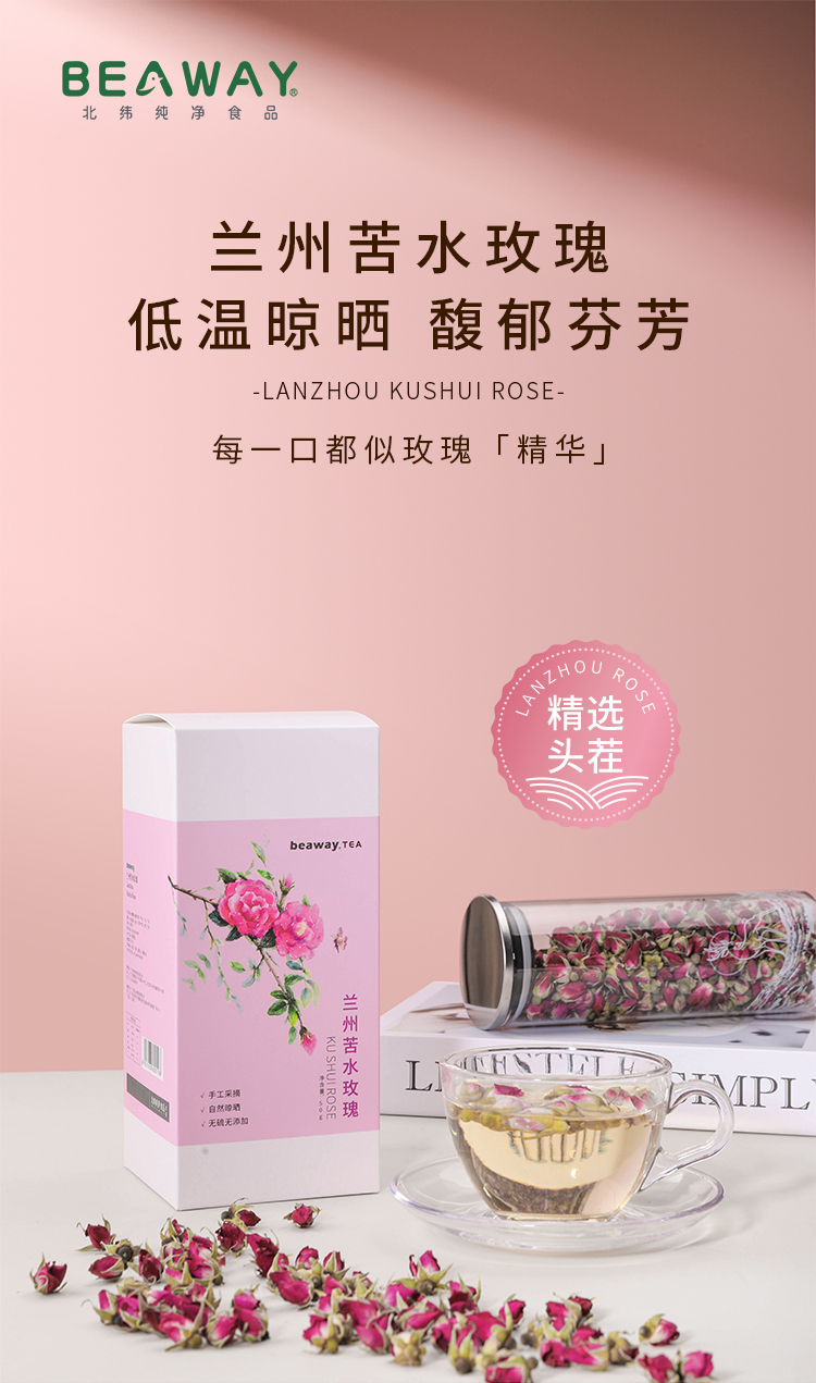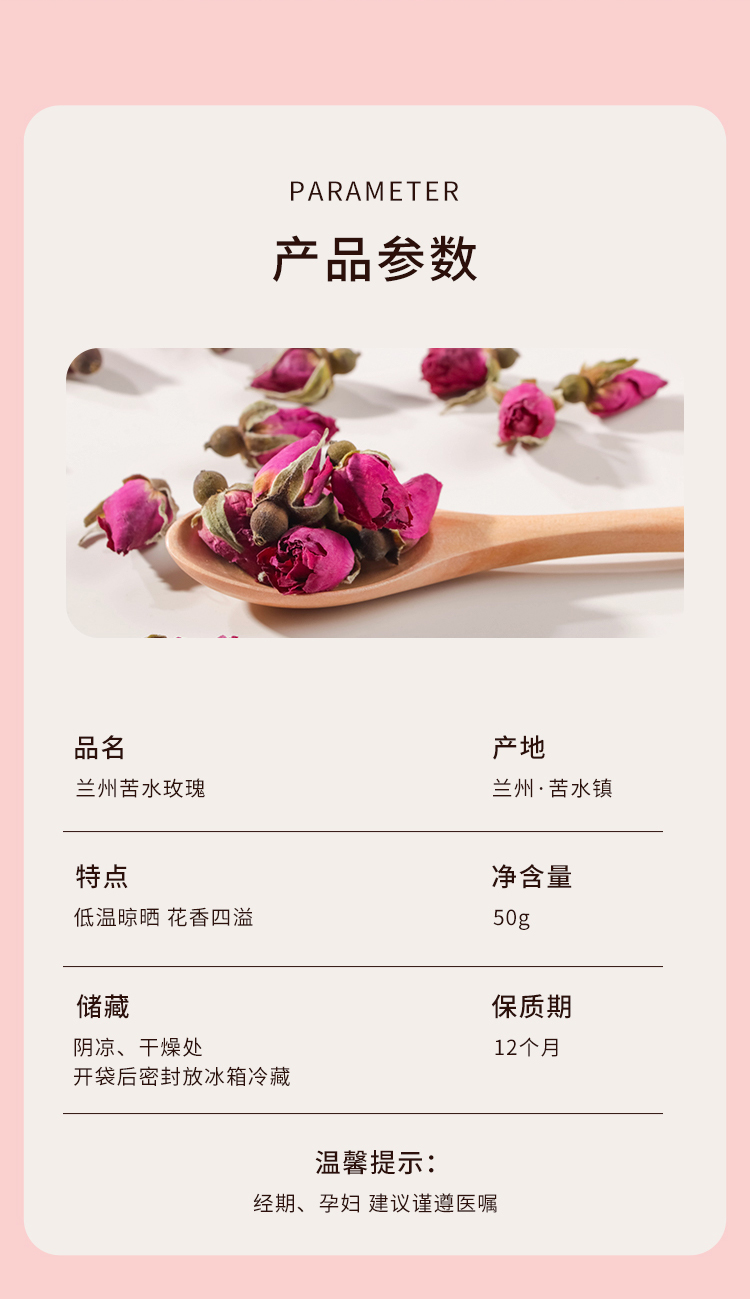 北纬纯净食品|38°【限时促销】兰州苦水玫瑰花茶无熏硫干玫瑰花50g