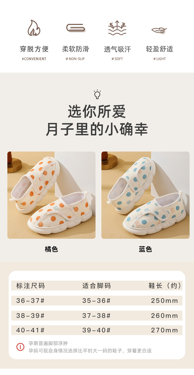 春夏季新款魔术贴月子鞋产妇夏季包跟透气孕妇软底室内产后棉拖鞋