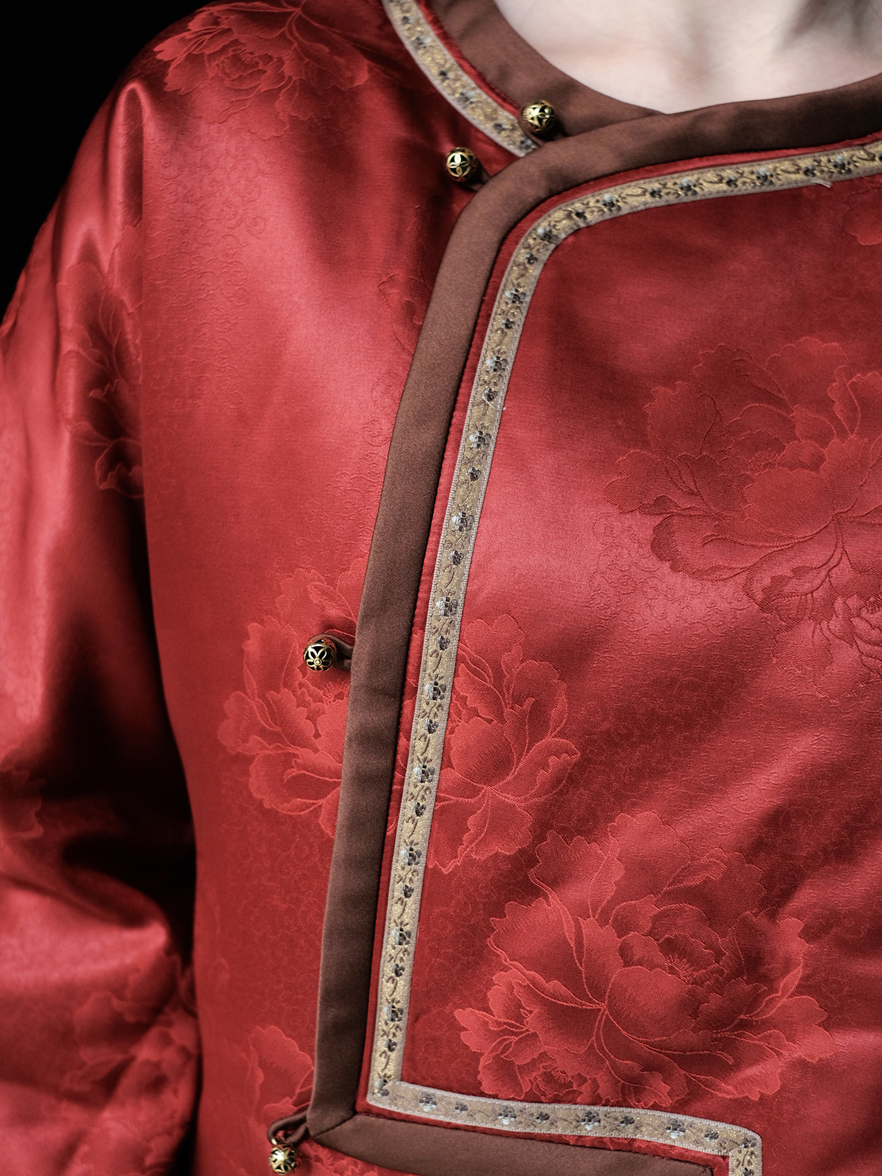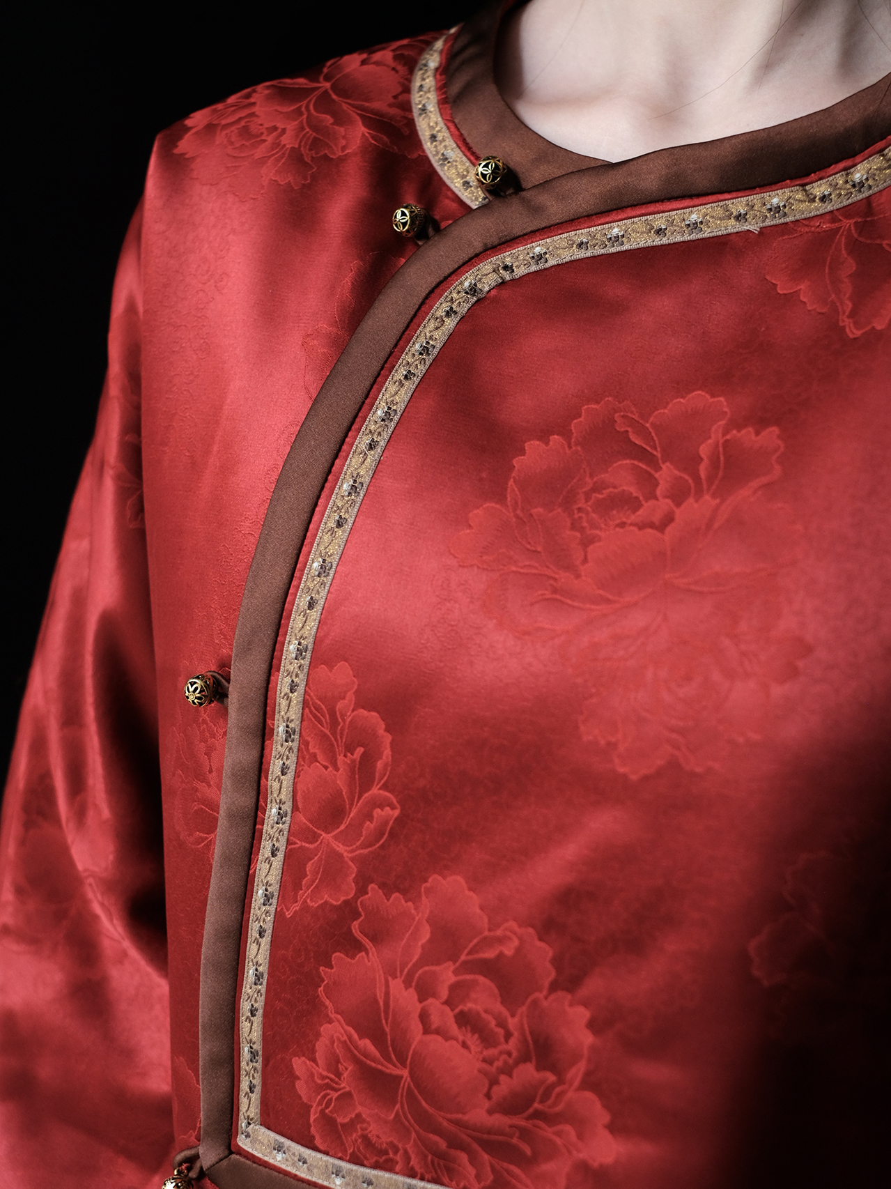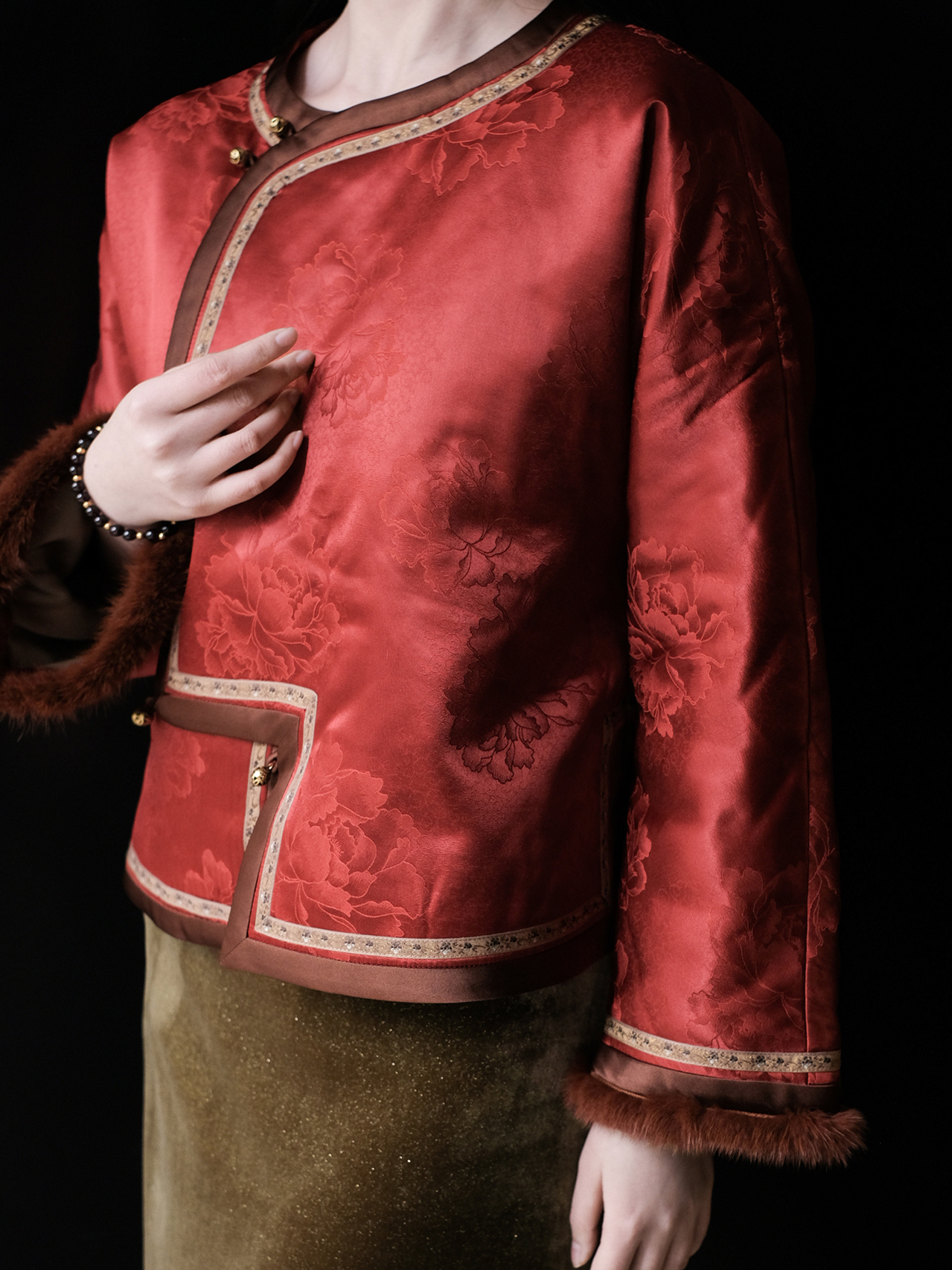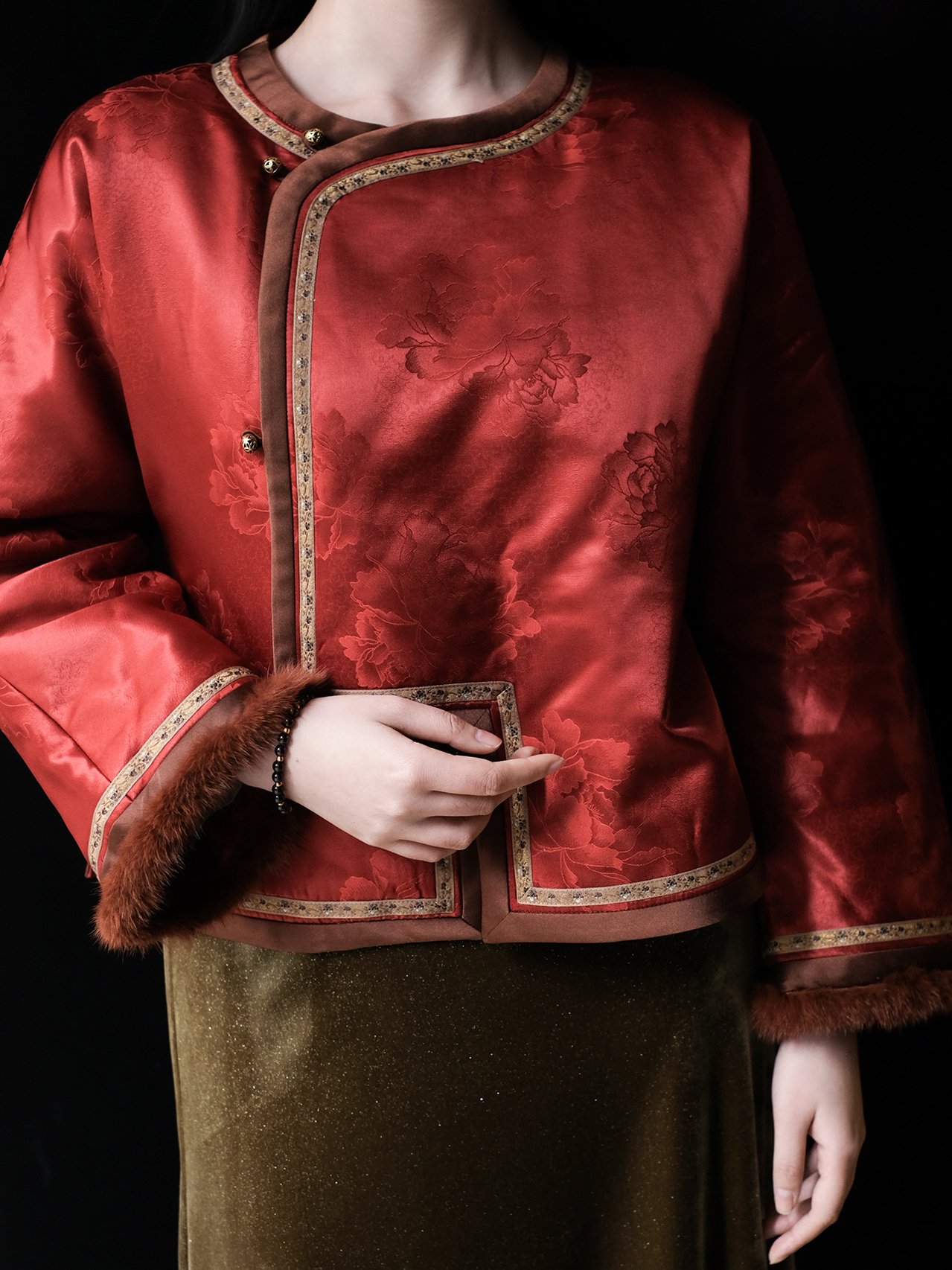 盛唐婧 | 丹霞映璧香云纱重缎夹棉水貂上衣
