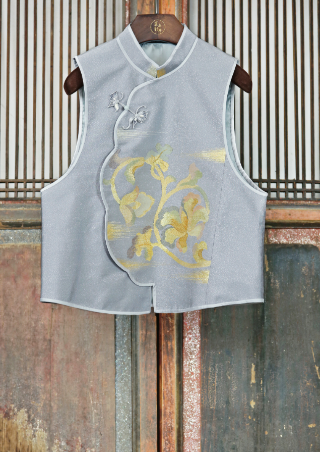盛唐牡丹盛奢系列| 西阵织缂丝花瓣领马甲-蓝色