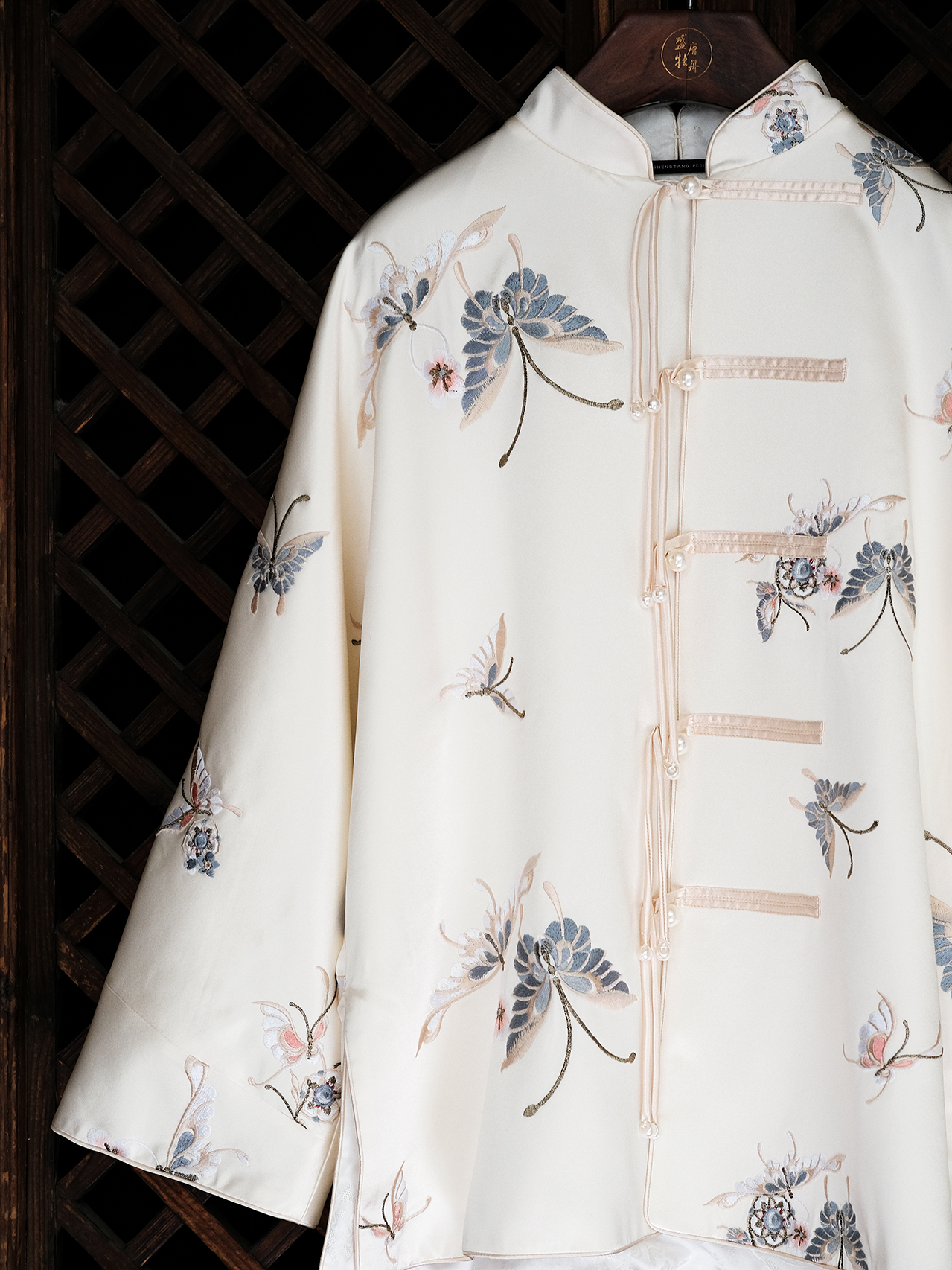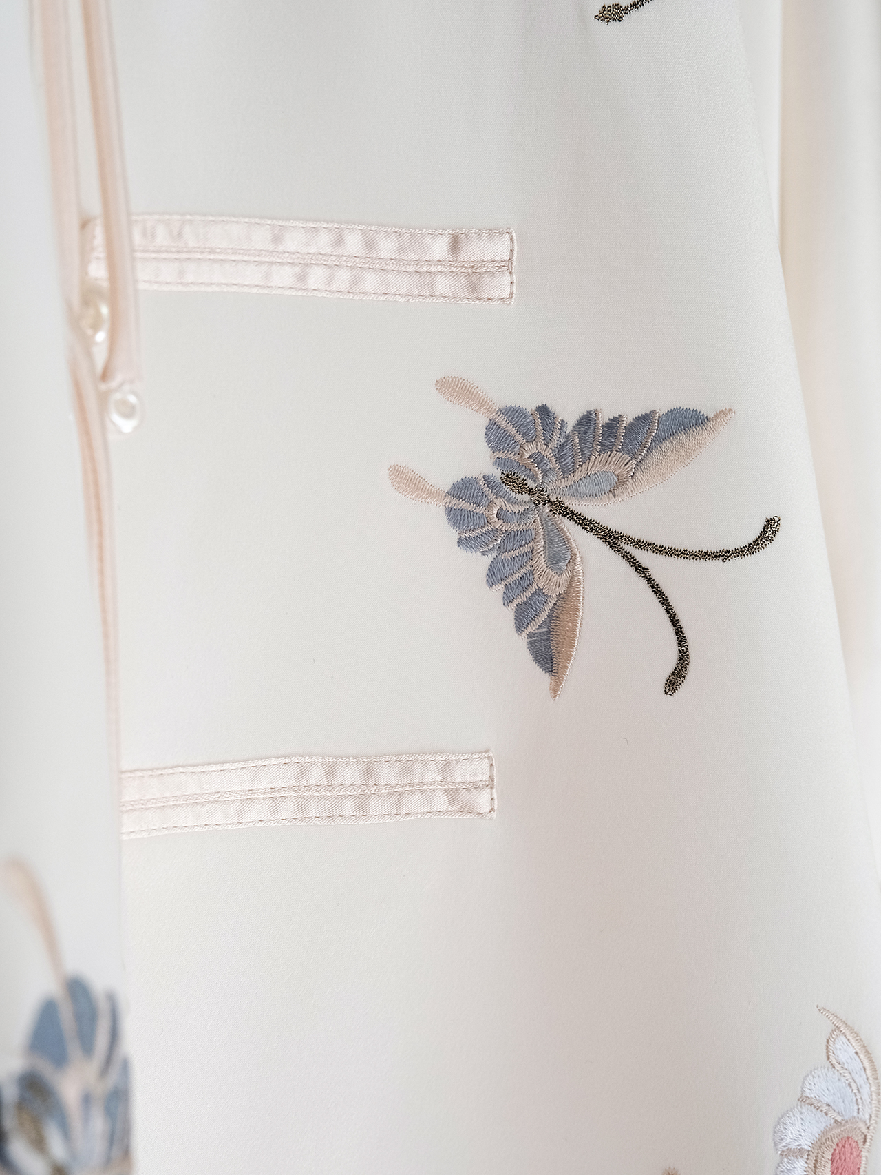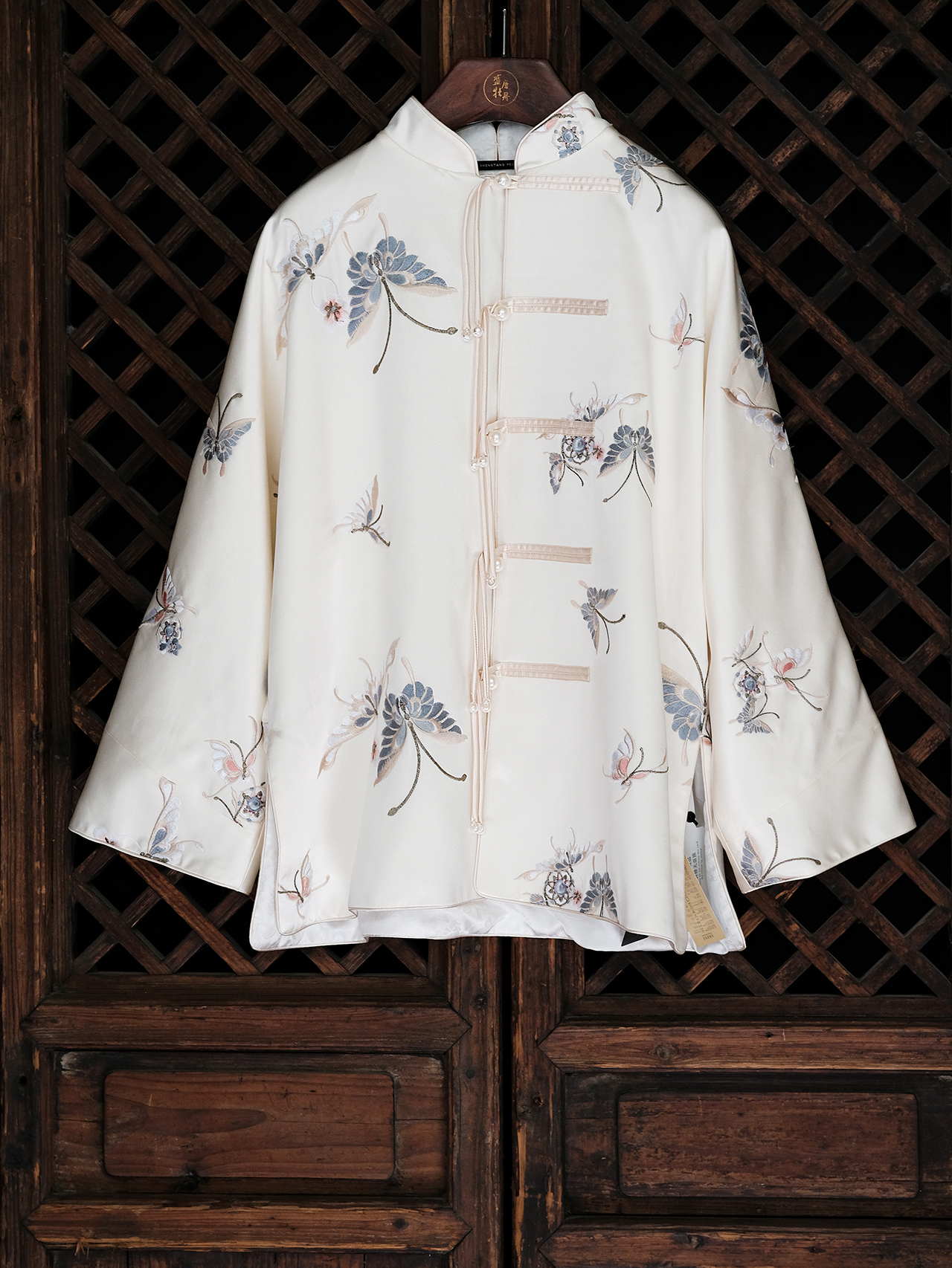 盛唐牡丹| 花舞蝶梦手推绣真丝外套(白色扣子)