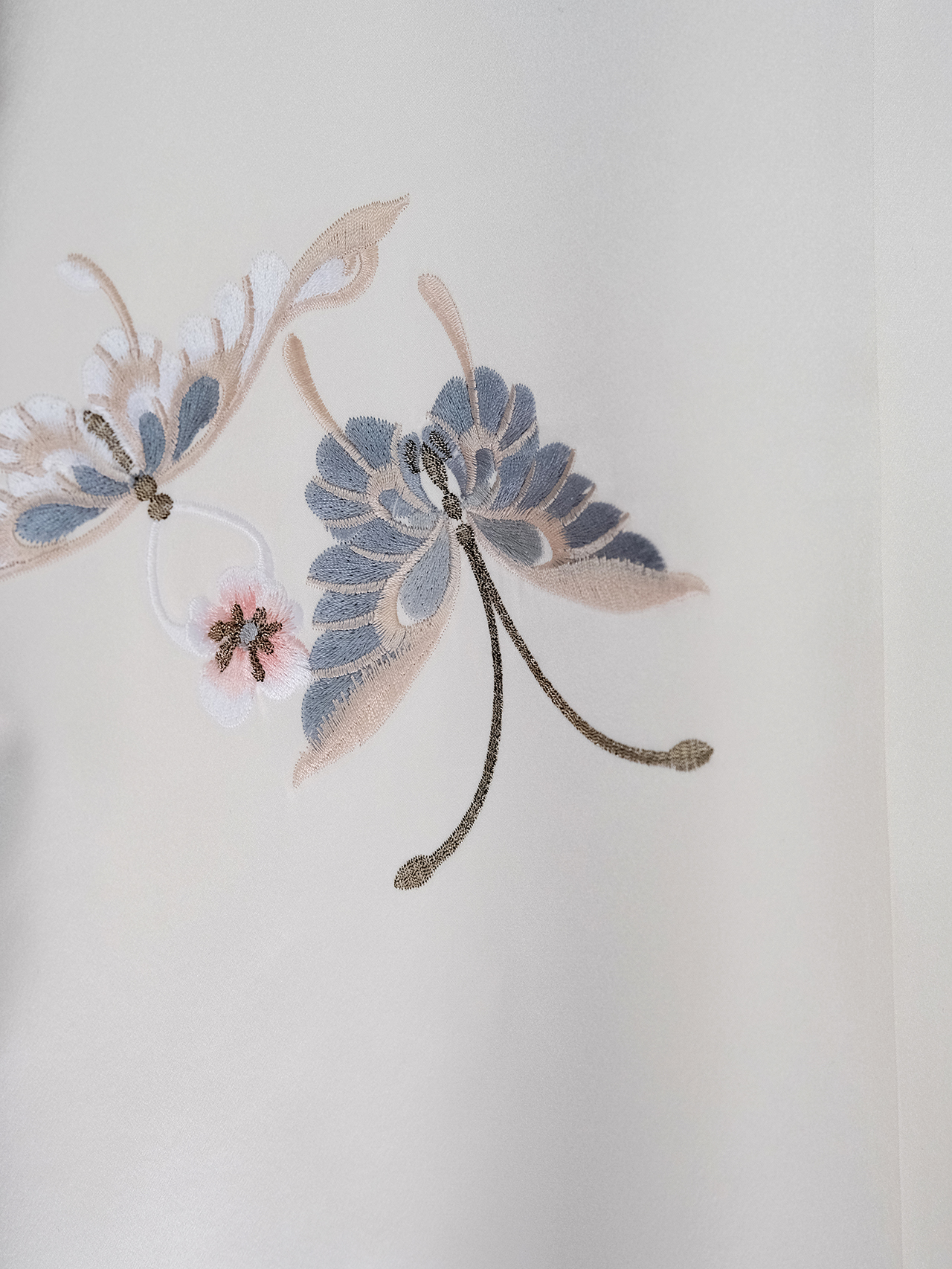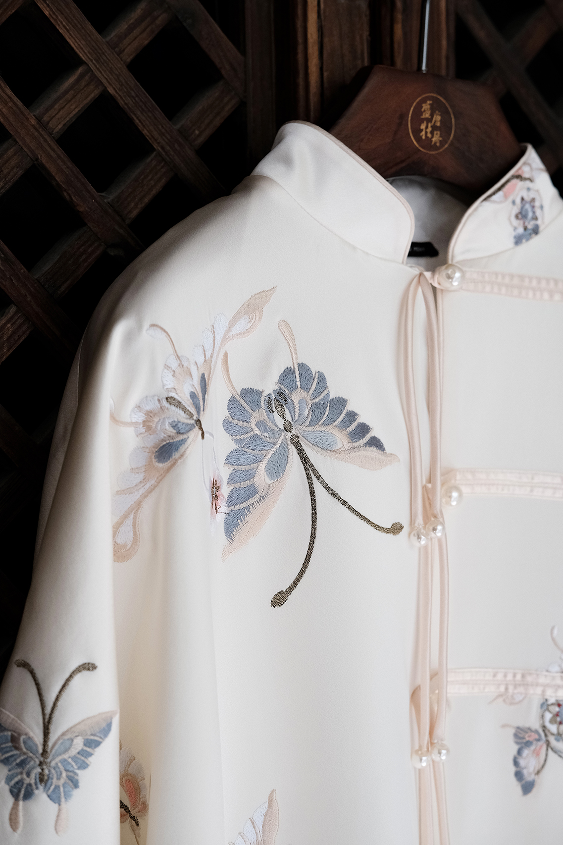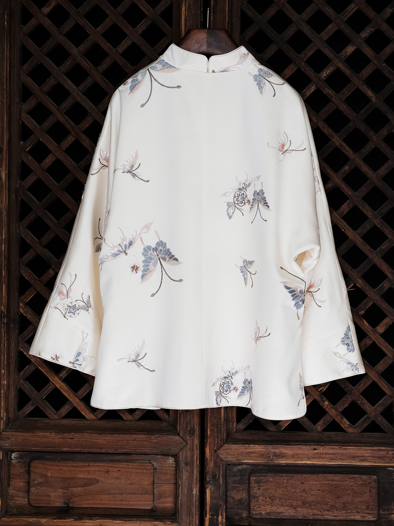 盛唐牡丹| 花舞蝶梦手推绣真丝外套(白色扣子)