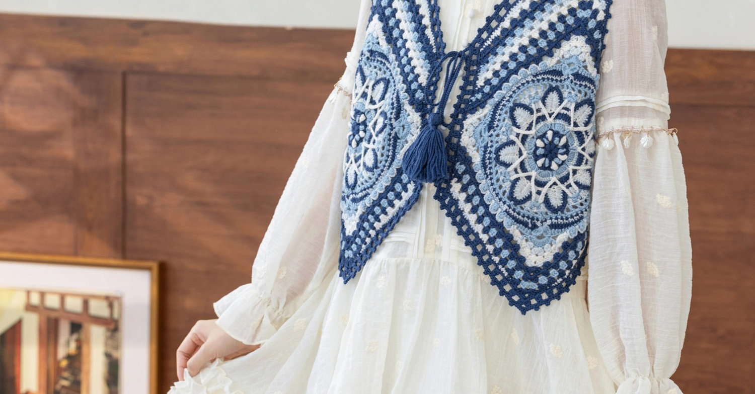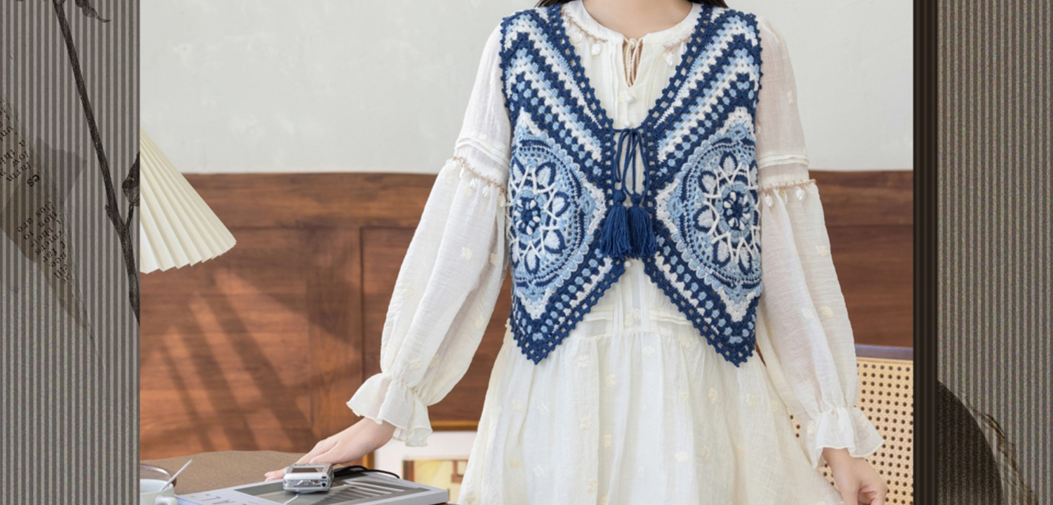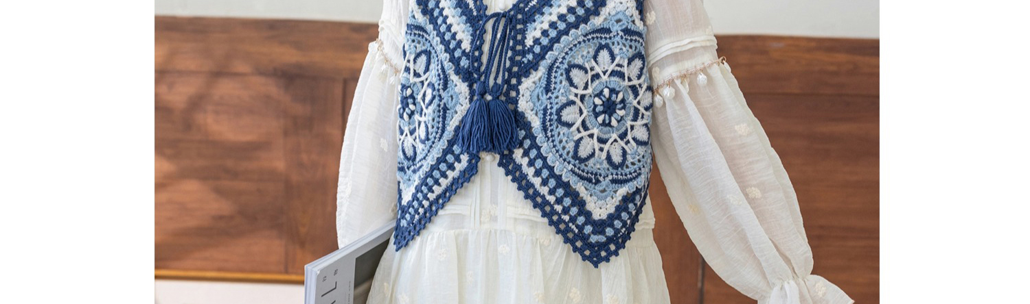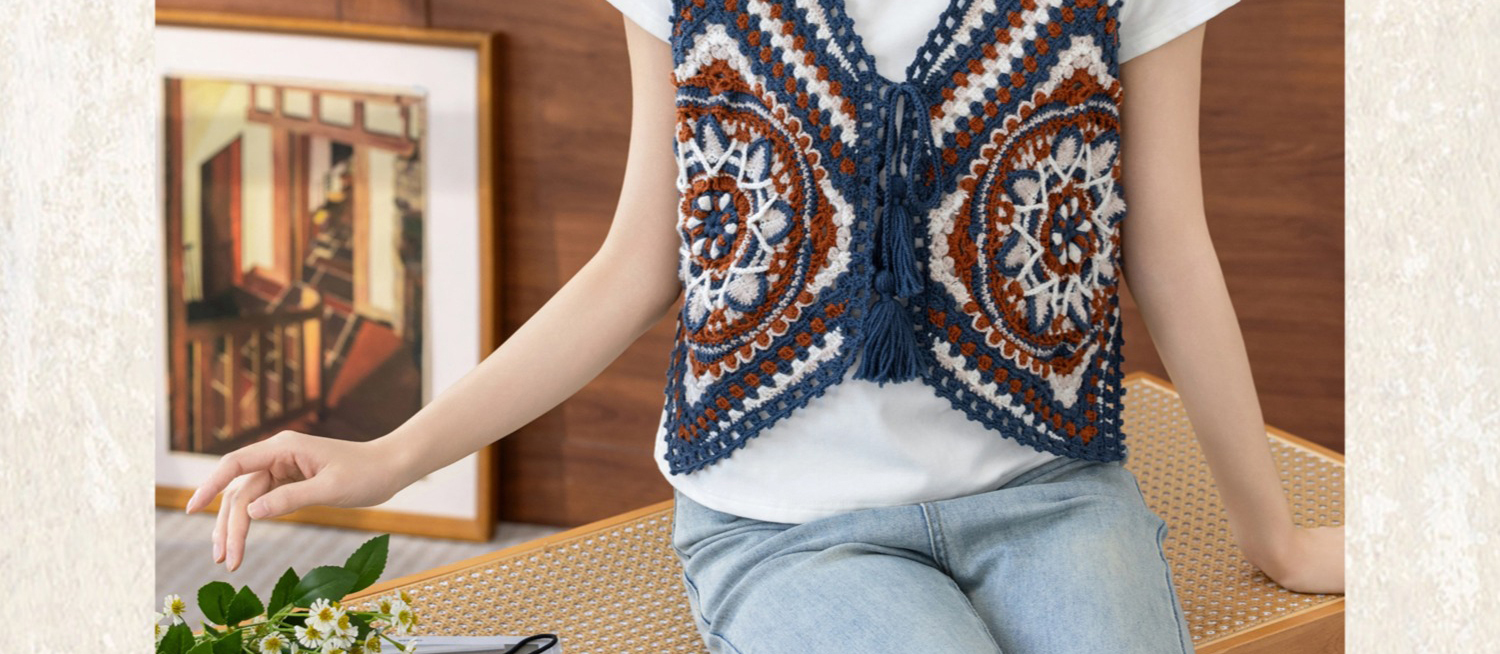 苏苏姐家蓝染拼花马甲手工diy钩针自制羊毛线编织毛线团材料包
