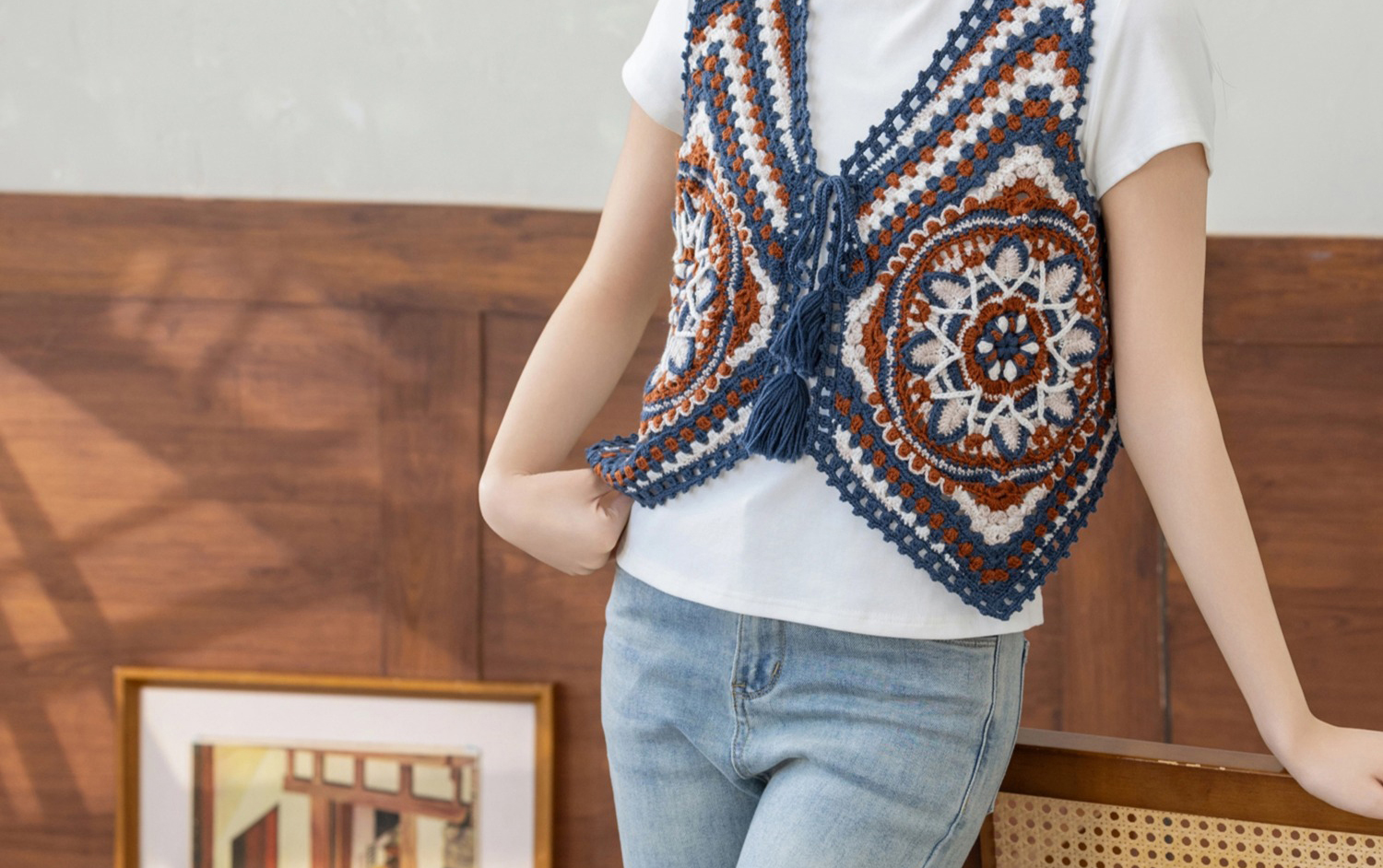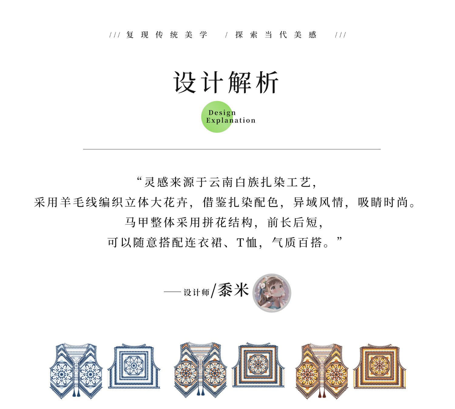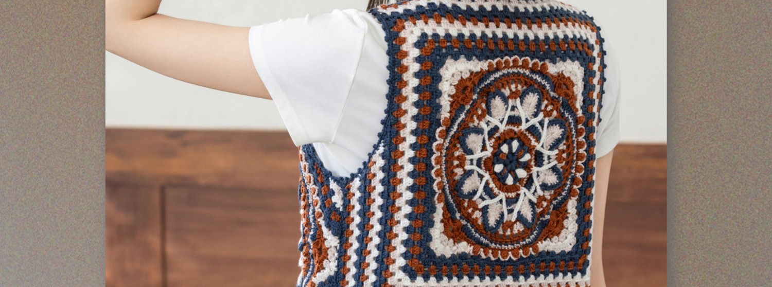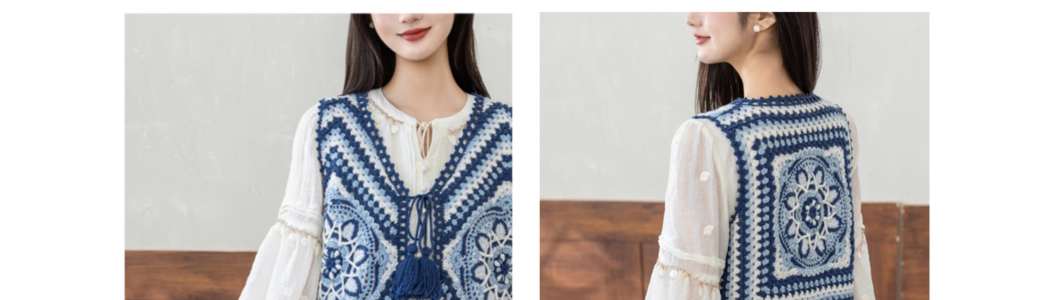 苏苏姐家蓝染拼花马甲手工diy钩针自制羊毛线编织毛线团材料包
