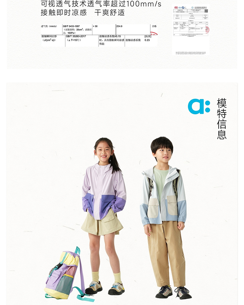【春Vol.3】allblu幼岚【OO布】儿童弹力防晒外套26春夏男童女童A类外套透气