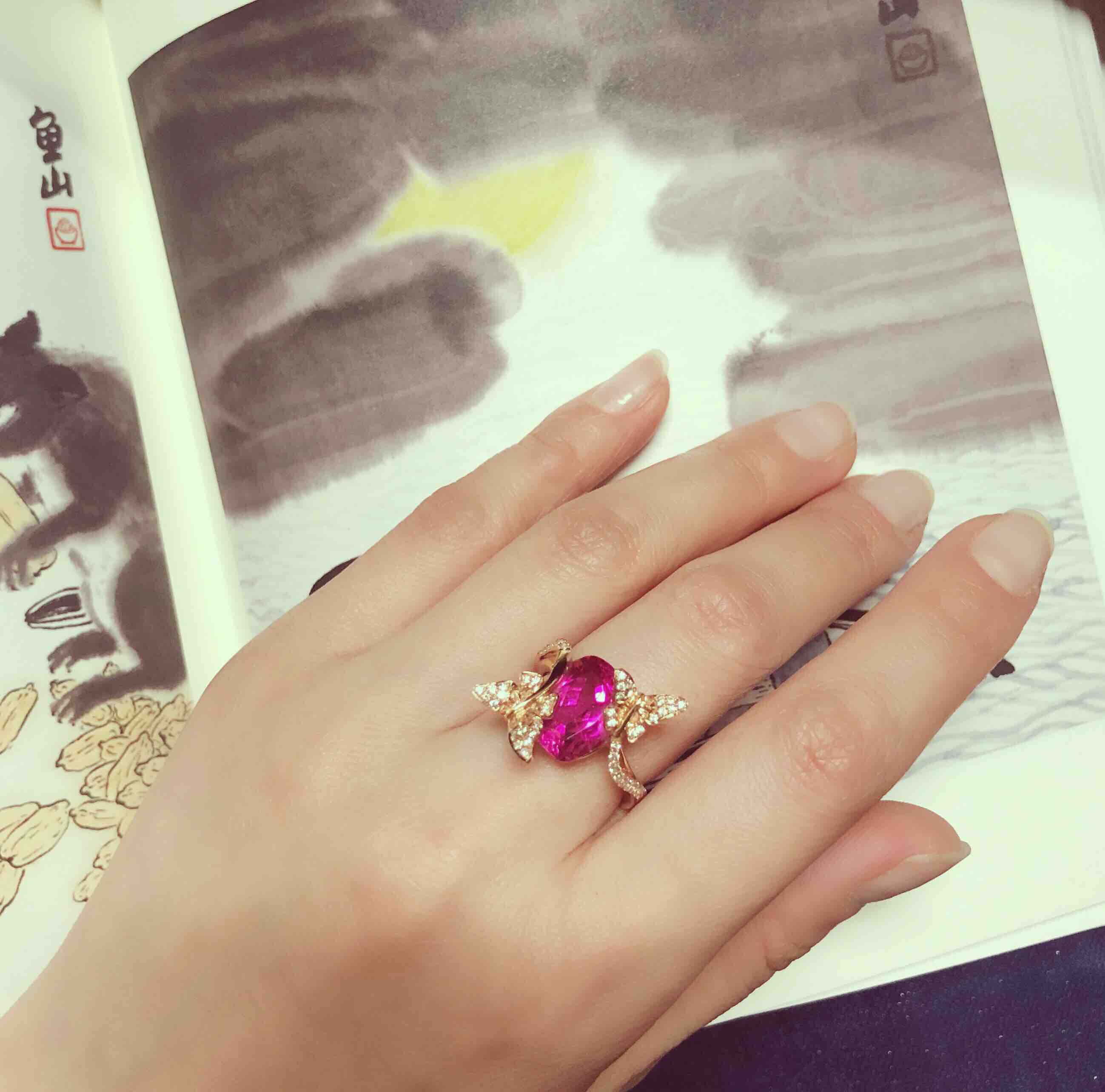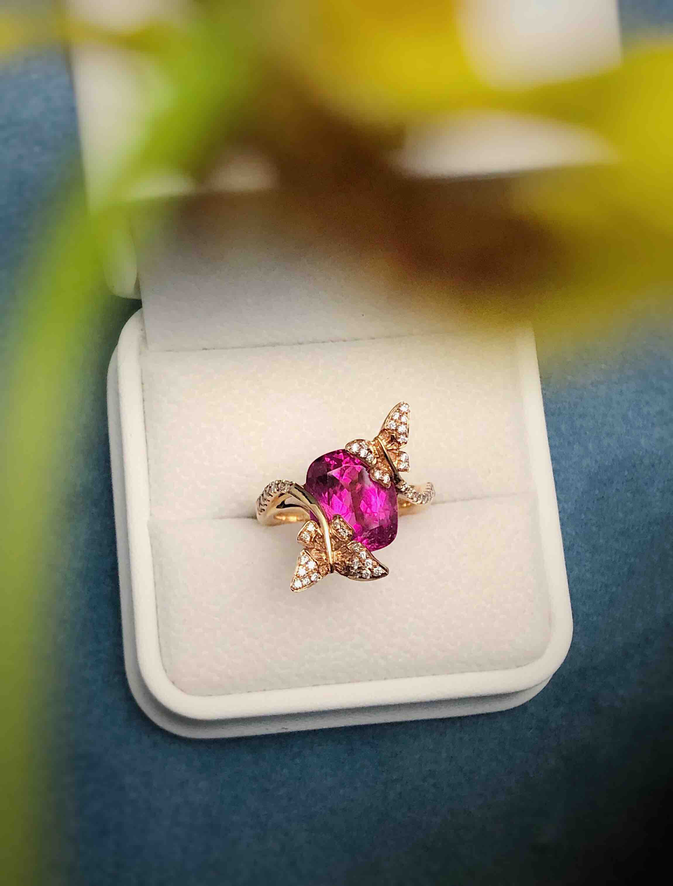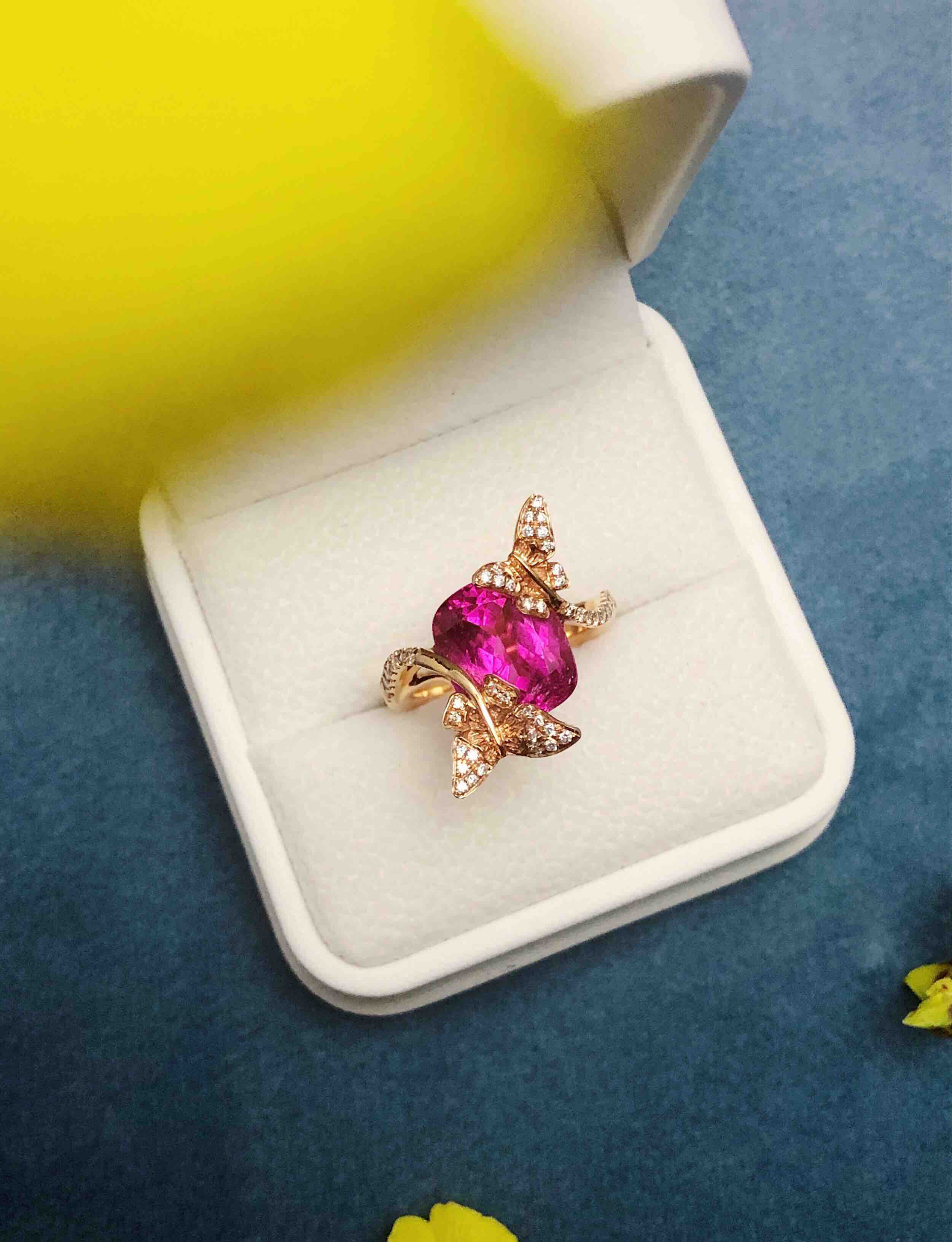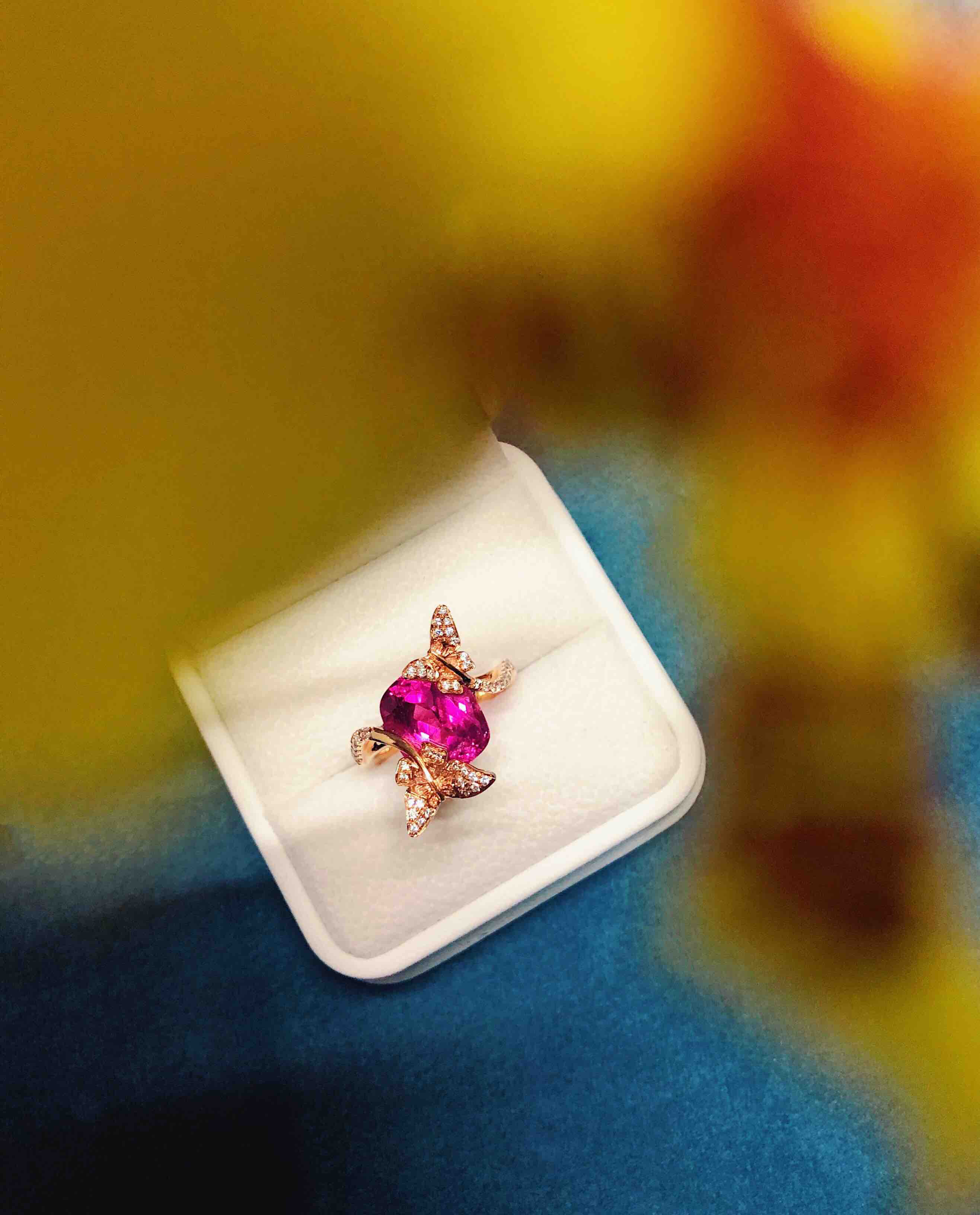 作品名称:18K镶碧玺和钻石戒指