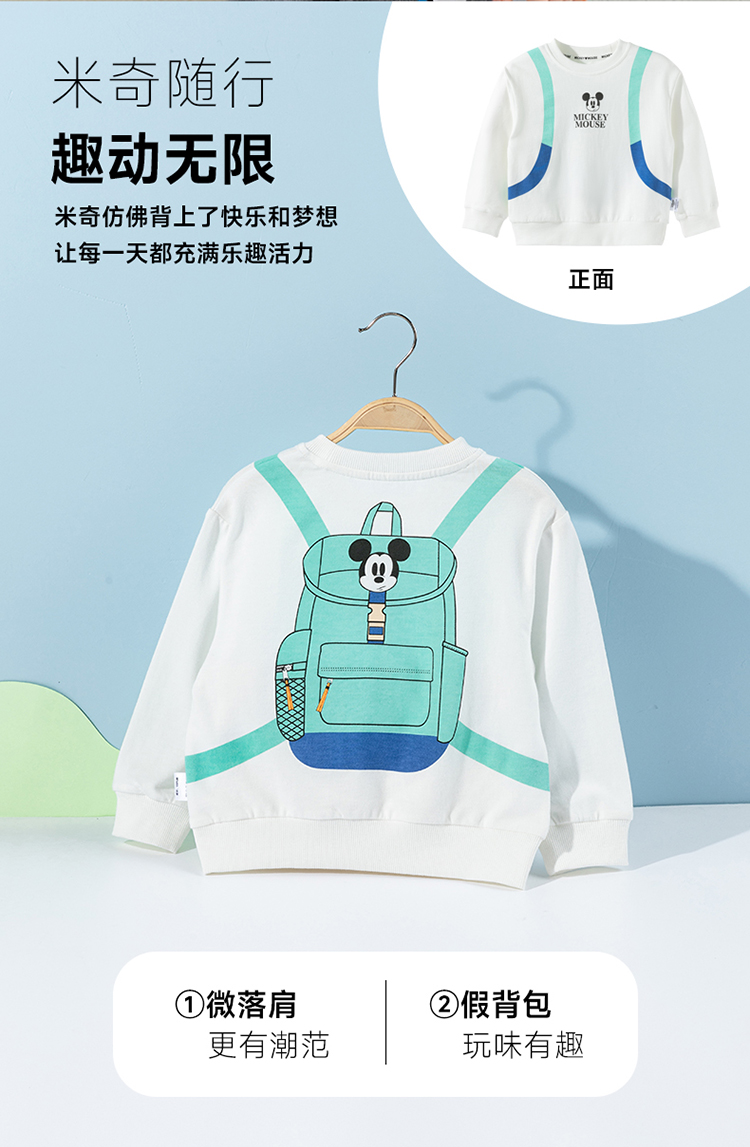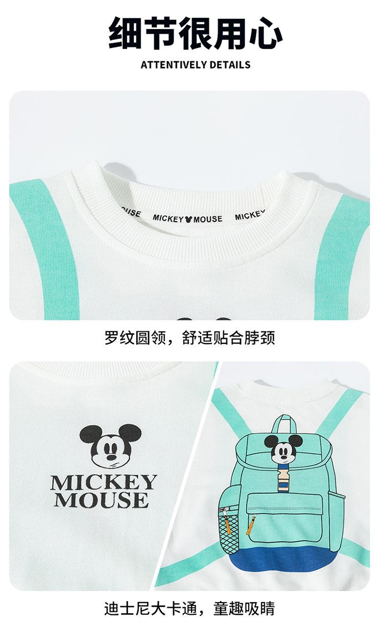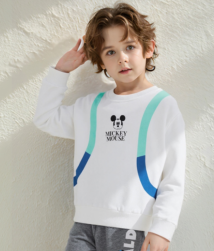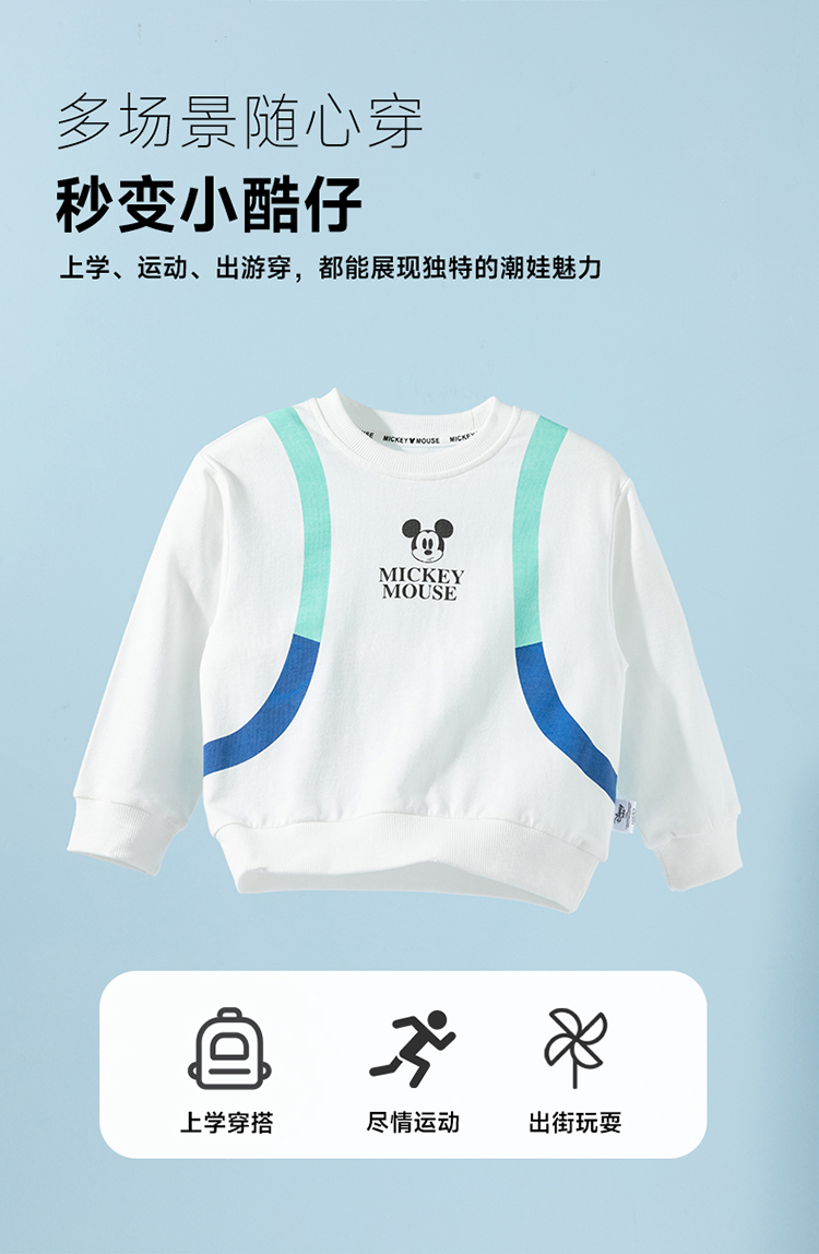 迪士尼25春秋新款男童圆领卫衣纯棉米奇印花运动休闲卫衣时尚百搭上衣ZD1ES036