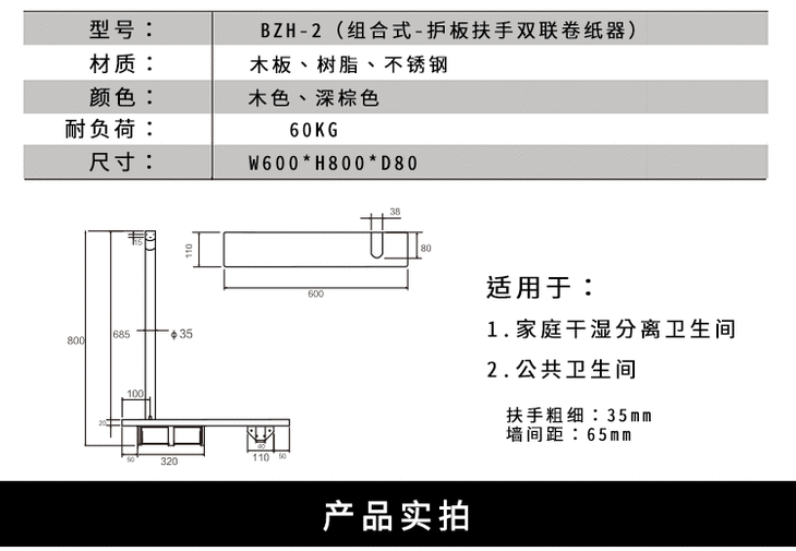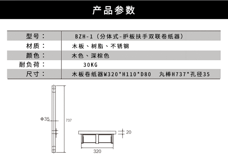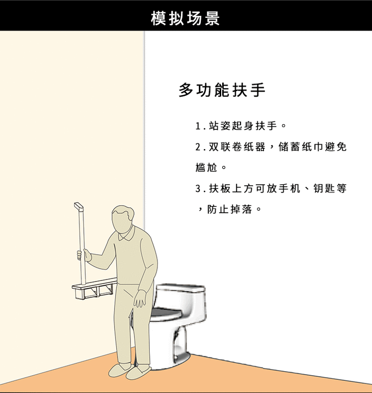 托客乐思TOCLAS 独立I型扶手+双联卷纸器 卫生间护板&扶手&双筒卷纸架