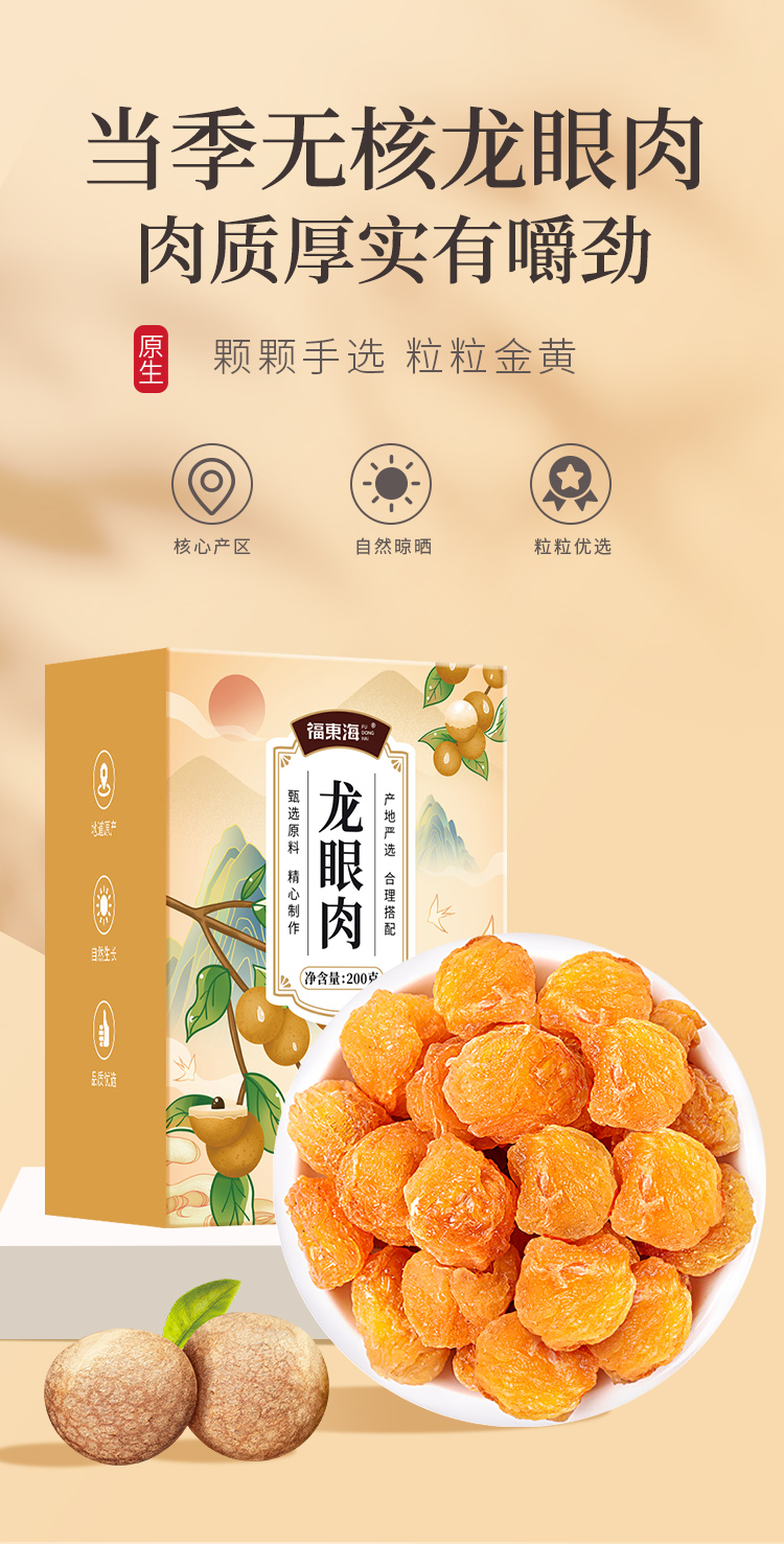 福东海 龙眼肉200克 无核免剥桂圆干可泡茶煮粥煲汤养生茶 独立小袋