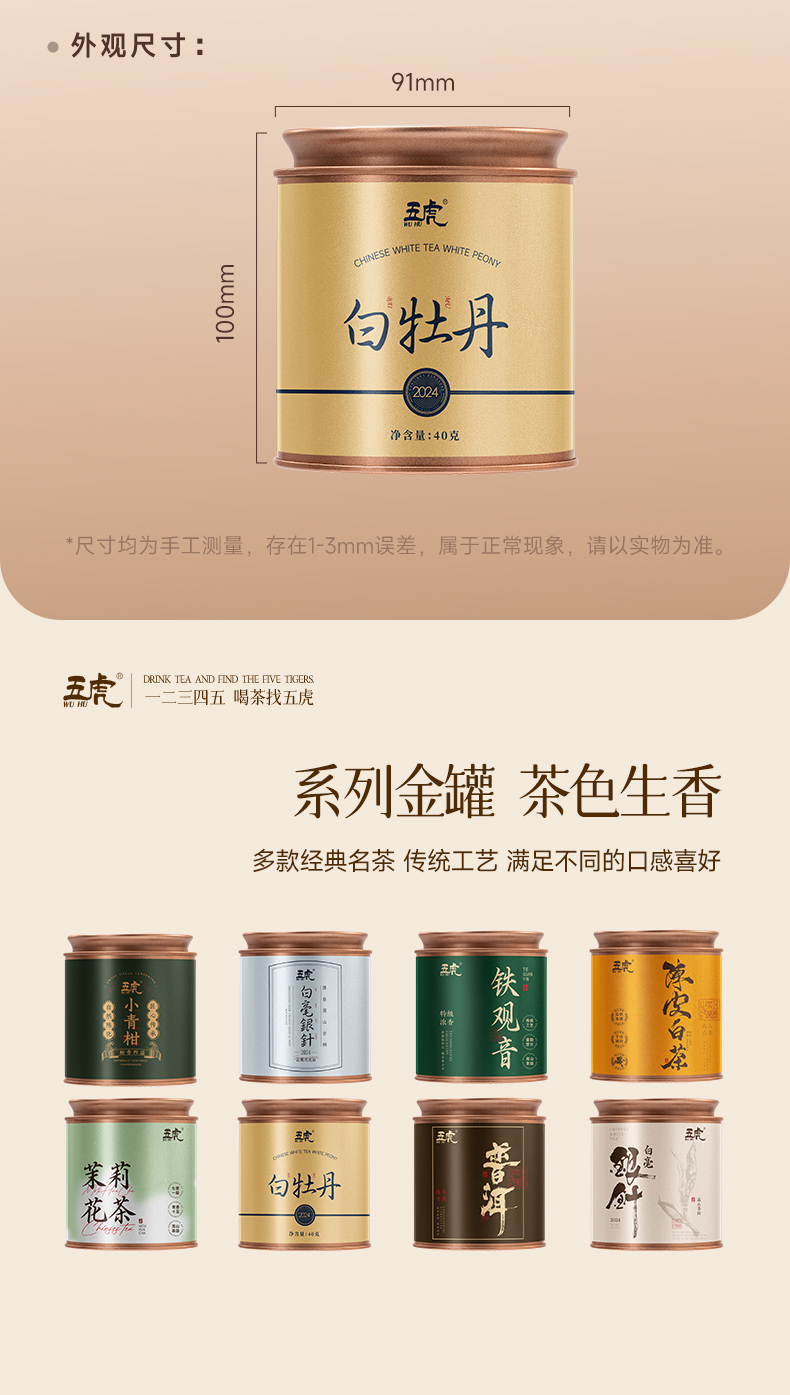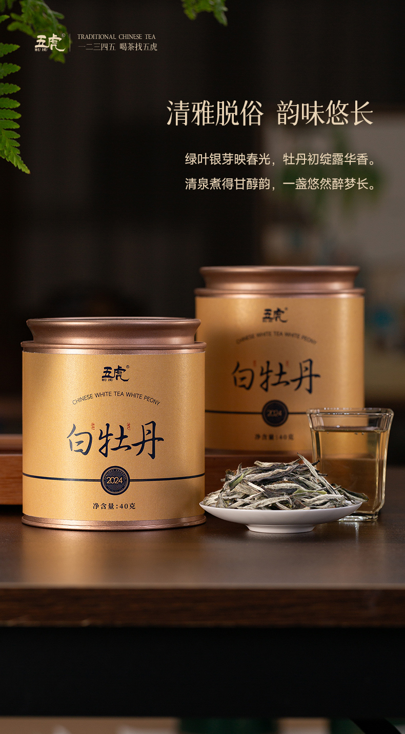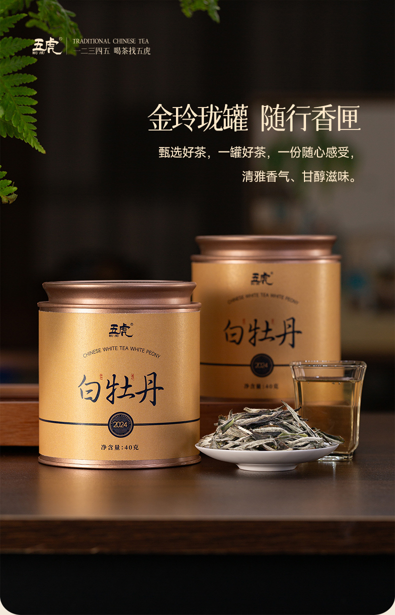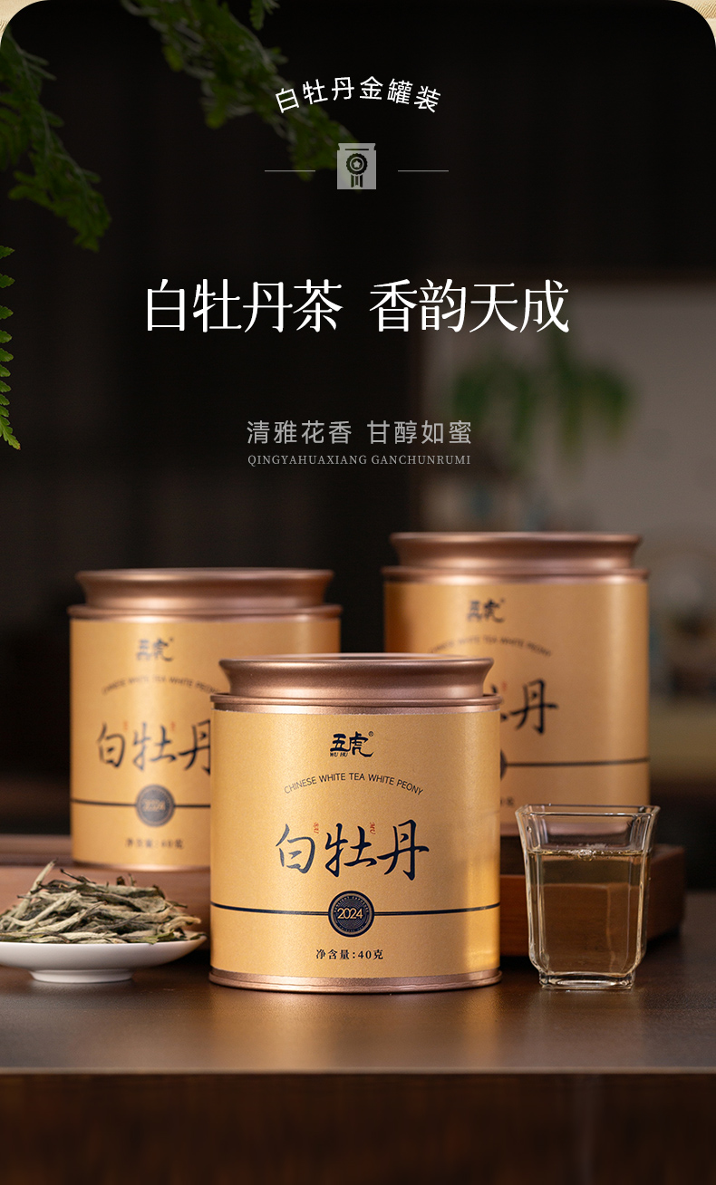 茶叶 福鼎白茶 白牡丹 花香白牡丹 小金罐 茶饮 五虎 40g