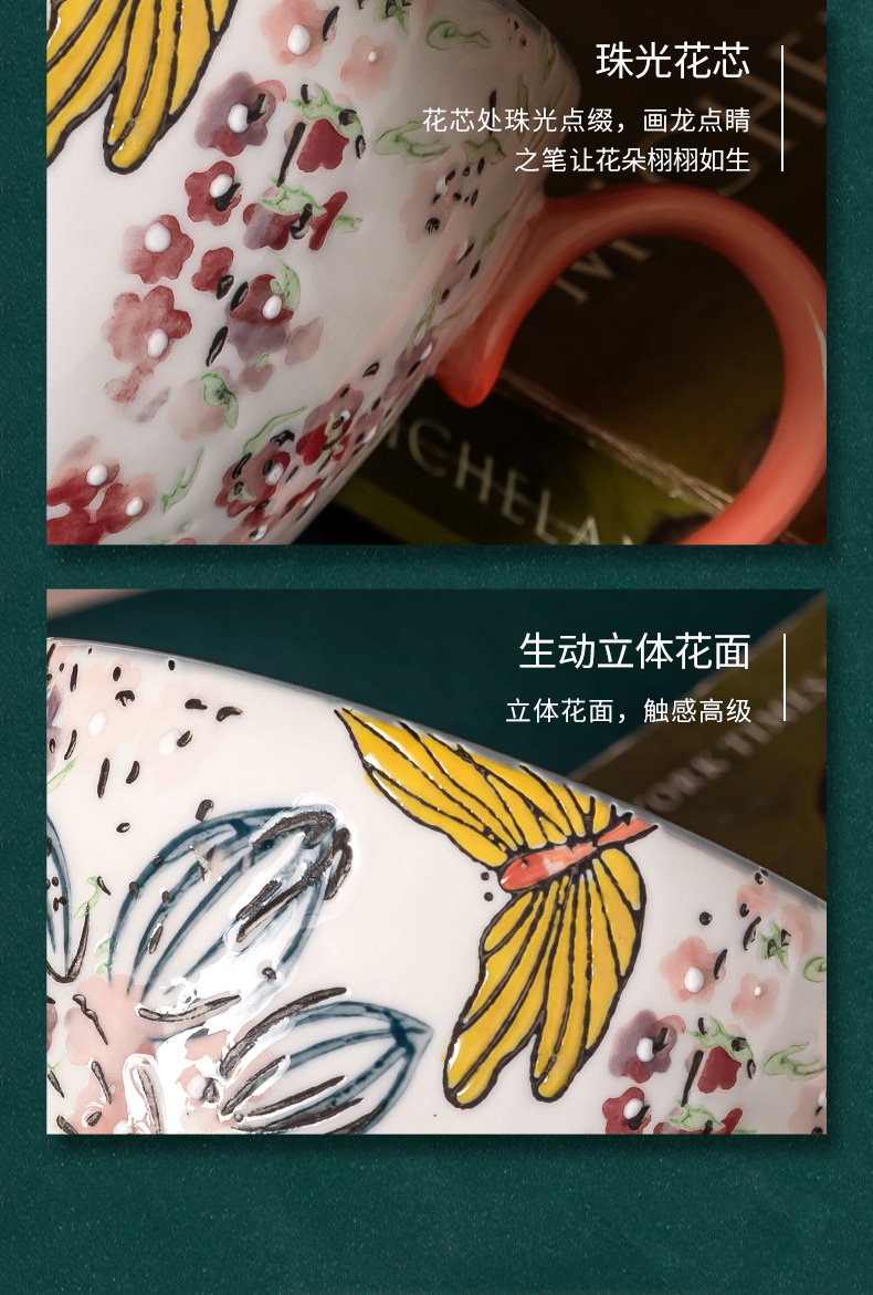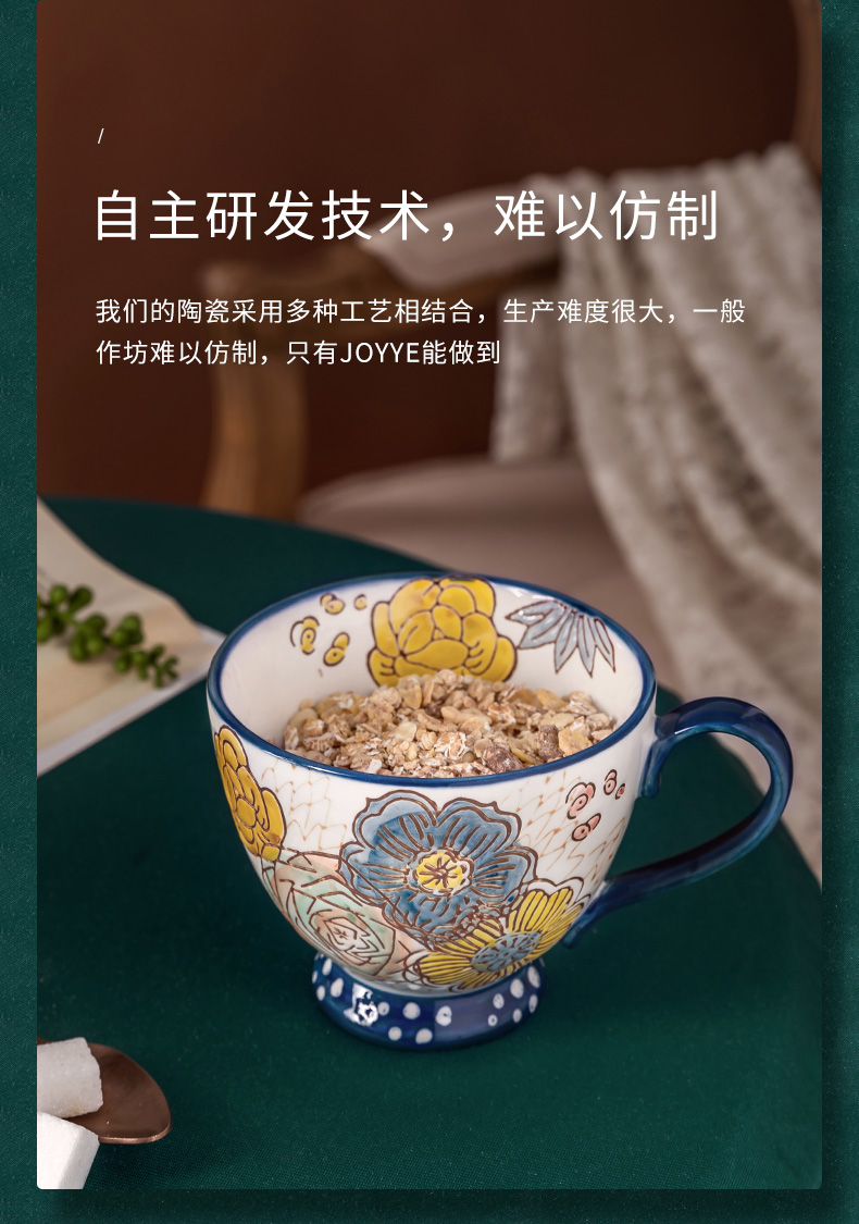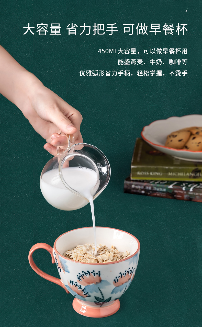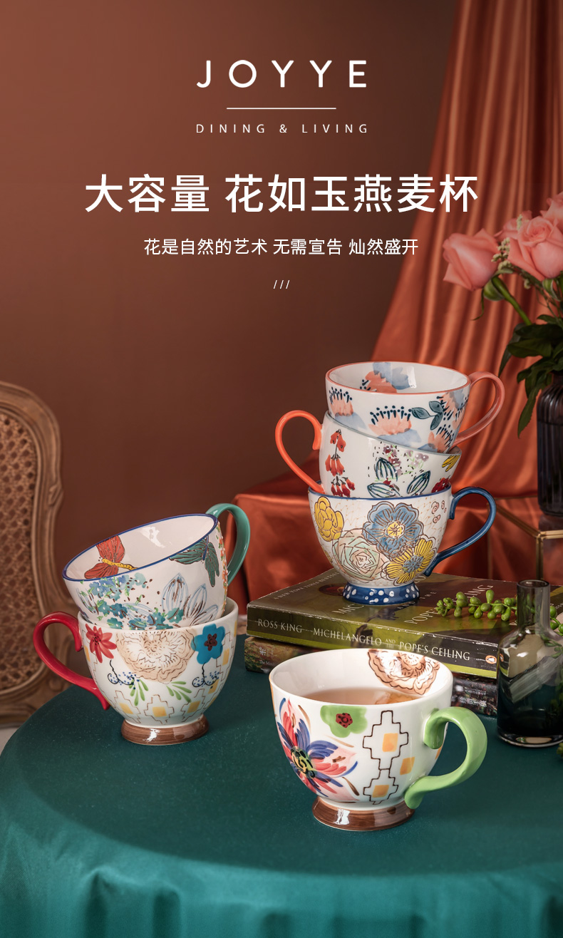 JOYYE彩绘陶瓷杯子女马克杯大容量燕麦杯麦片杯早餐杯咖啡杯450ml