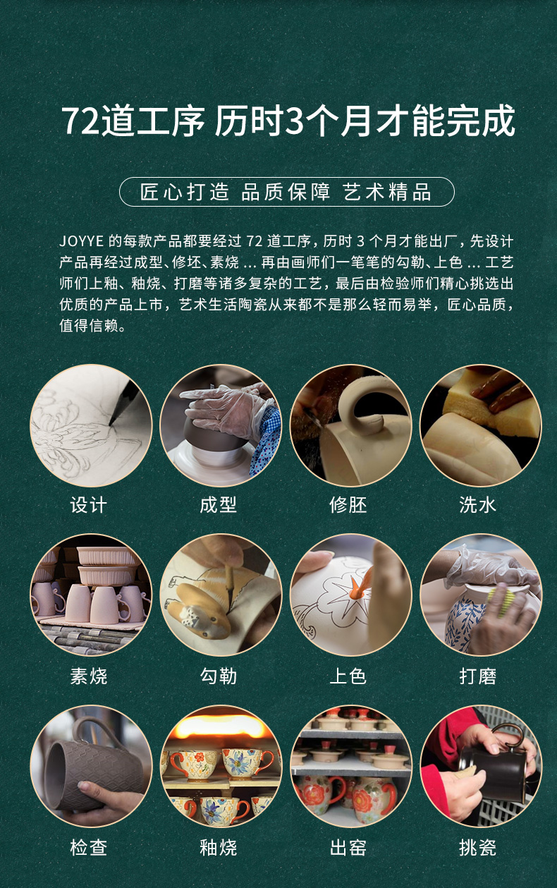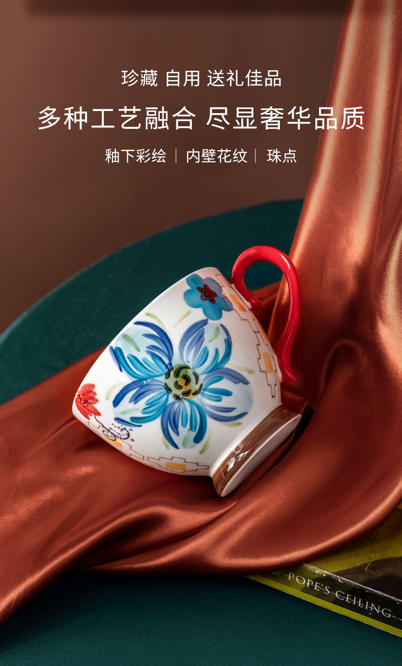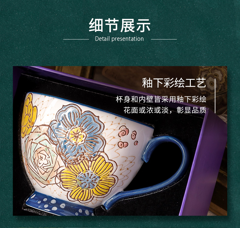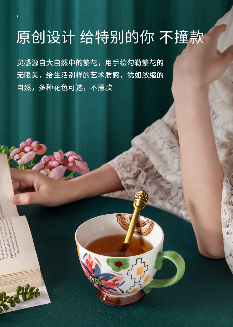 JOYYE彩绘陶瓷杯子女马克杯大容量燕麦杯麦片杯早餐杯咖啡杯450ml