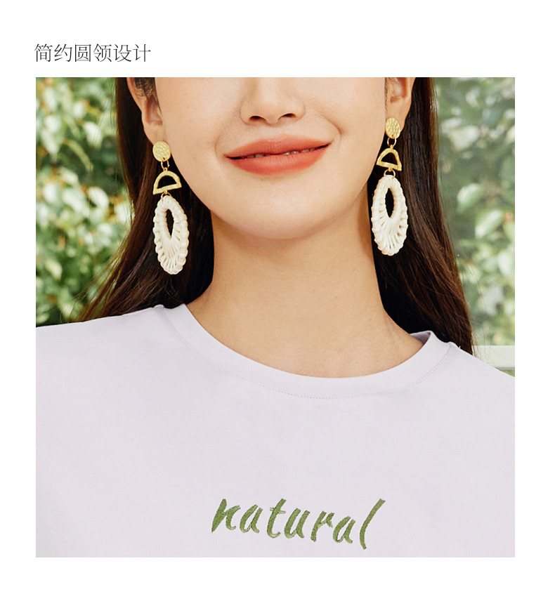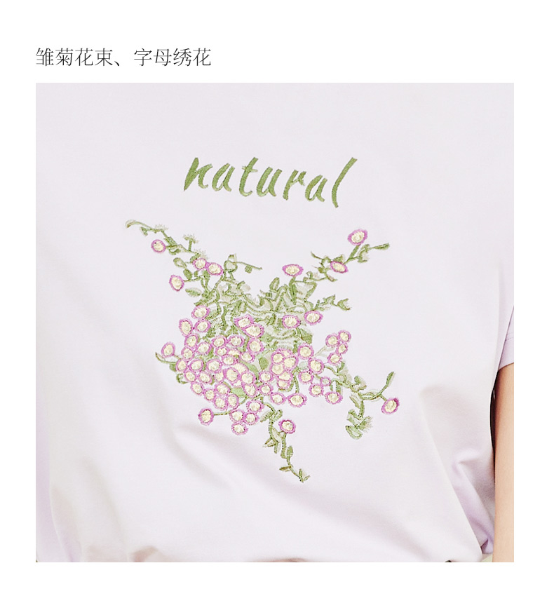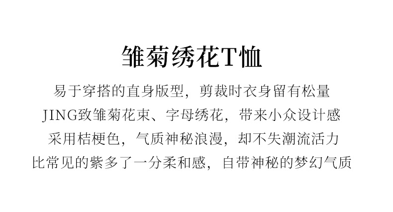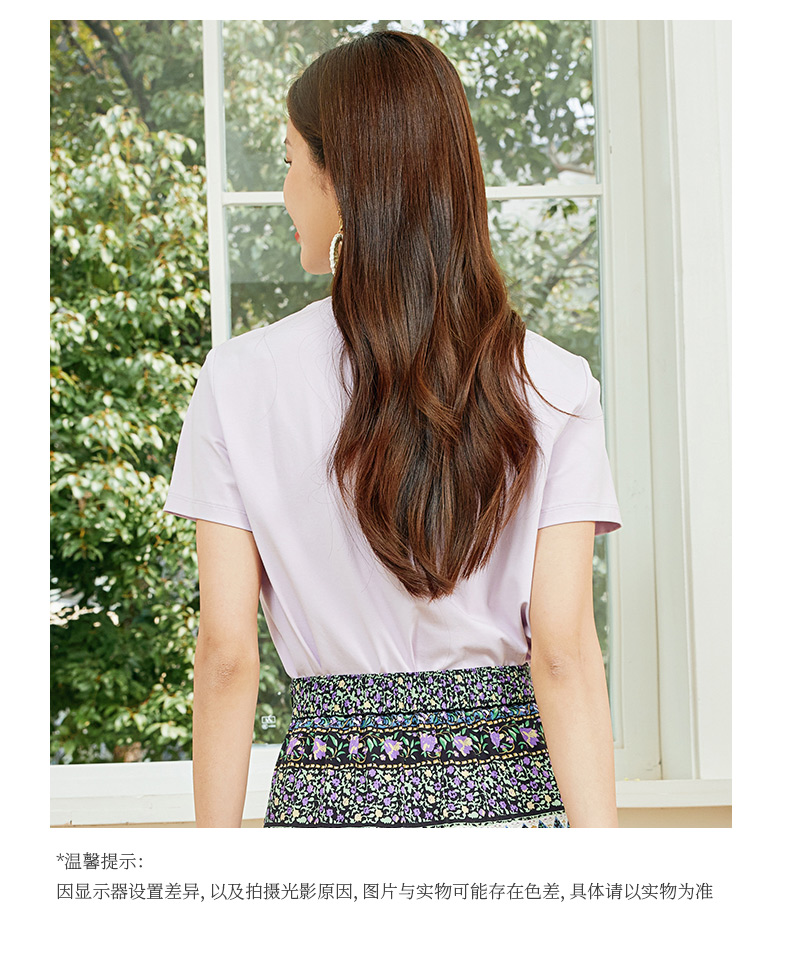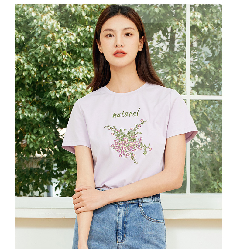 玳莎绣花印花设计感小众T恤女2024夏季新款优雅气质圆领短袖上衣 EB32104