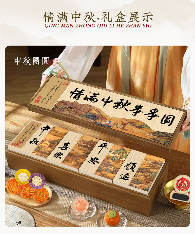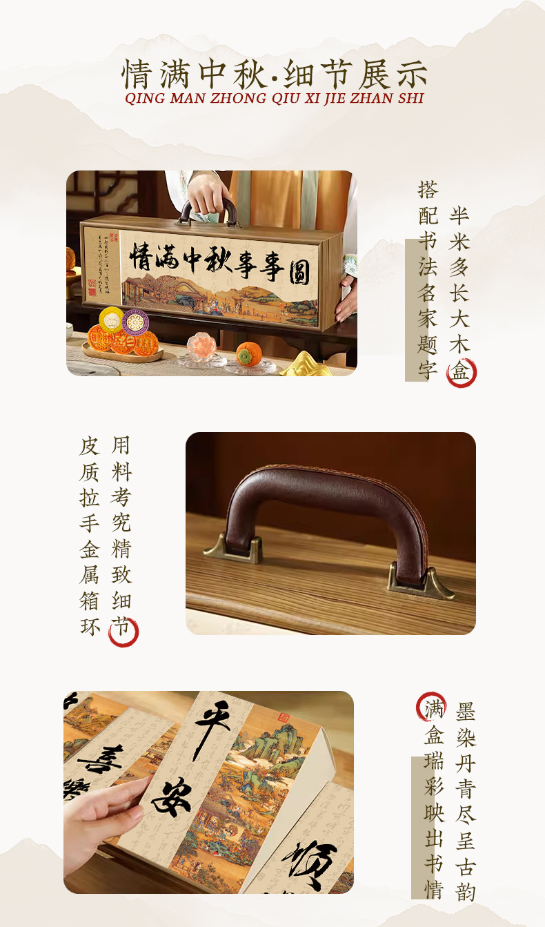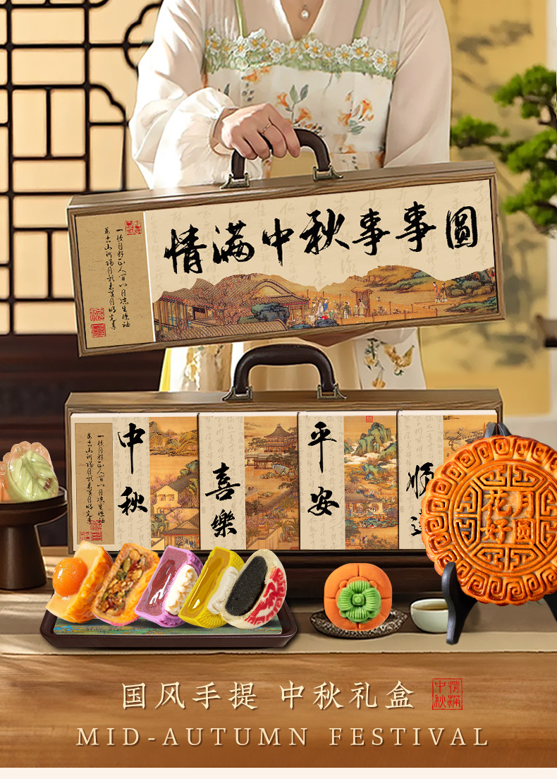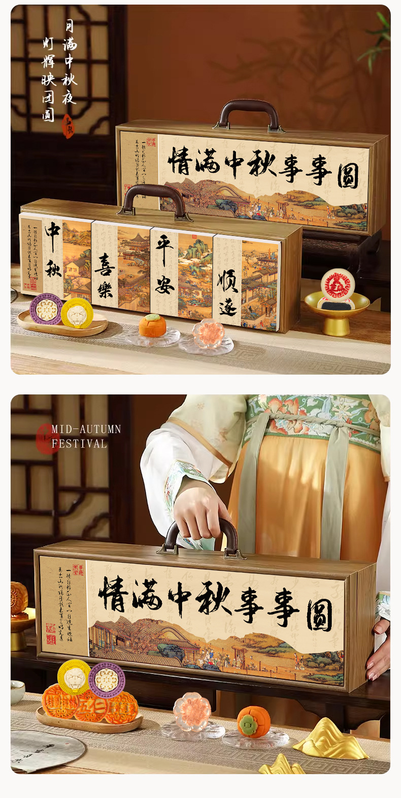 【国风手提 !中秋礼盒】情满中秋,月饼礼盒装木盒广式苏式五仁冰皮流心奶黄蛋黄莲蓉中秋团购。rb