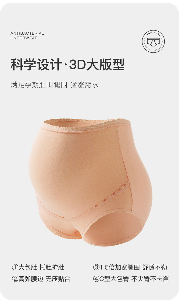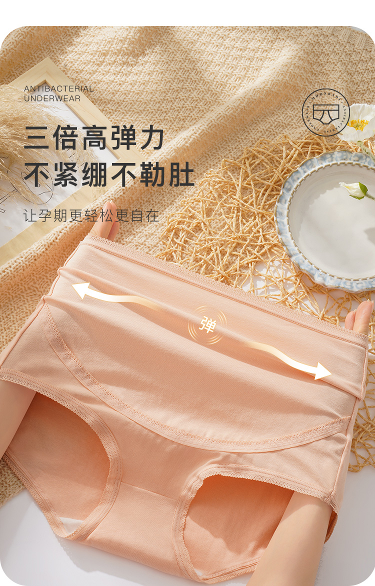 孕妇托腹裤内裤女3A抑菌纯棉裆无痕高弹大码不勒肚舞蝶孕妇内裤3条装