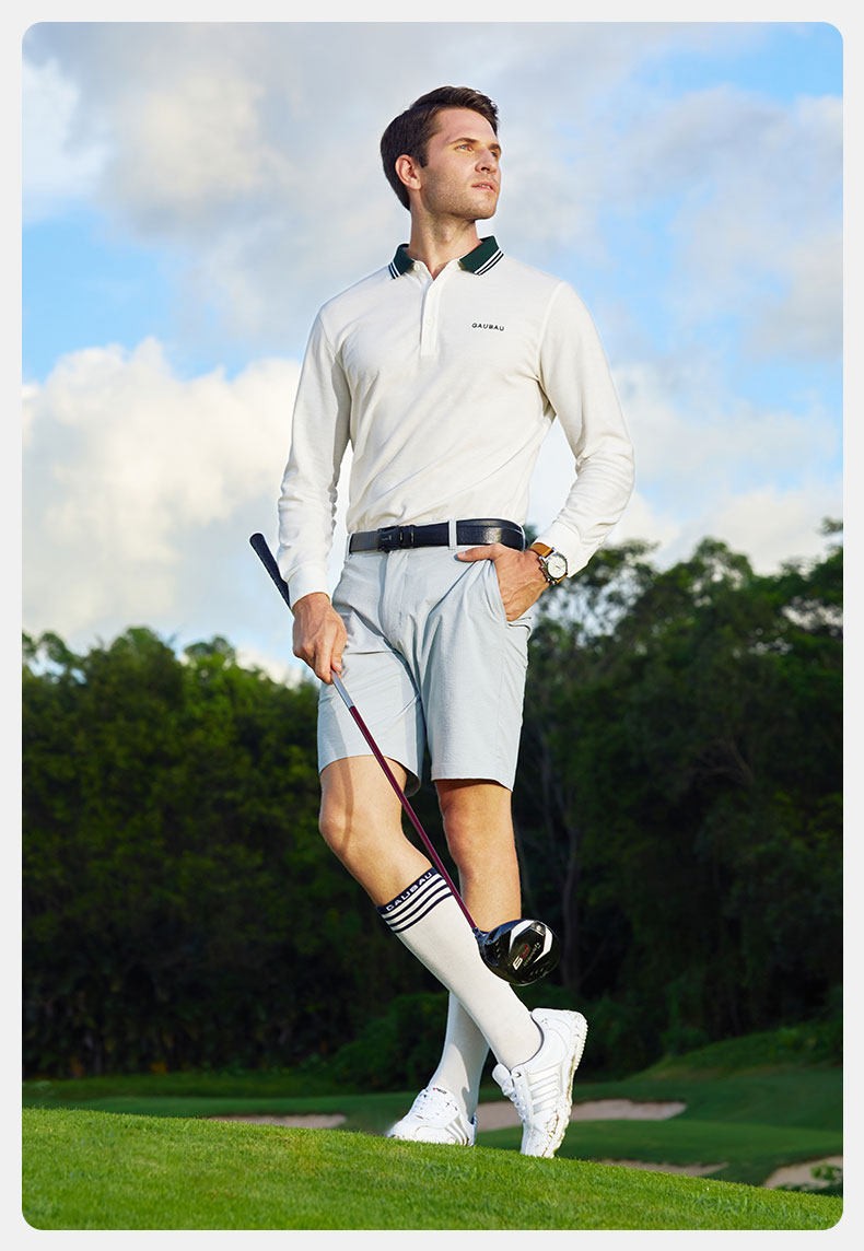 GAUBAU/戈宝红麻运动袜子高尔夫训练防臭吸汗长袜男士长筒袜