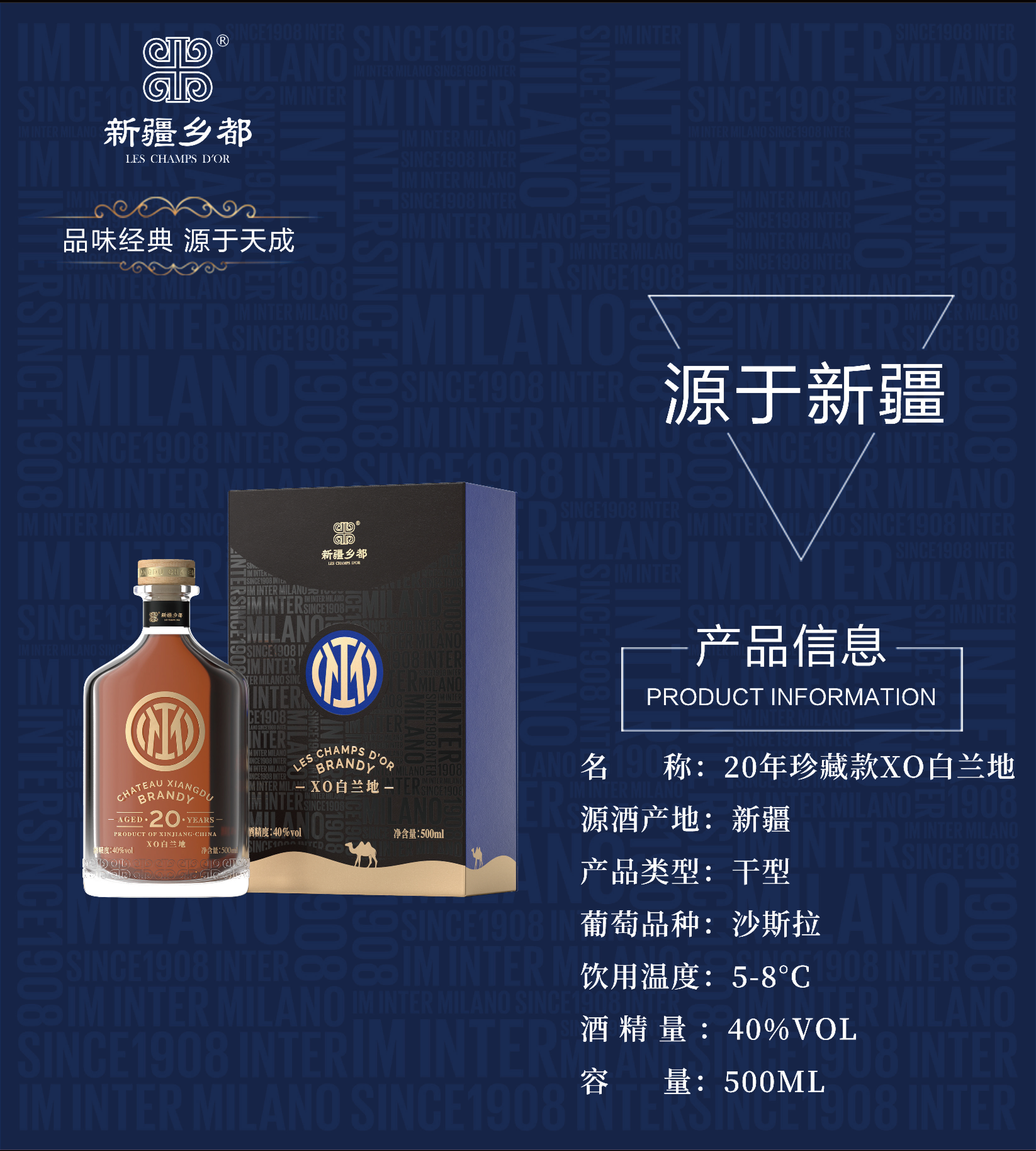 国际米兰乡都20年XO白兰地 精美礼盒装