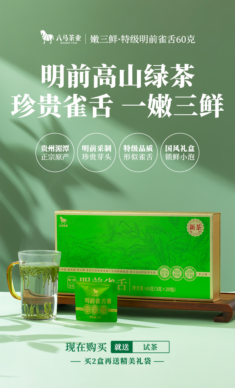 【2026年春茶】八马茶业丨明前特级雀舌绿茶伴手礼茶叶正品官方旗舰店