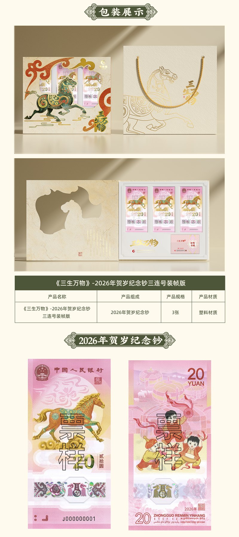 【三生万物】2026年贺岁纪念钞三连号装帧版