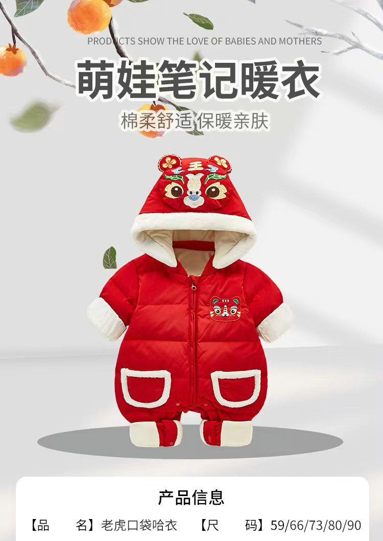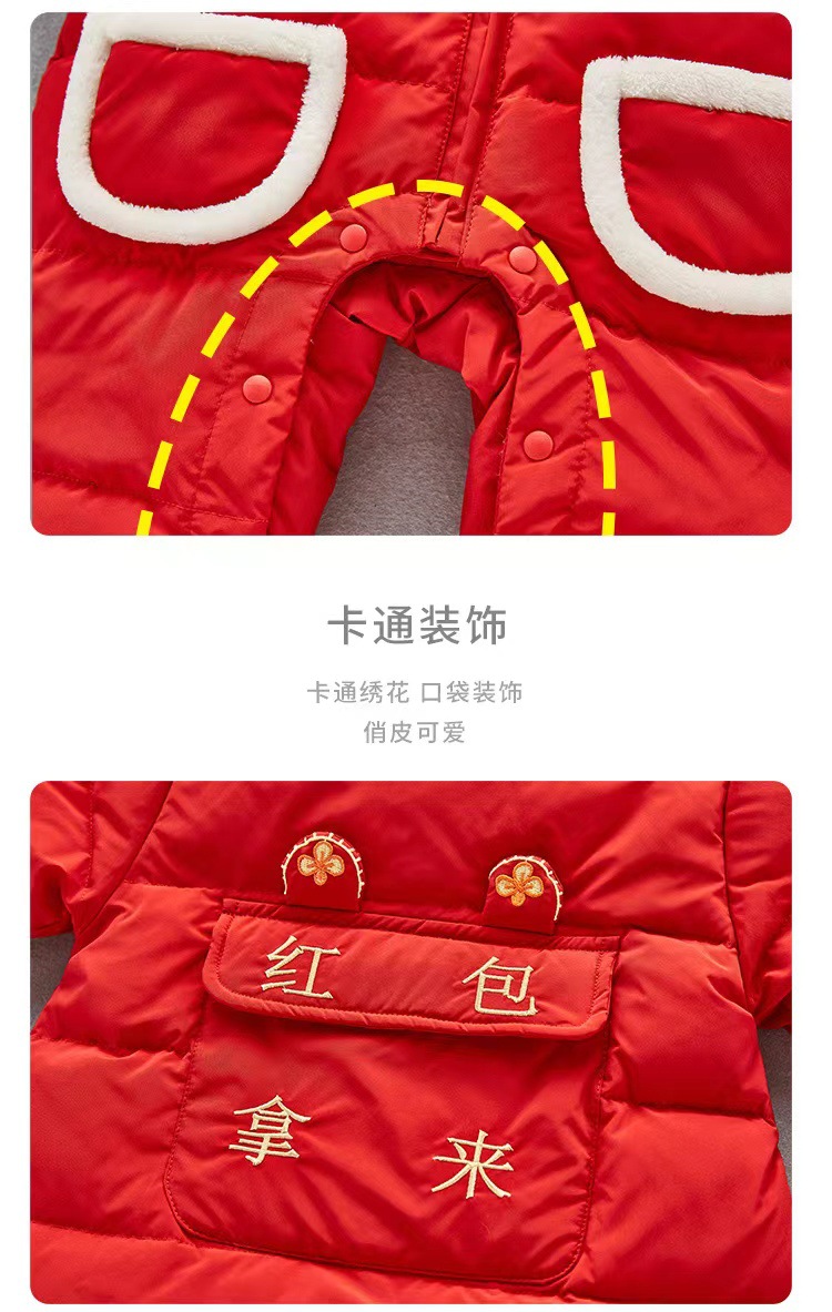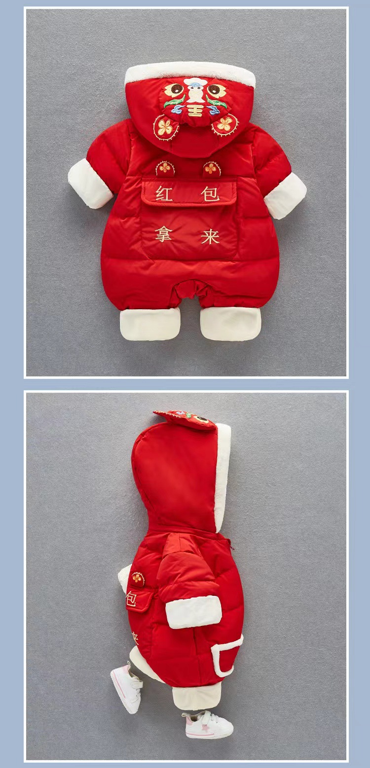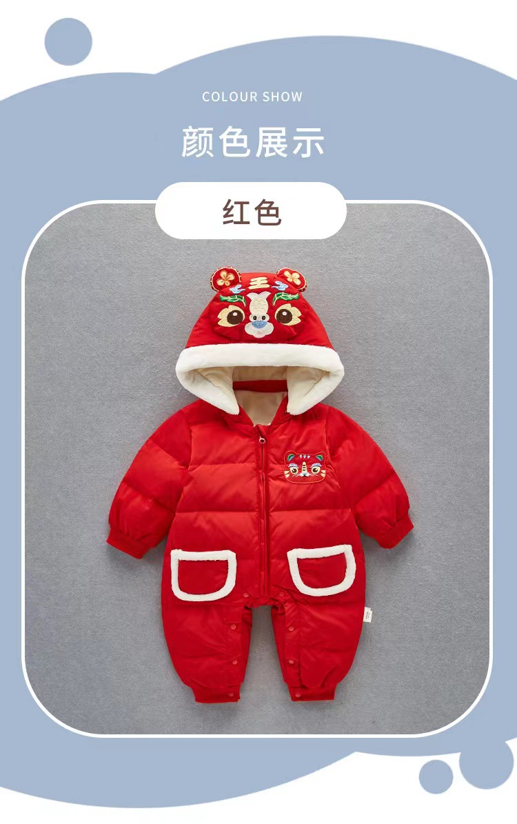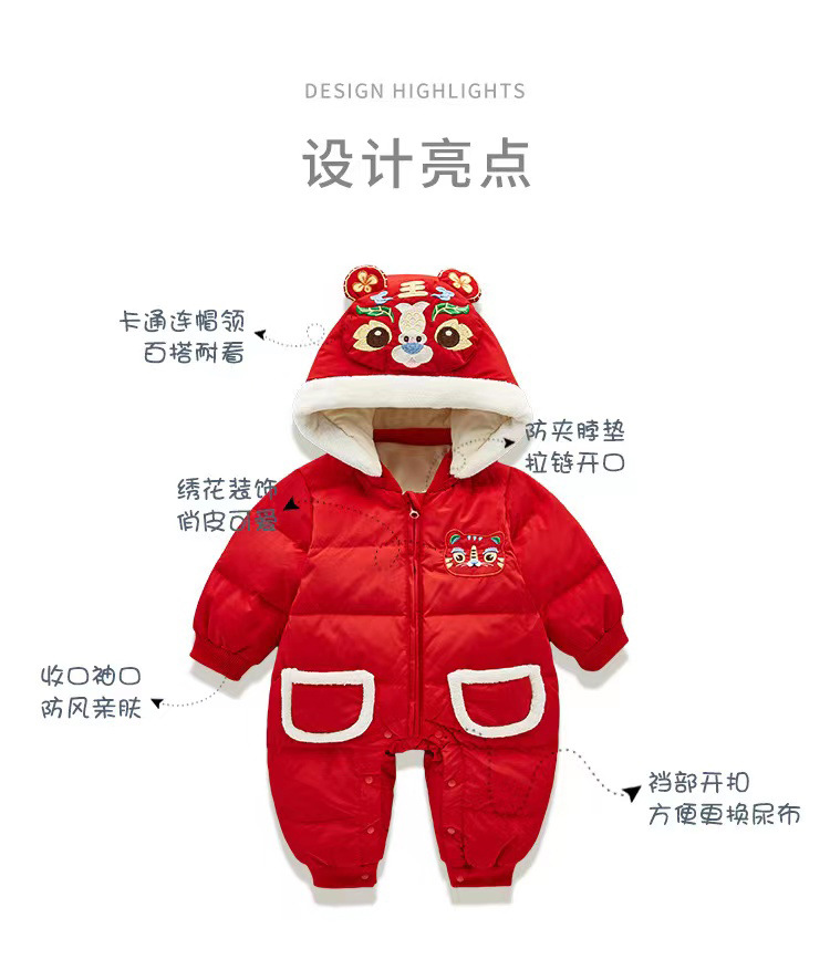 【虎年暖衣 绵柔舒适】婴儿冬季新款过年加绒加厚中国风拜年服新生儿周岁保暖喜庆爬爬服