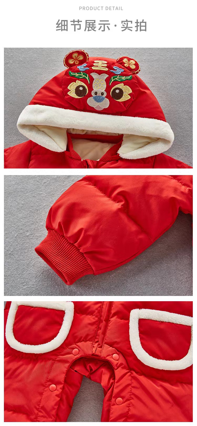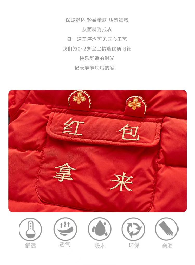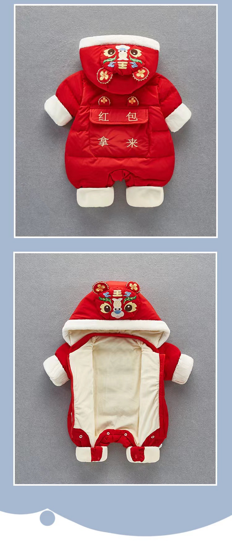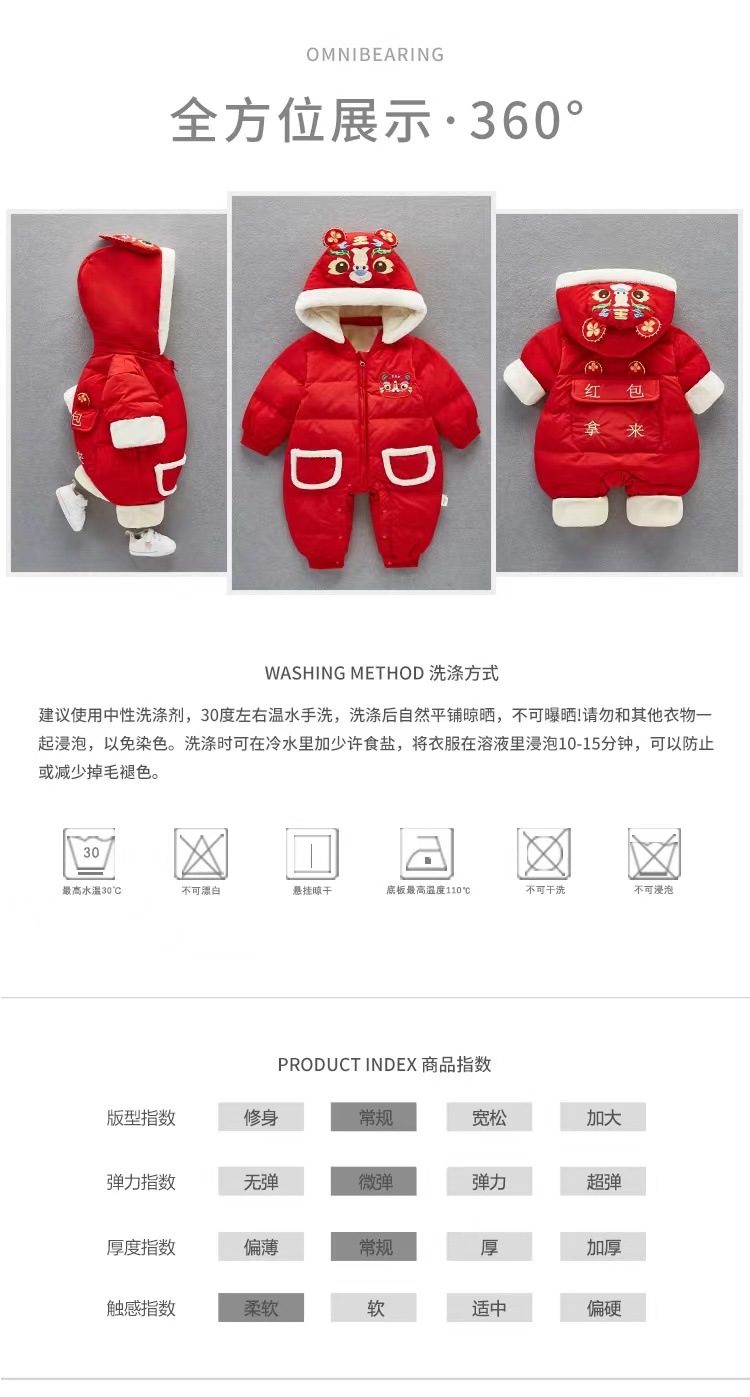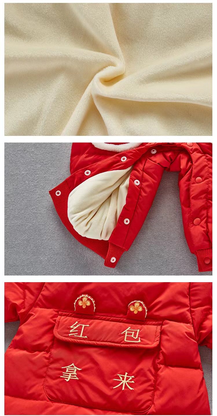【虎年暖衣 绵柔舒适】婴儿冬季新款过年加绒加厚中国风拜年服新生儿周岁保暖喜庆爬爬服