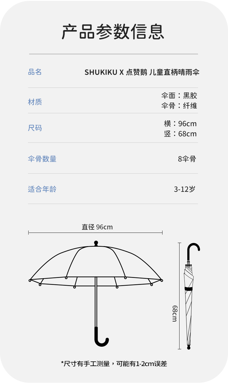 shukiku舒可酷x点赞鹅ip联名儿童晴雨伞