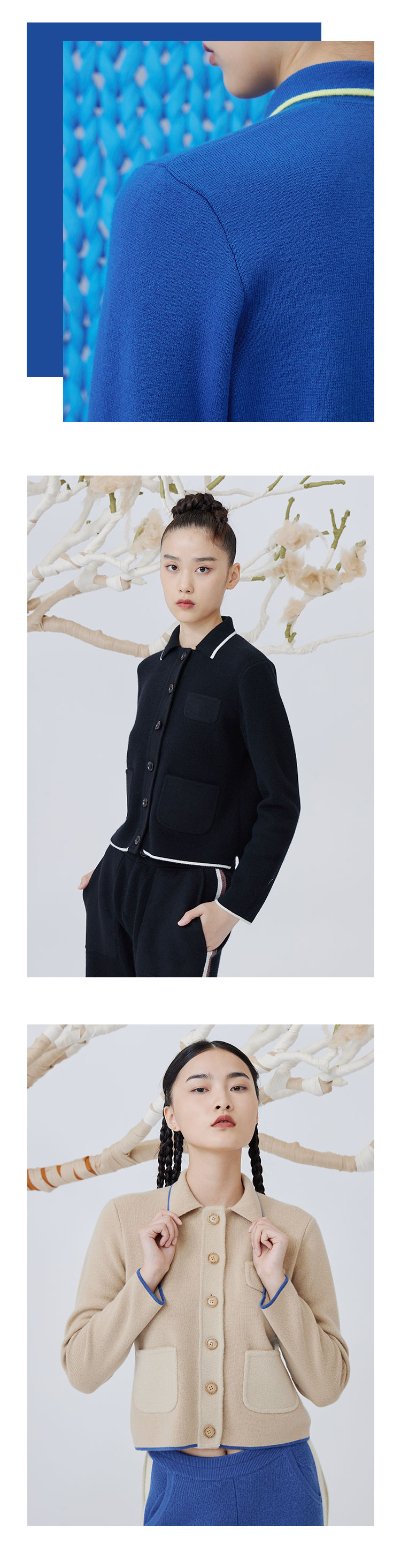 疗愈羊绒| 针梭相拼翻领羊绒女开衫 SJF93W166N
