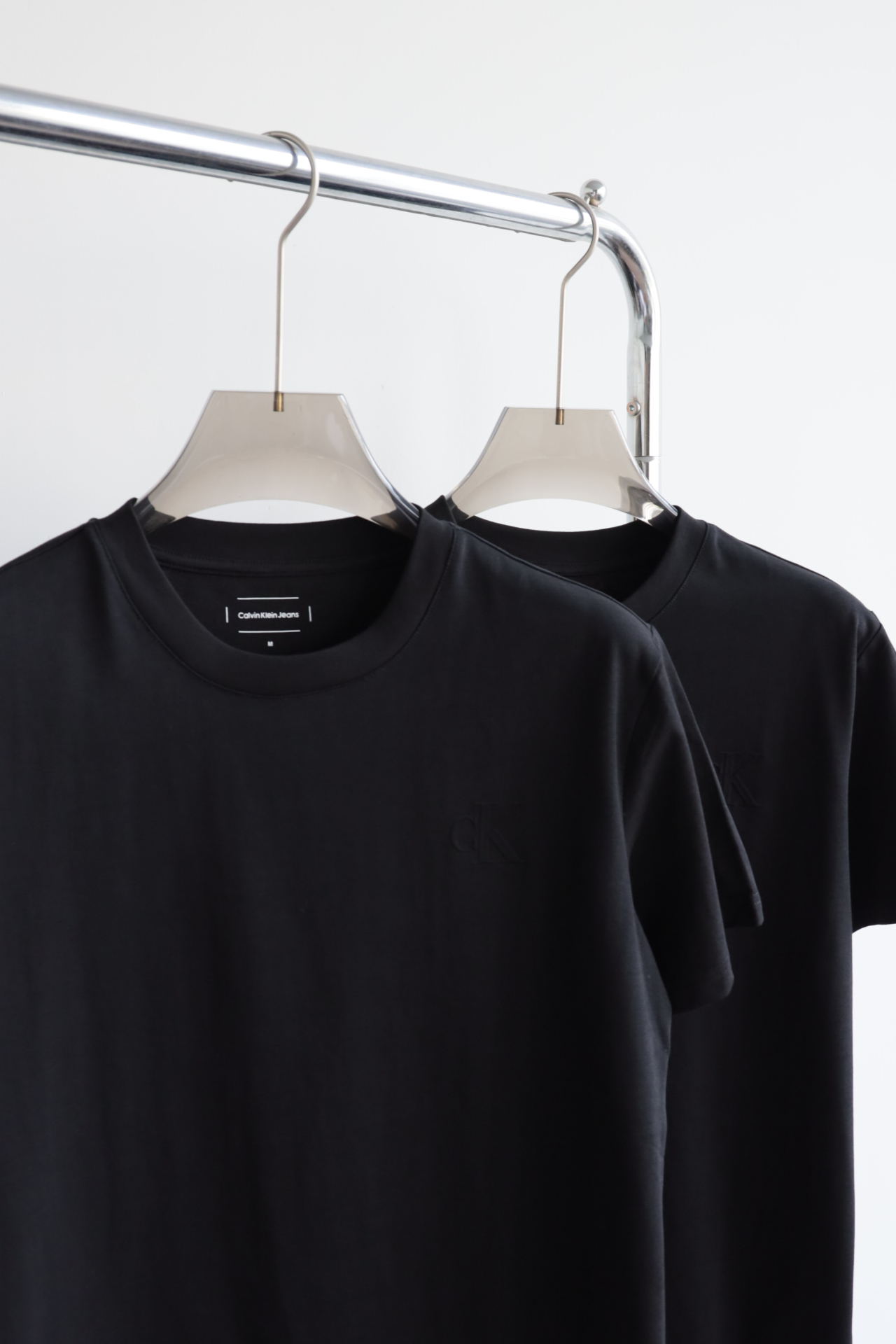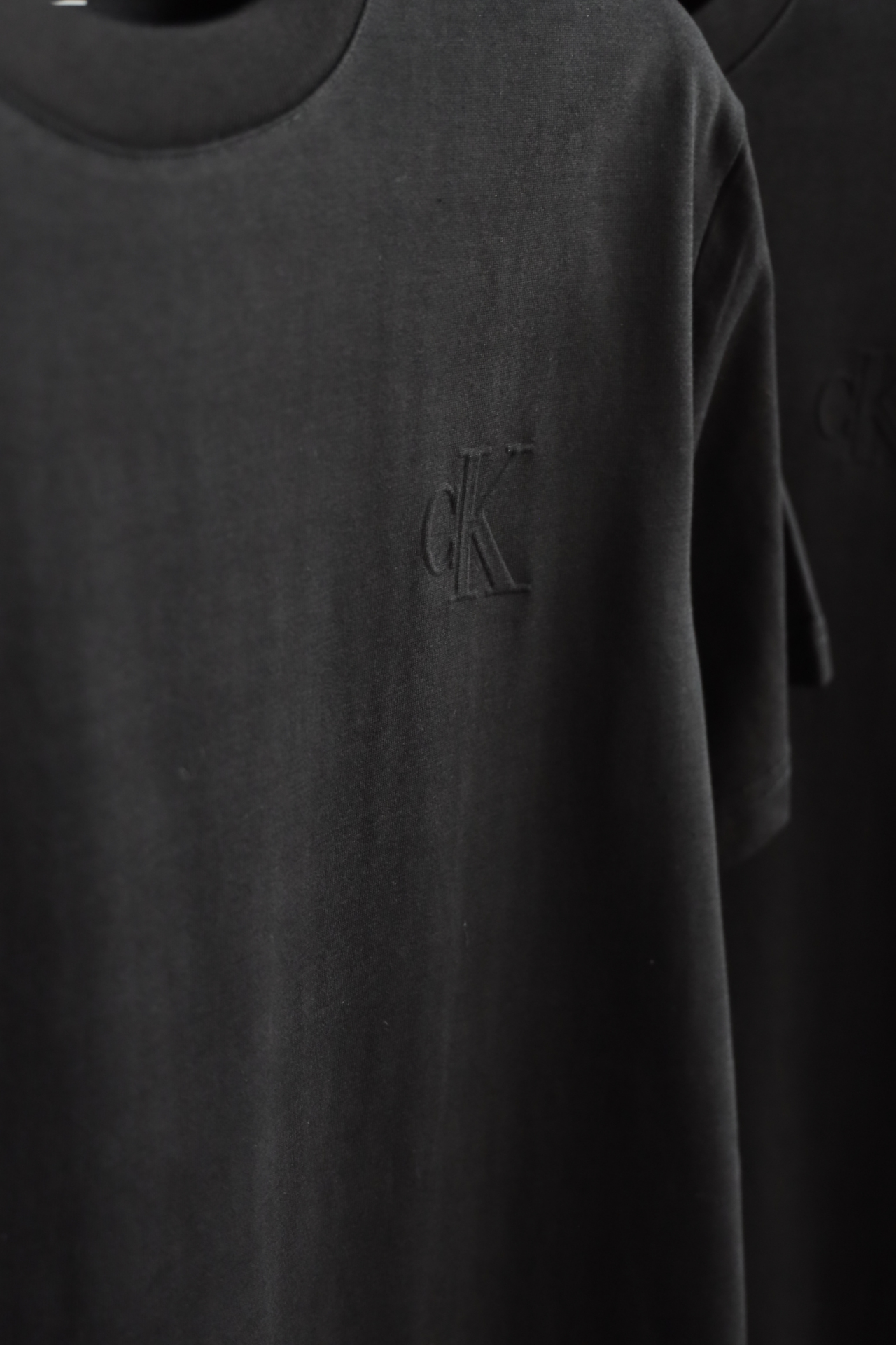 25新款同步西K简约纯色浮雕字母短袖圆领T恤