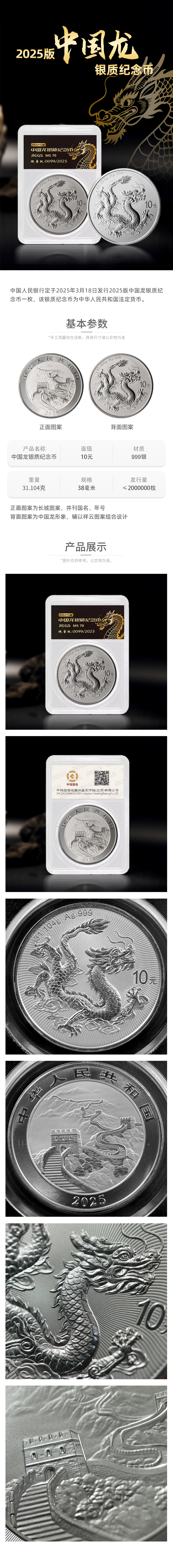 【中国龙】2025中国龙黑金限量银质纪念币评级币