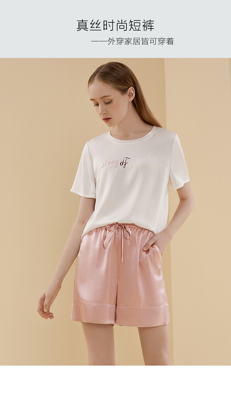 金三塔新品可外穿真丝睡裤女 桑蚕丝休闲薄款波点家居短裤 YSFBB901